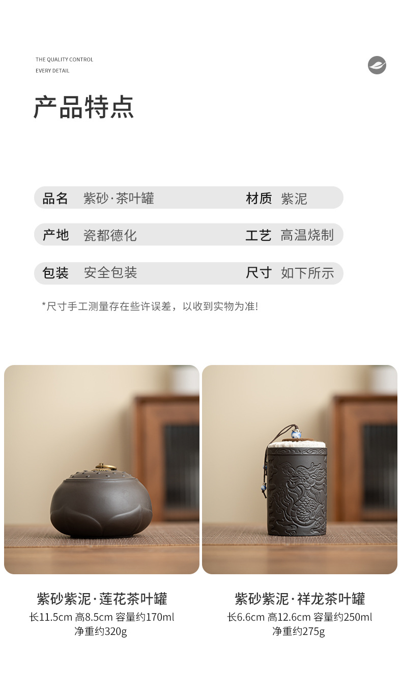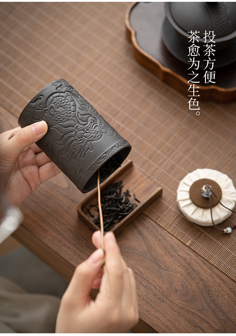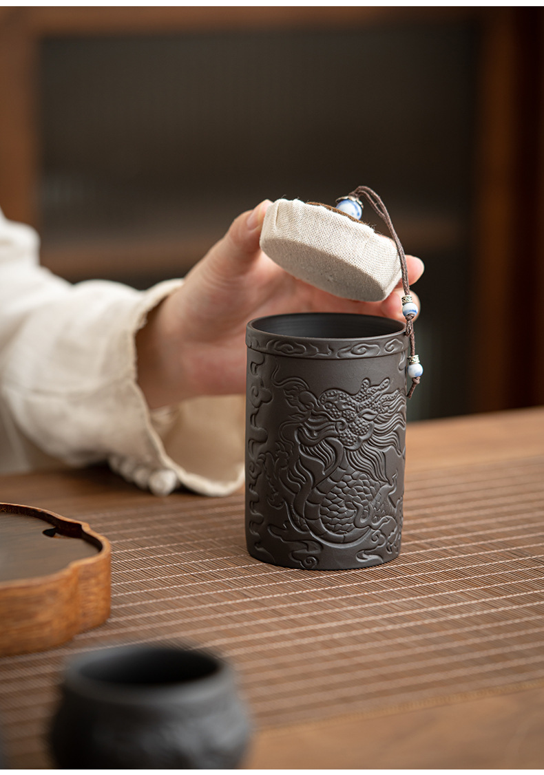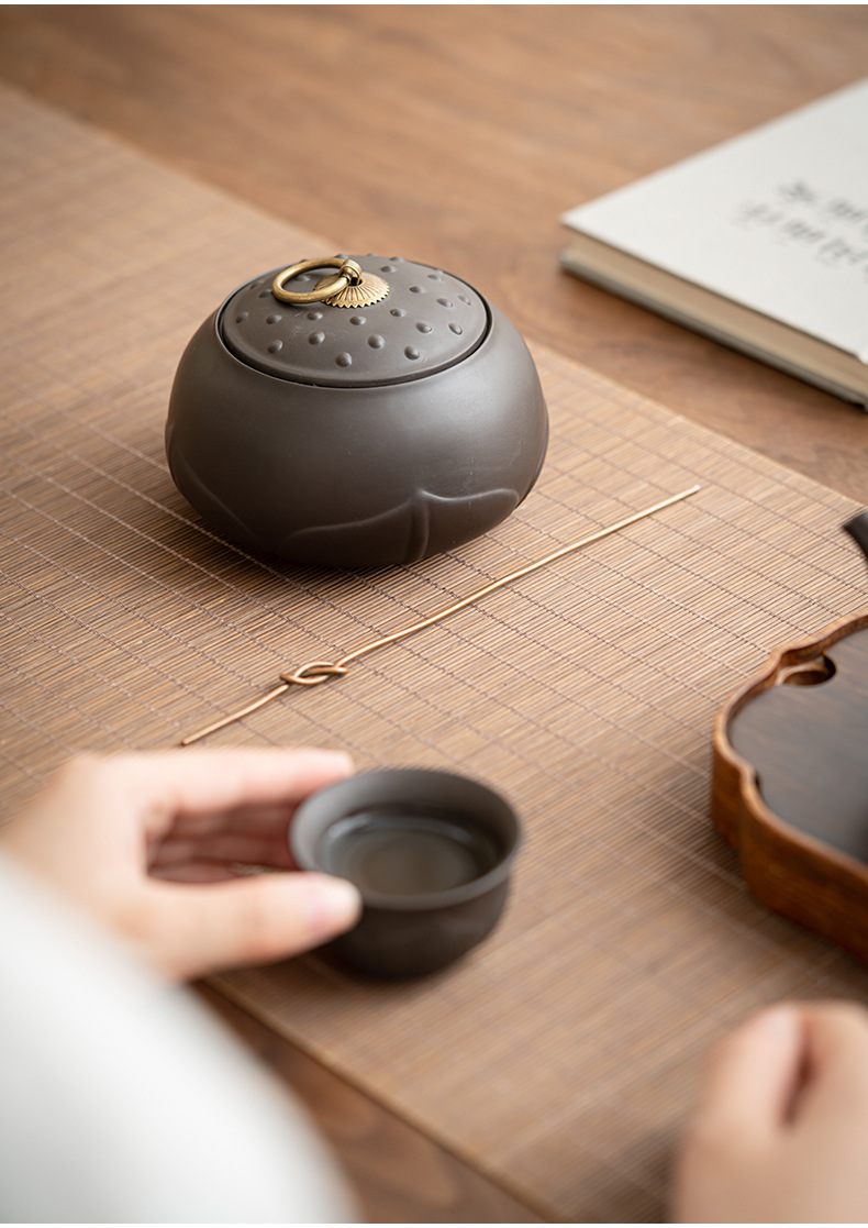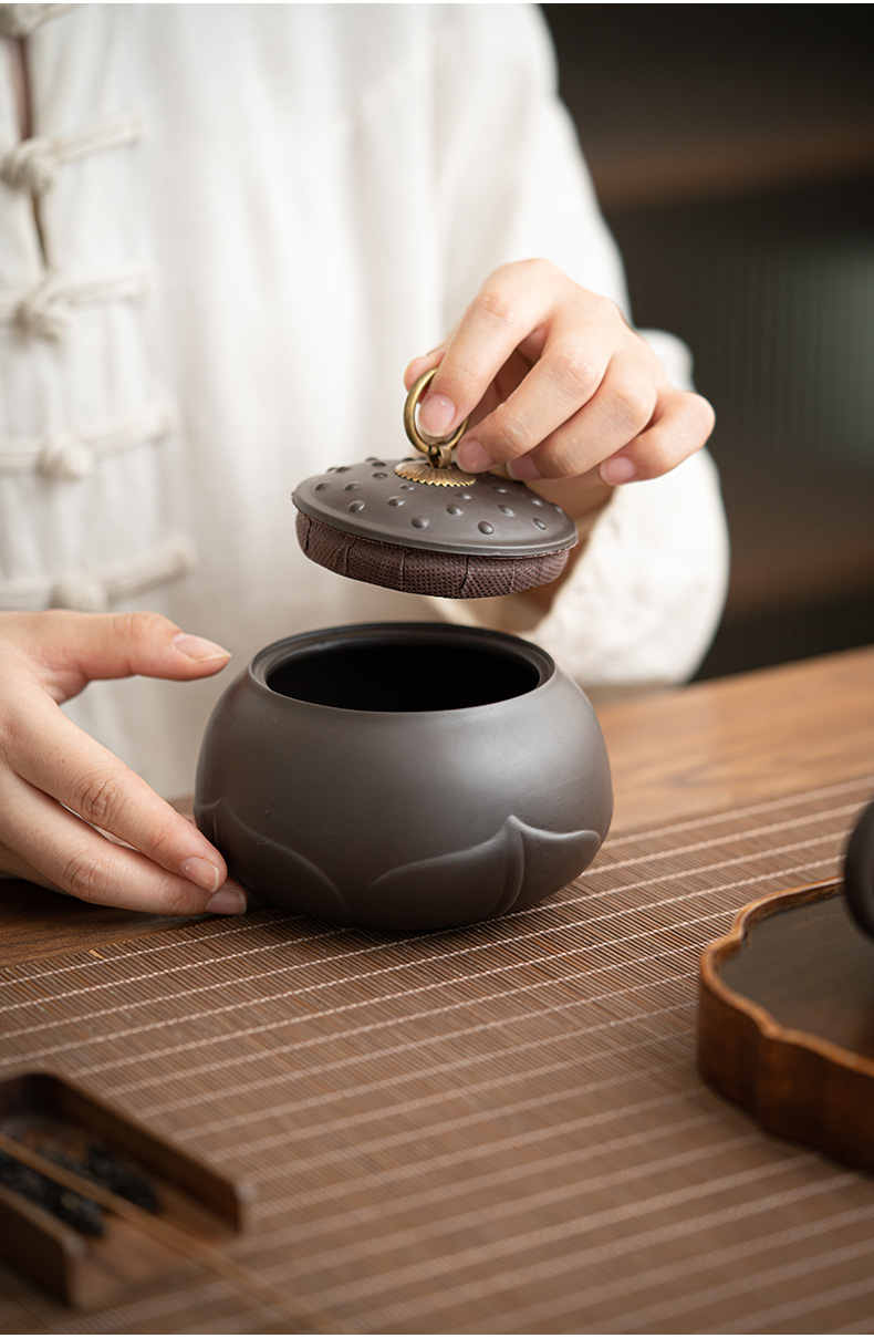 Chenxiang 보라색 점토 차 캔 밀봉 캔 각성 차 도자기 Pu'er 화이트 티 로터스 저장 차 캔 가정용 습기 방지