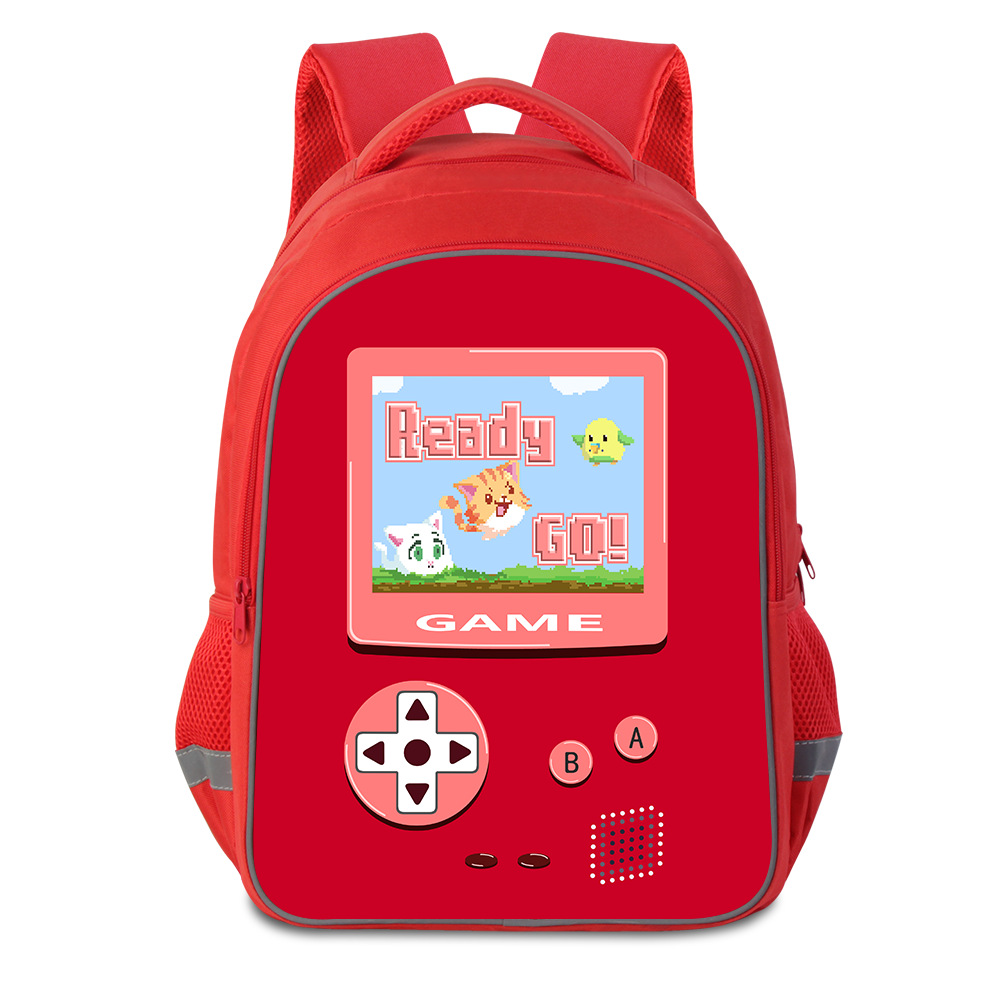 游戏机书包红色双层书包 17寸小学初中生双肩背包减负护脊反光包