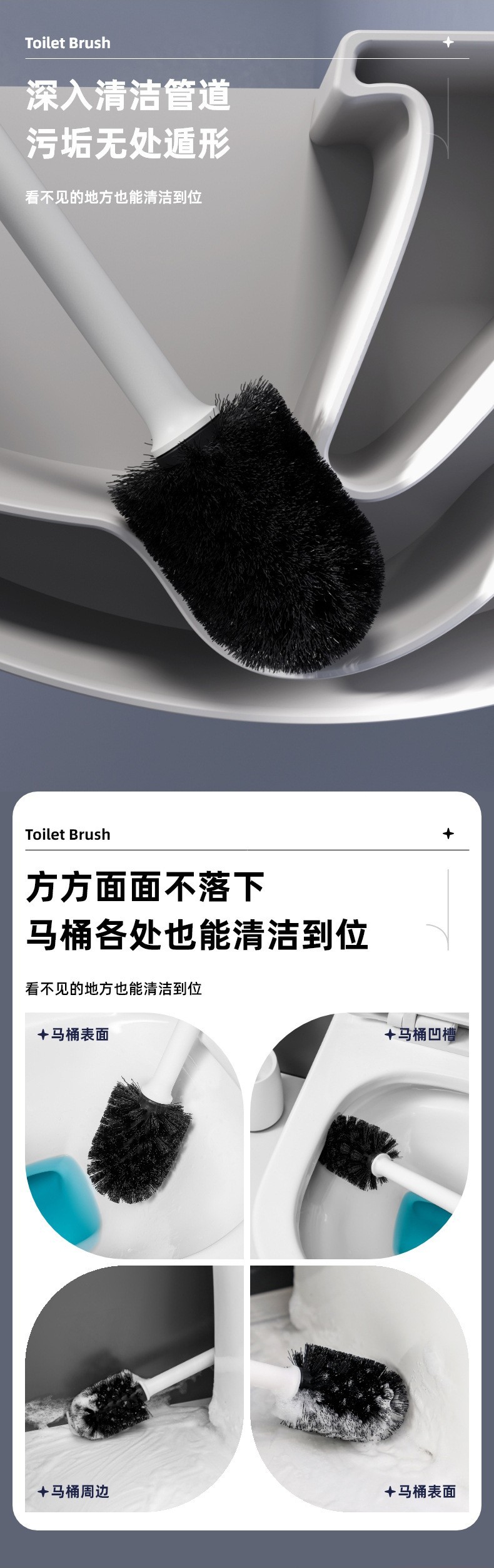 신형 모발이 달린 변기솔 가정용 받침대 포함 화장실 청소솔 세트 긴 손잡이 플라스틱 브러시스토어 가기