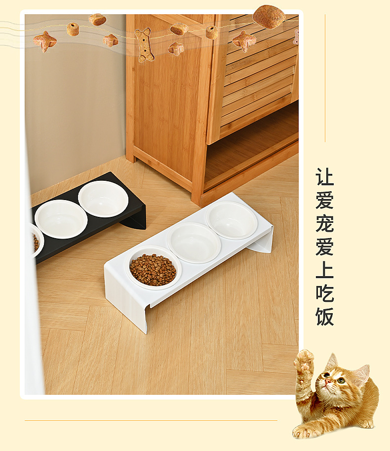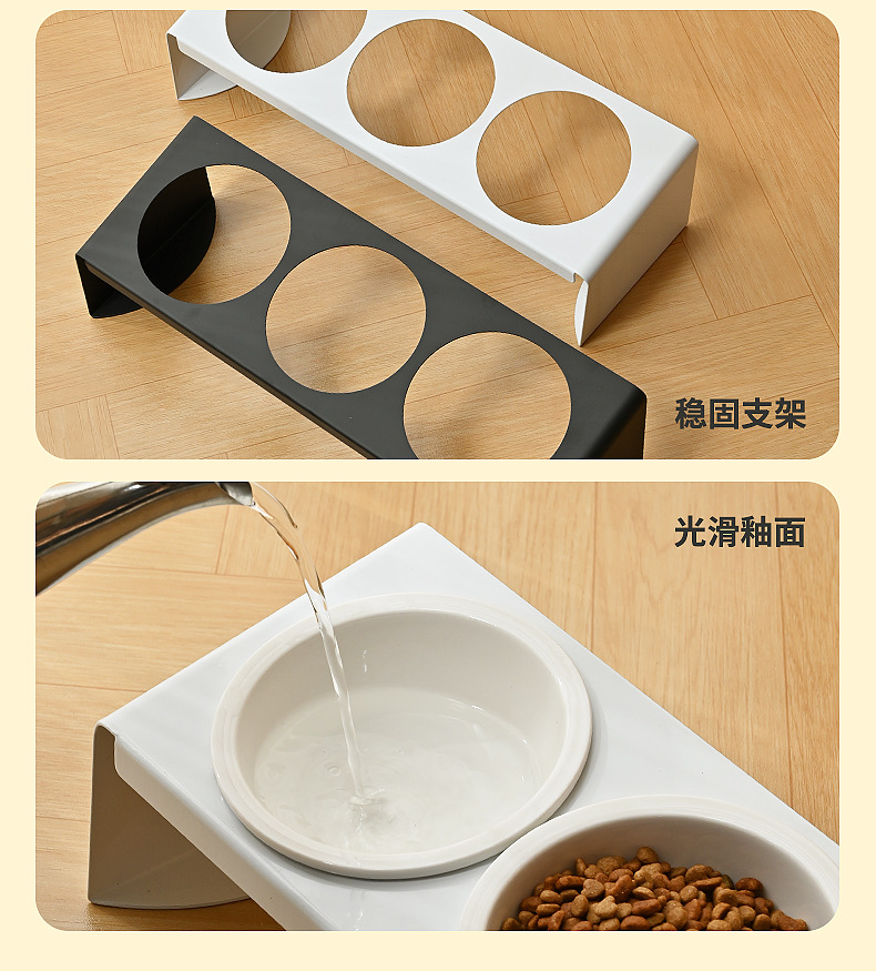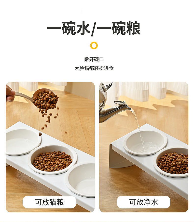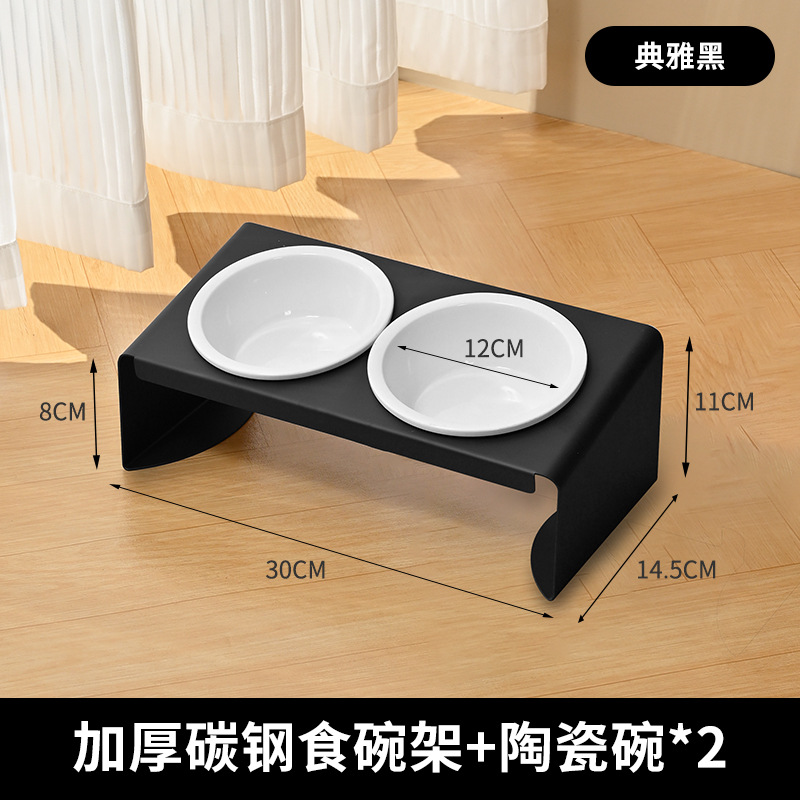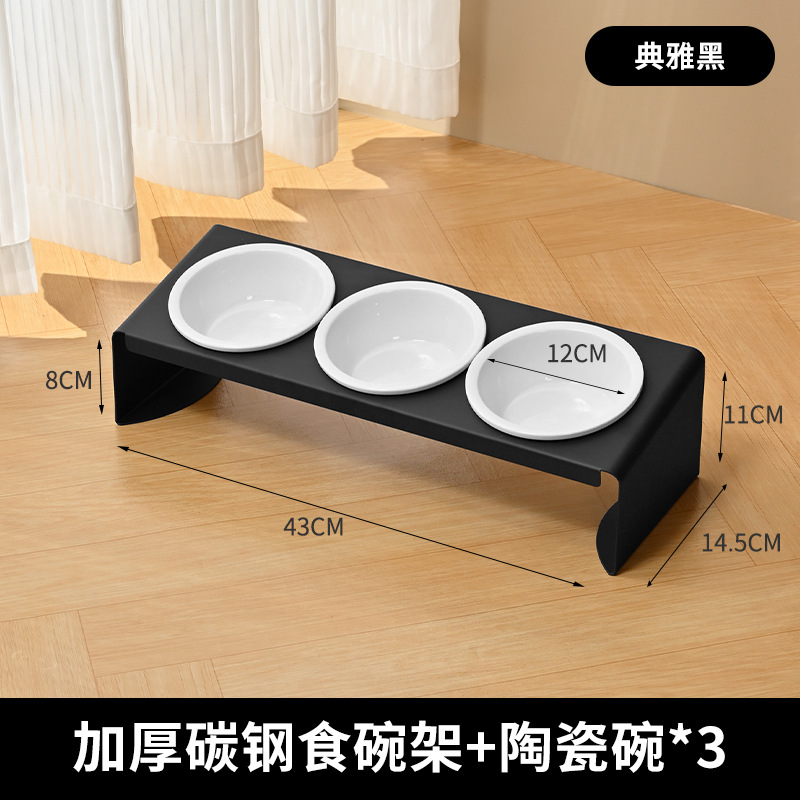 탄소강 세라믹 애완 동물 그릇 랙 고양이 음식 개 냄비 그릇 비스듬한 입 세 그릇 경추 방지 팁 식수 공급기 보호스토어 가기