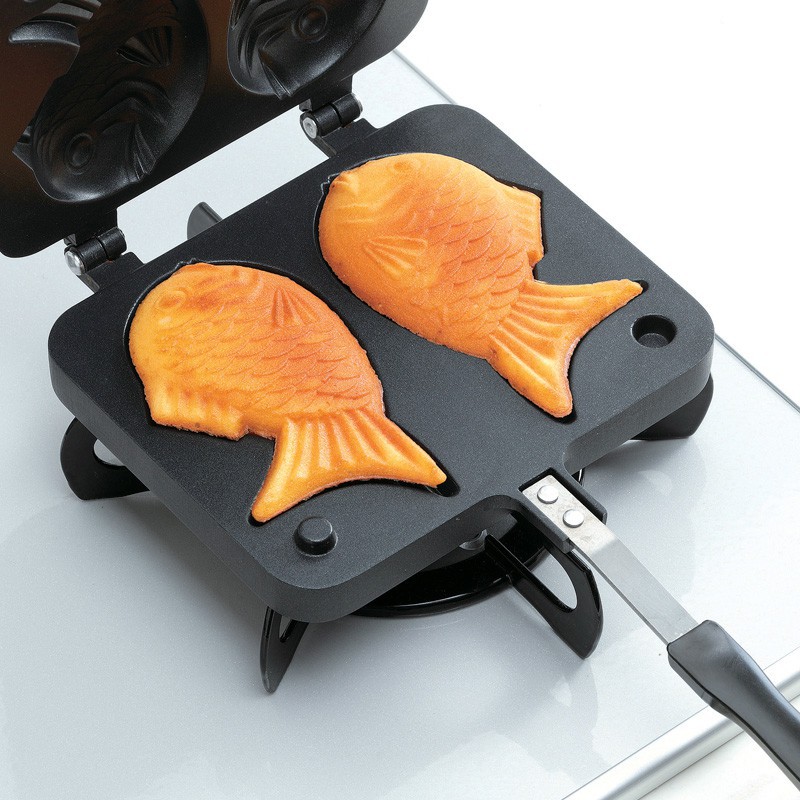 4. 在鲷鱼烧锅两面涂上一层薄薄的油(未列出)并预热,然后将步骤3的面糊插入底部孔中,大约5分钟。