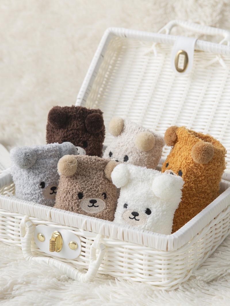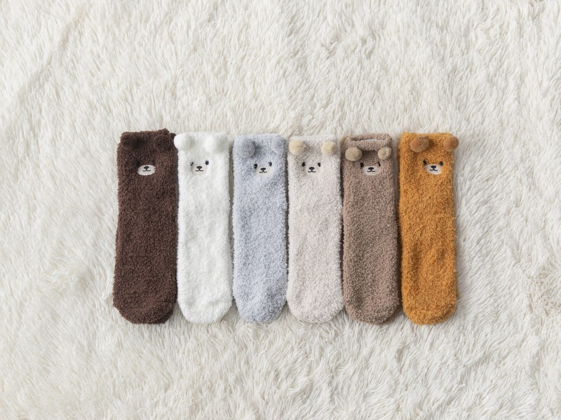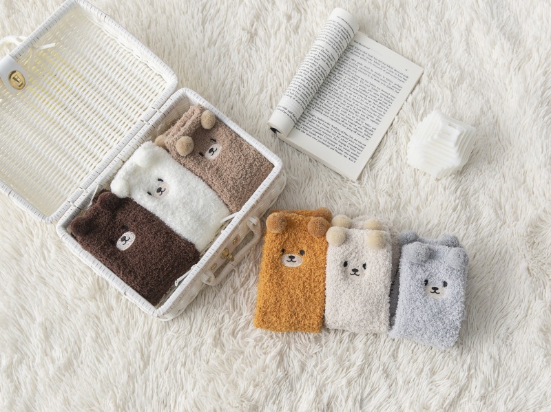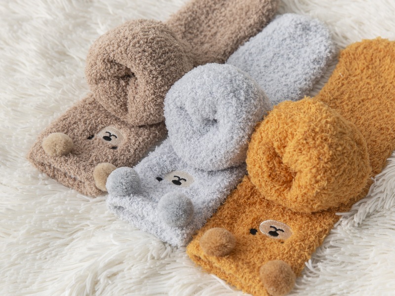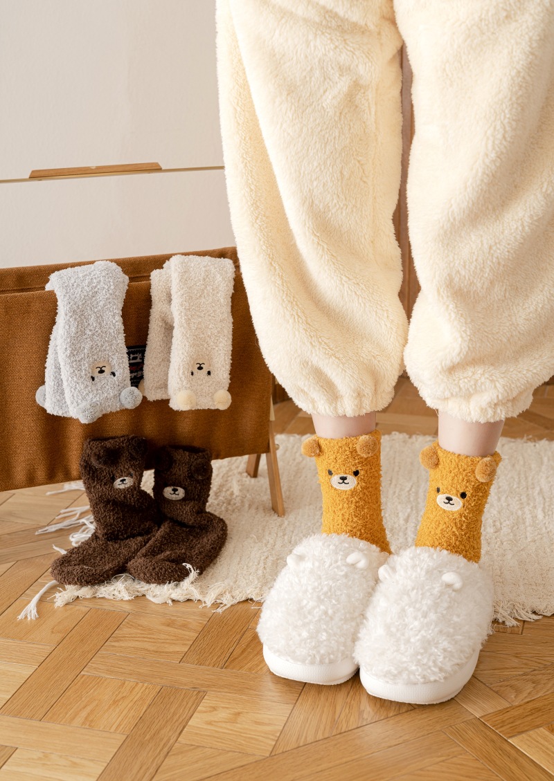 가을과 겨울 산호 벨벳 양말 여성용 보풀이없는 수면 양말 두꺼운 따뜻한 반 벨벳 자수 만화 곰 바닥 양말스토어 가기
