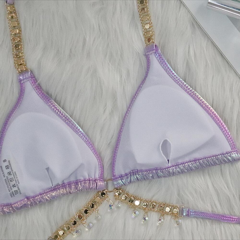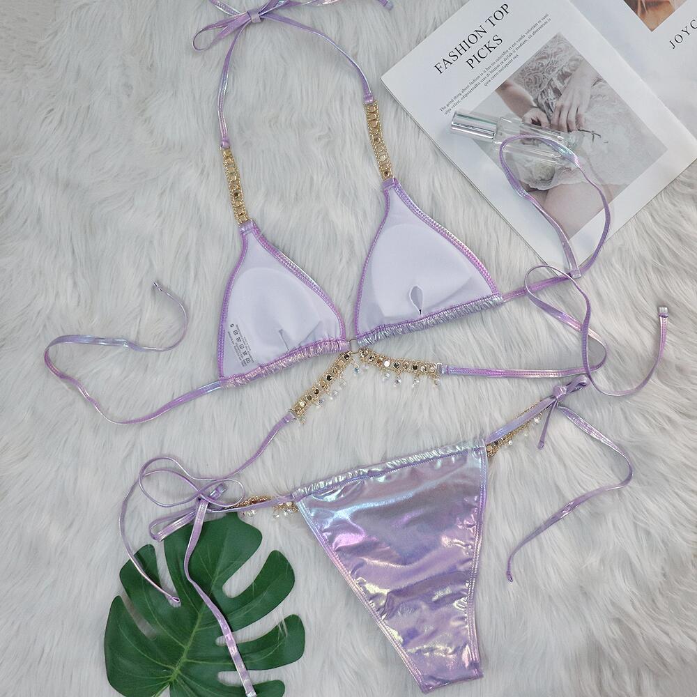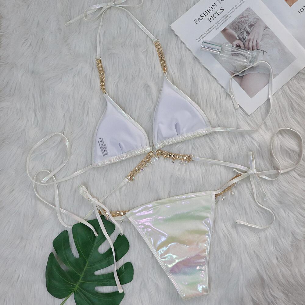 Baizi 2024 새로운 크리스탈 다이아몬드 비키니 섹시한 브론징 스트랩 여자의 분할 수영복 제조 업체 재고 수영복스토어 가기