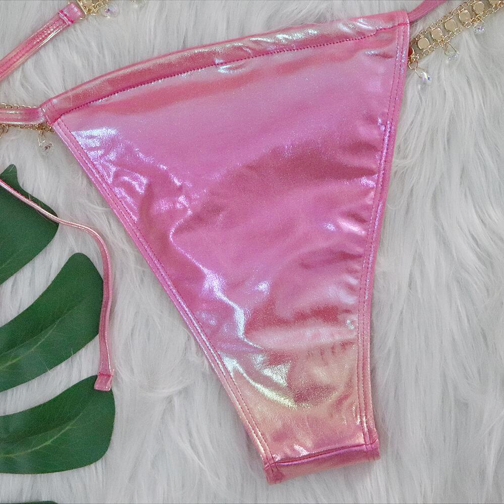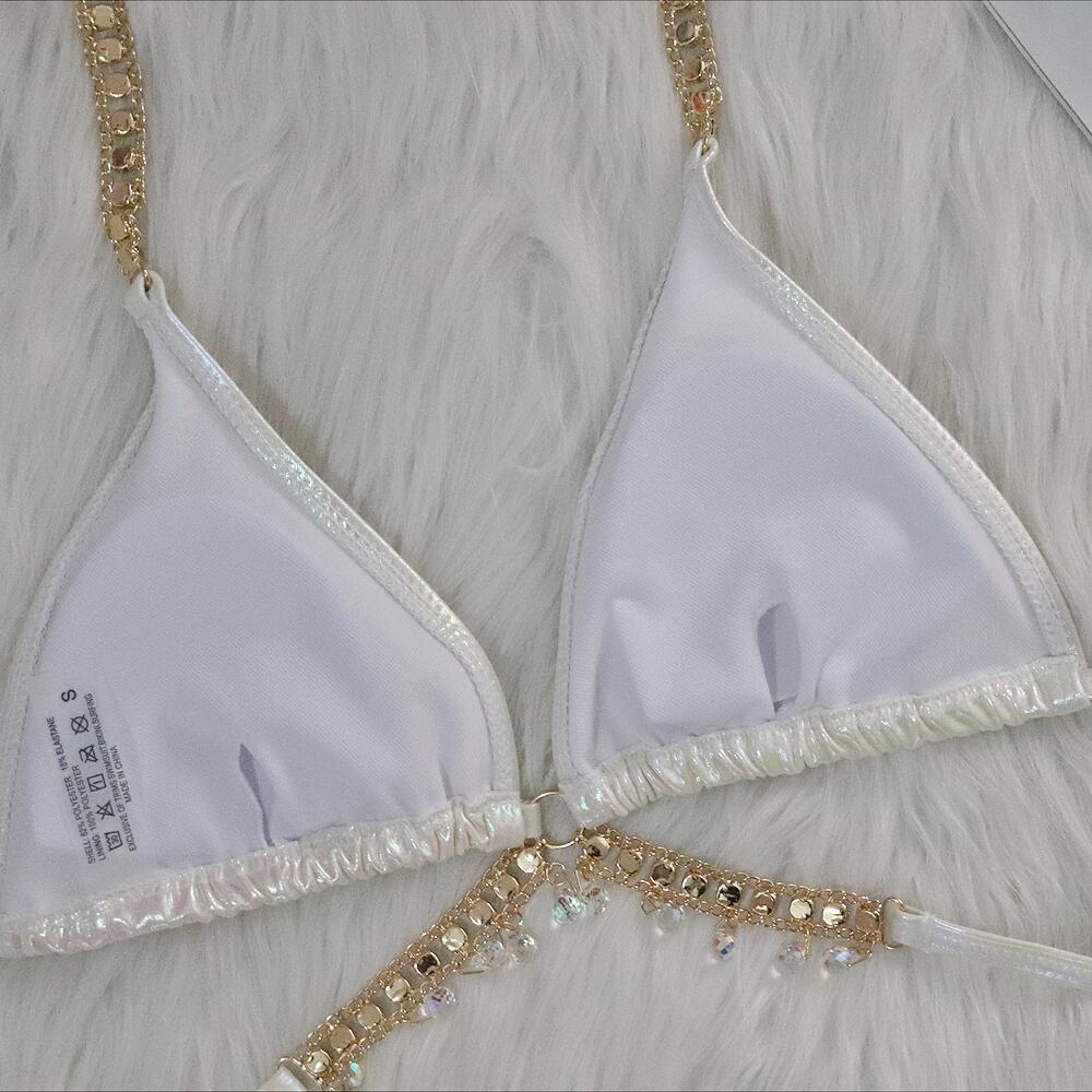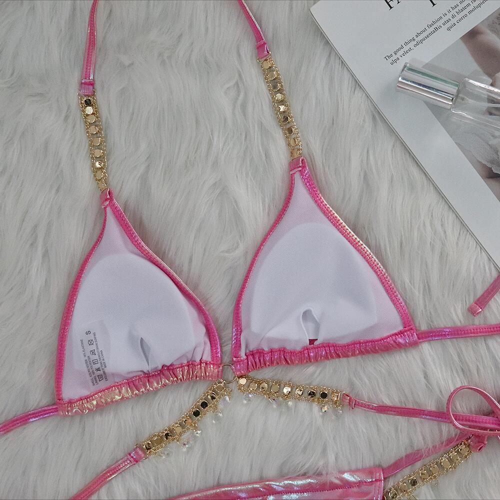 佰姿2024新款水晶钻石比基尼性感烫金绑带女分体泳衣厂家现货泳装