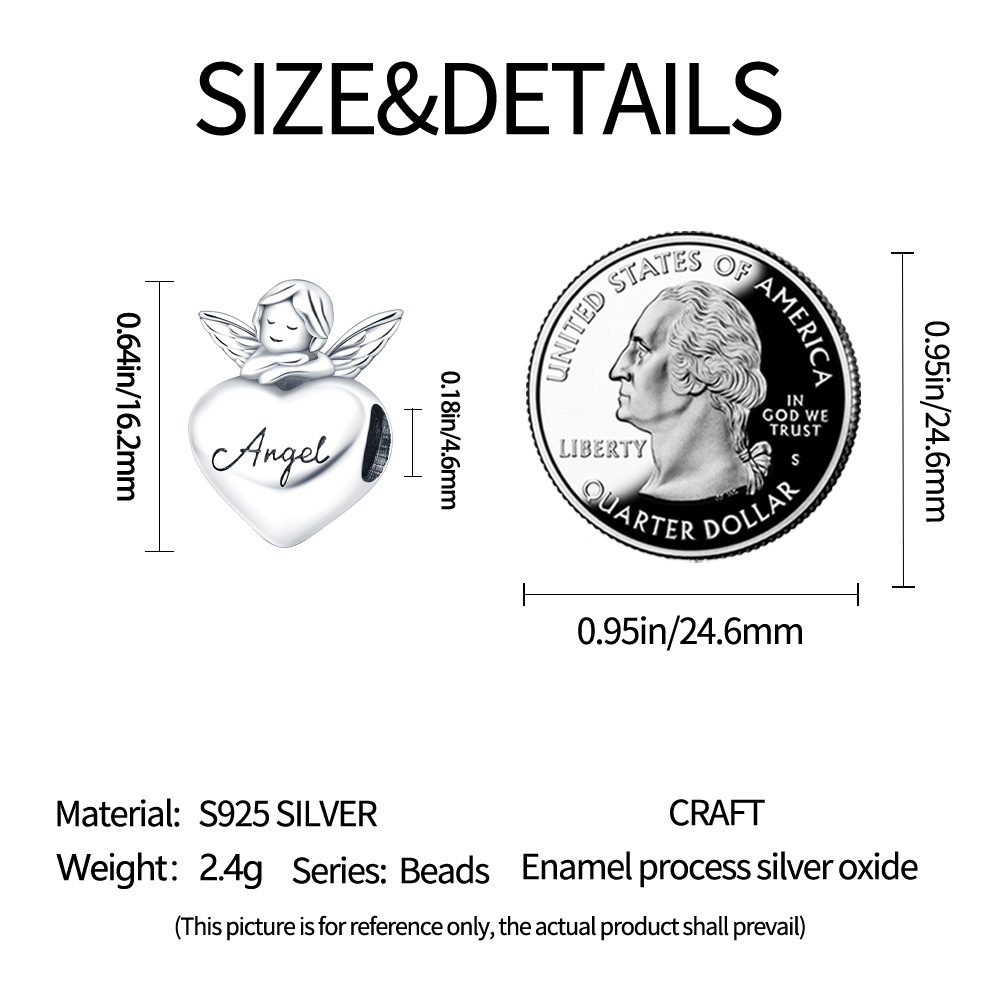 흰색 구리 도금 925 실버 구슬 끈 장식 천사 희망 하트 모양의 구슬 Panjia DIY 구슬 팔찌 목걸이 도매