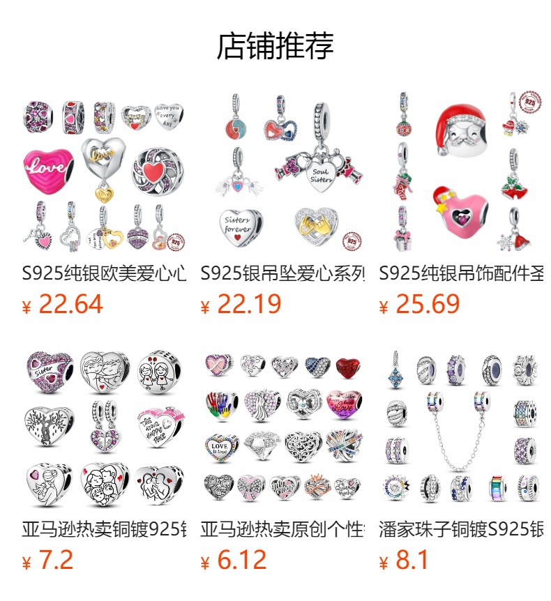 흰색 구리 도금 925 실버 구슬 끈 장식 천사 희망 하트 모양의 구슬 Panjia DIY 구슬 팔찌 목걸이 도매스토어 가기