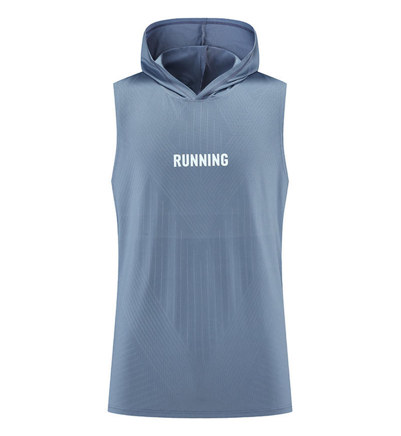 여름 느슨한 러닝 풀오버 남성용 속건성 민소매 후드 트레이닝 조끼 스포츠 티셔츠 피트니스 의류 인쇄 Dropshipping