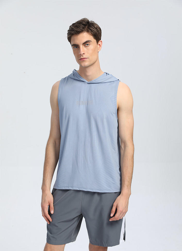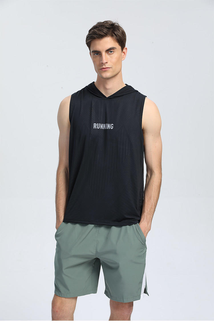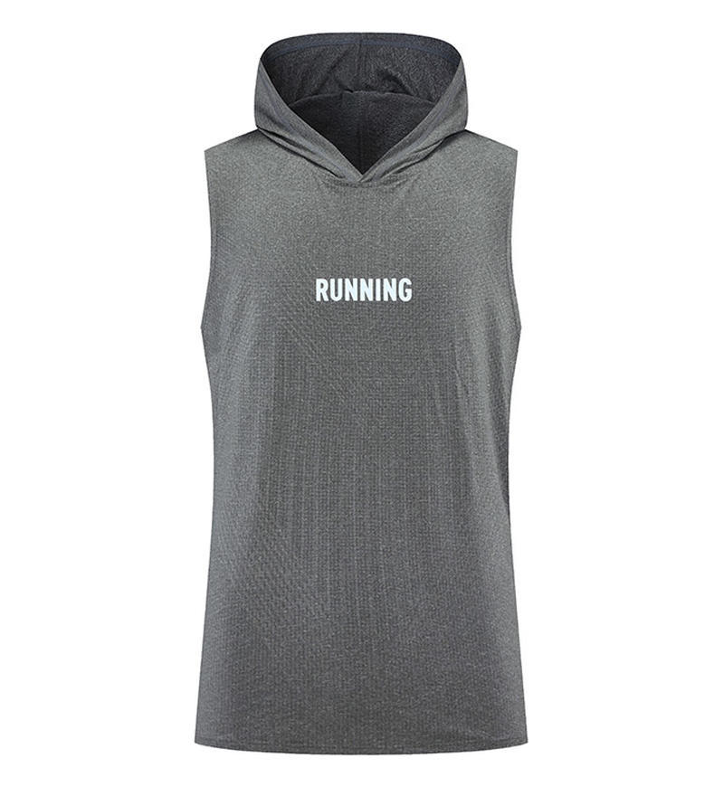 여름 느슨한 러닝 풀오버 남성용 속건성 민소매 후드 트레이닝 조끼 스포츠 티셔츠 피트니스 의류 인쇄 Dropshipping스토어 가기