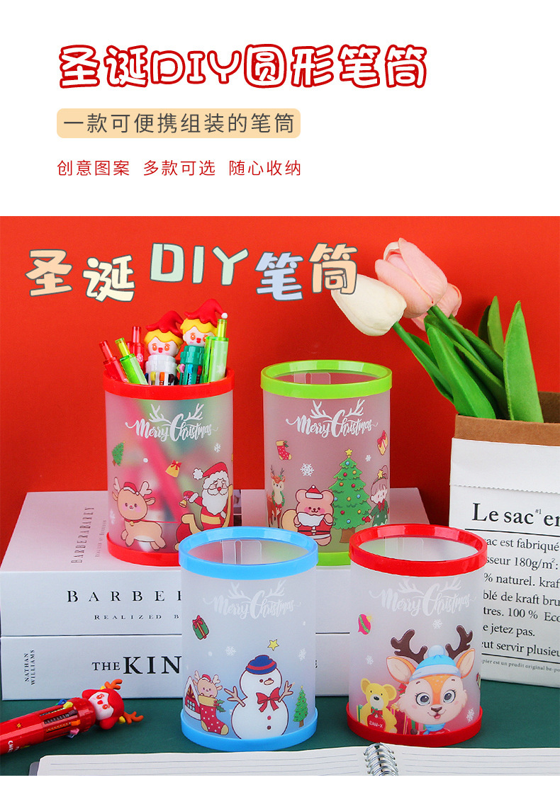 크리스마스 DIY 펜 홀더 귀여운 학생 상품 접이식 조립 펜 홀더 데스크탑 문구 보관 버킷 크리스마스 선물스토어 가기