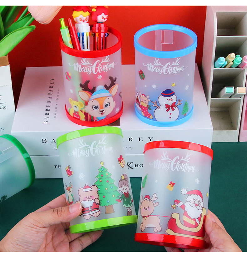 크리스마스 DIY 펜 홀더 귀여운 학생 상품 접이식 조립 펜 홀더 데스크탑 문구 보관 버킷 크리스마스 선물
