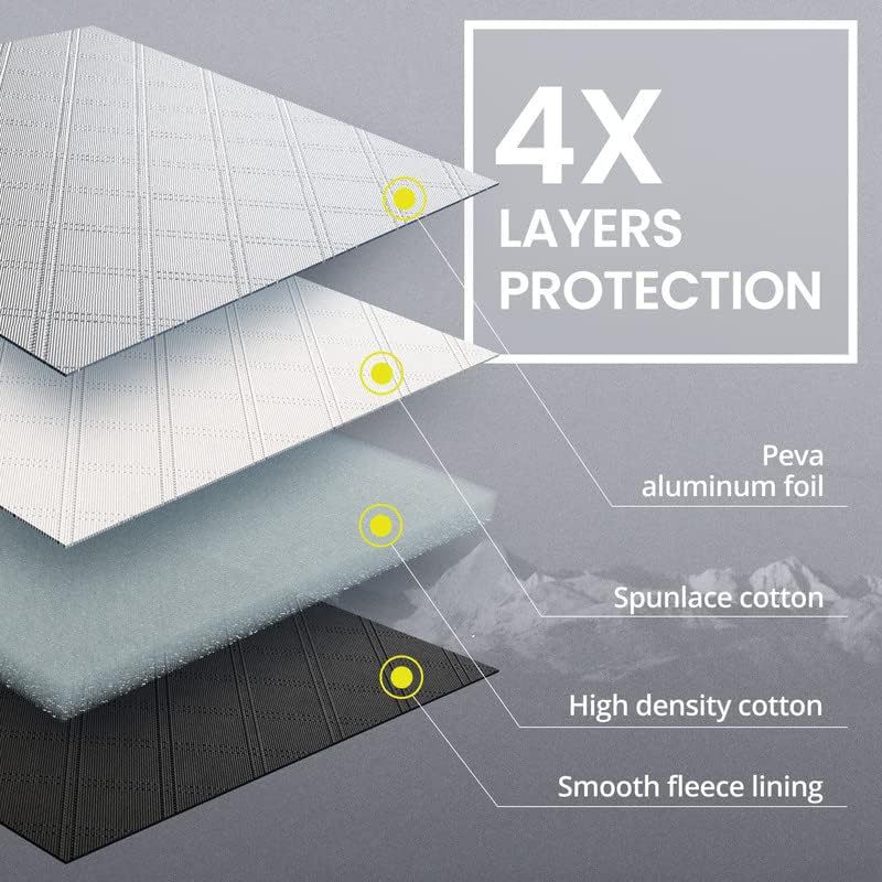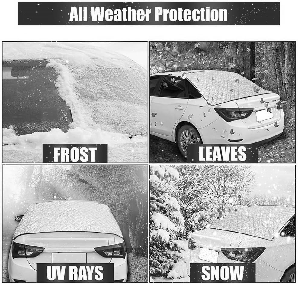 • 【四层保护】我们的挡风玻璃防雪罩由 4 层制成设计:车罩由 PEVA 铝箔组合而成,可反射阳光,防水和抗撕裂,水刺棉隔绝热量和冷空气,复合棉有效防止低温进入汽车。 耐用的缝合可防止车罩被撕裂或划伤,并使您的汽车保持原初的外形,长期使用。