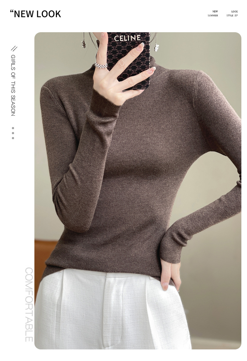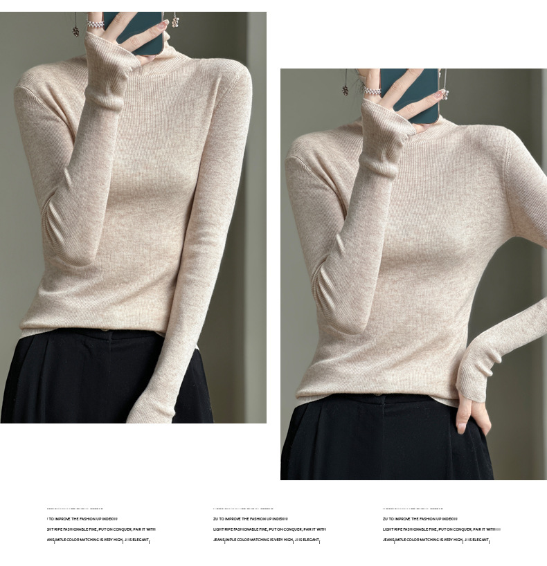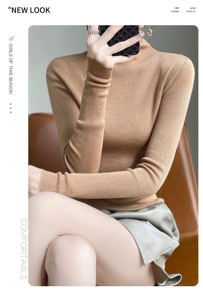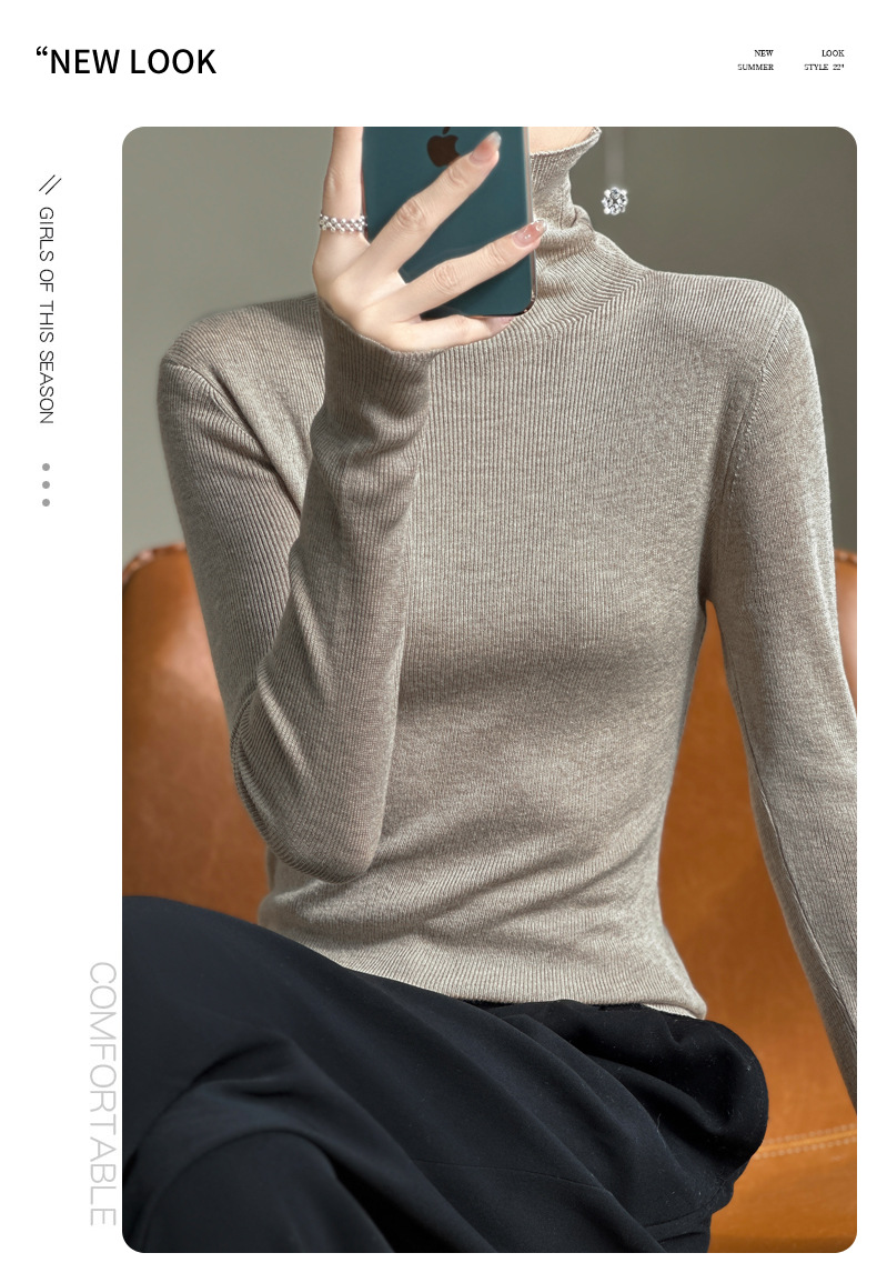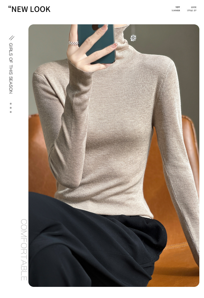 2025 가을 겨울 드롭쉬핑 안디 벨벳 스택 칼라 스웨터, 슬림핏, 여성용 타이트 니트 두꺼운 스웨터스토어 가기