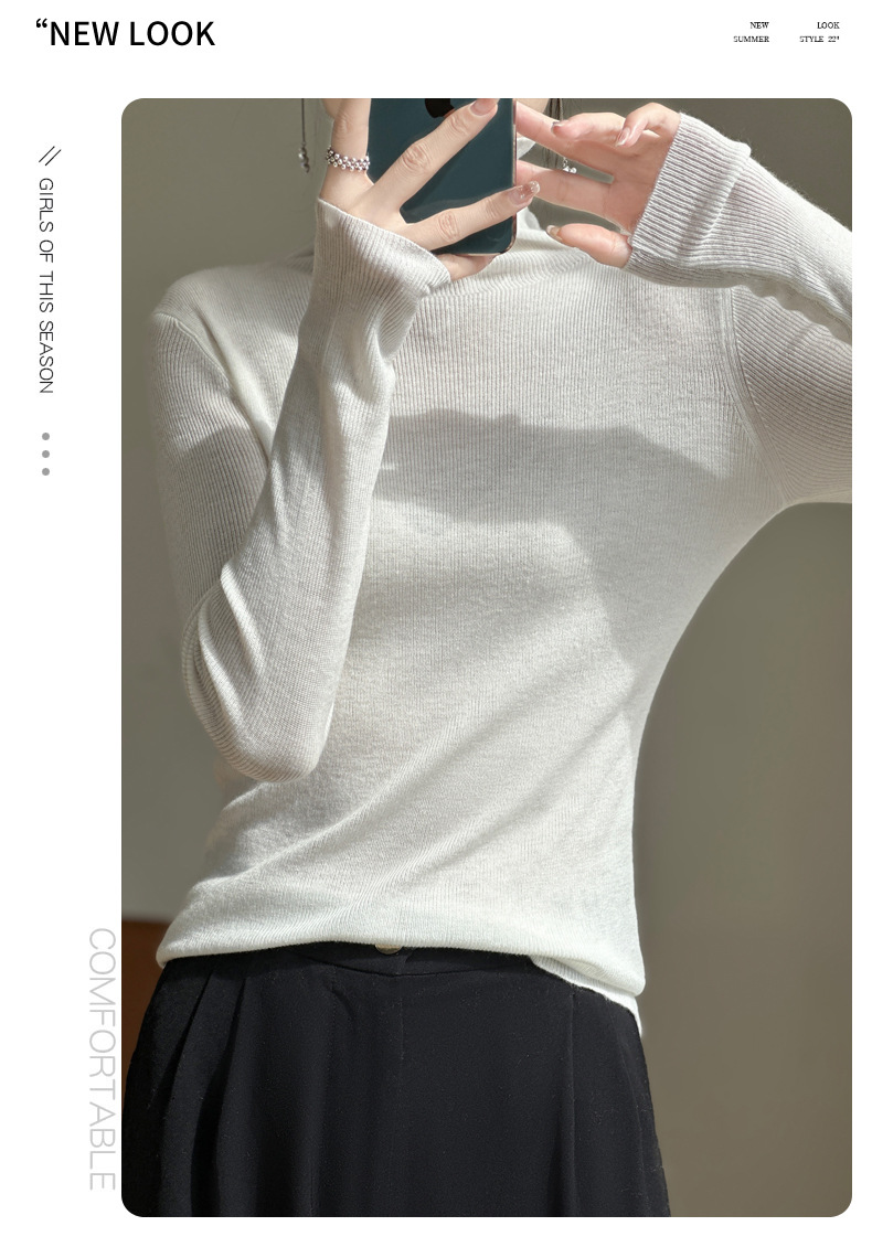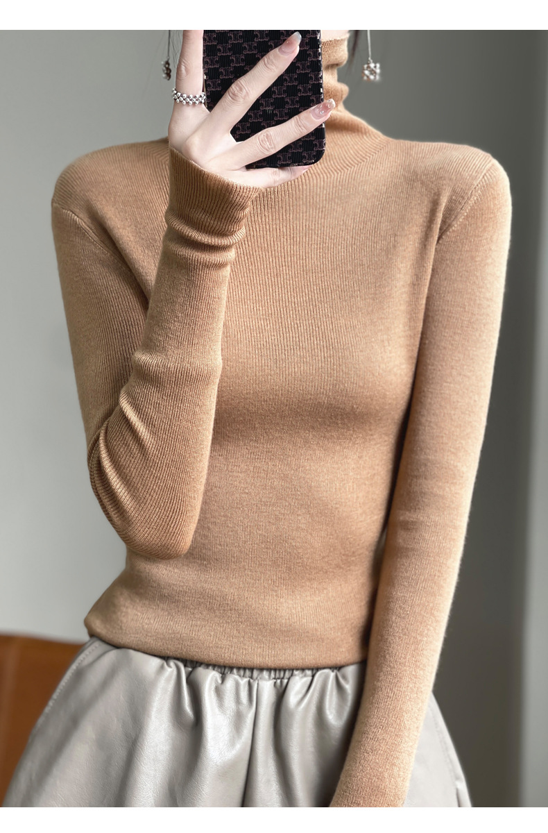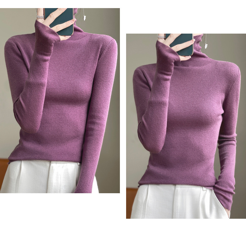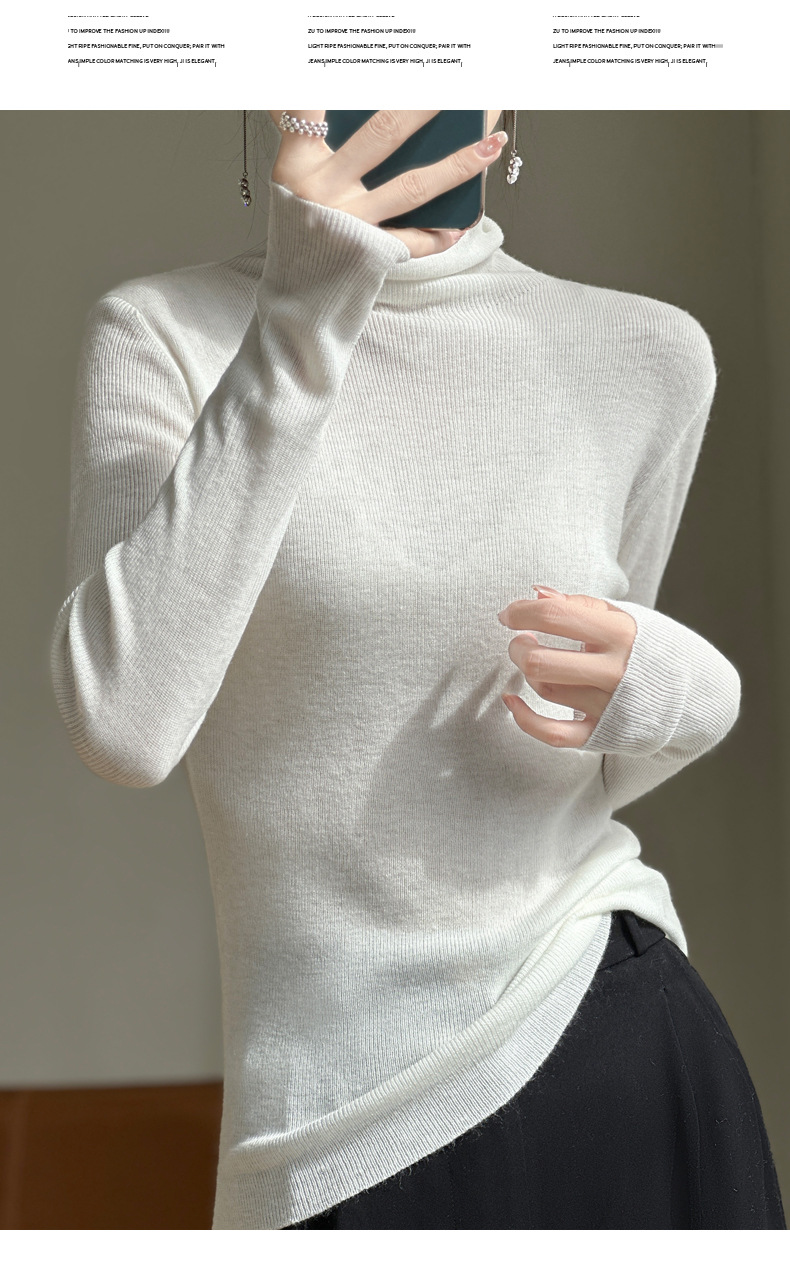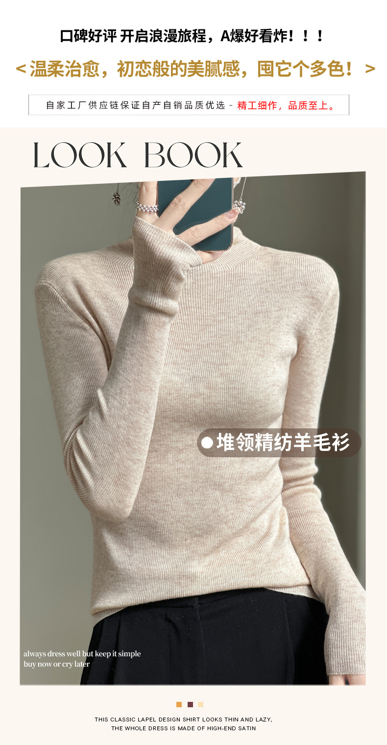 2025 가을 겨울 드롭쉬핑 안디 벨벳 스택 칼라 스웨터, 슬림핏, 여성용 타이트 니트 두꺼운 스웨터스토어 가기