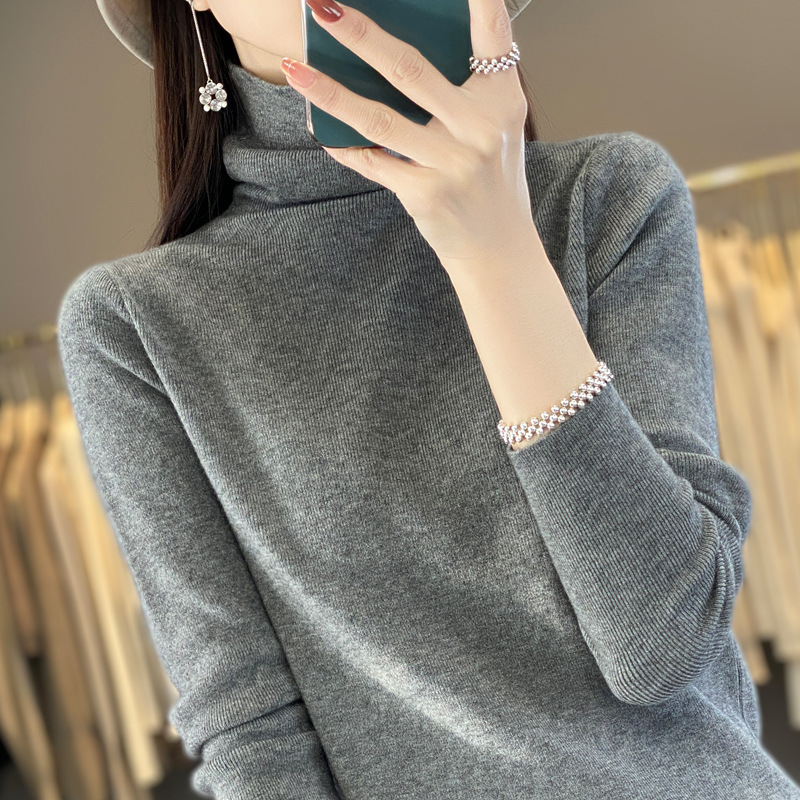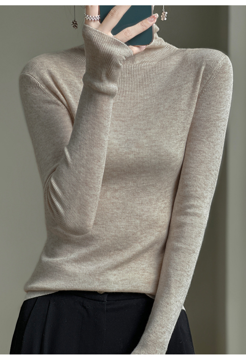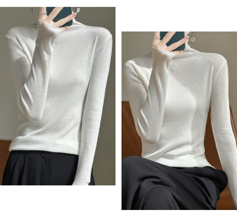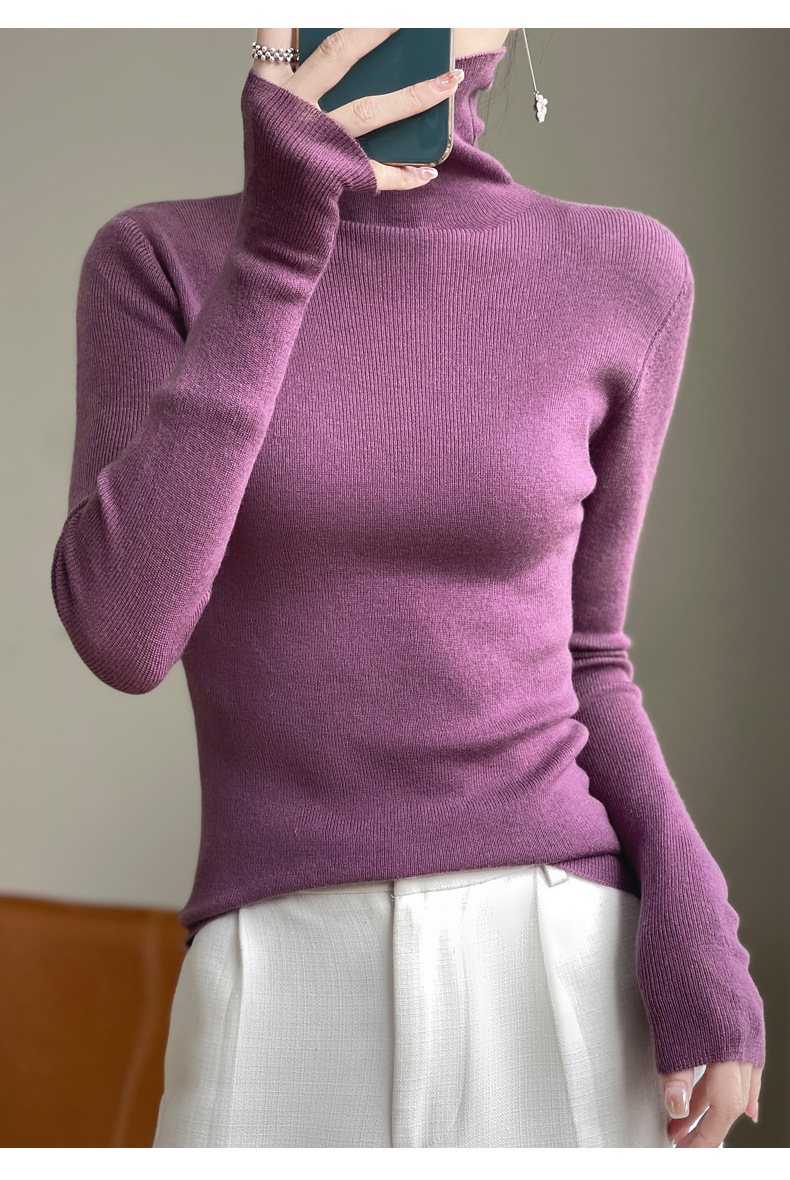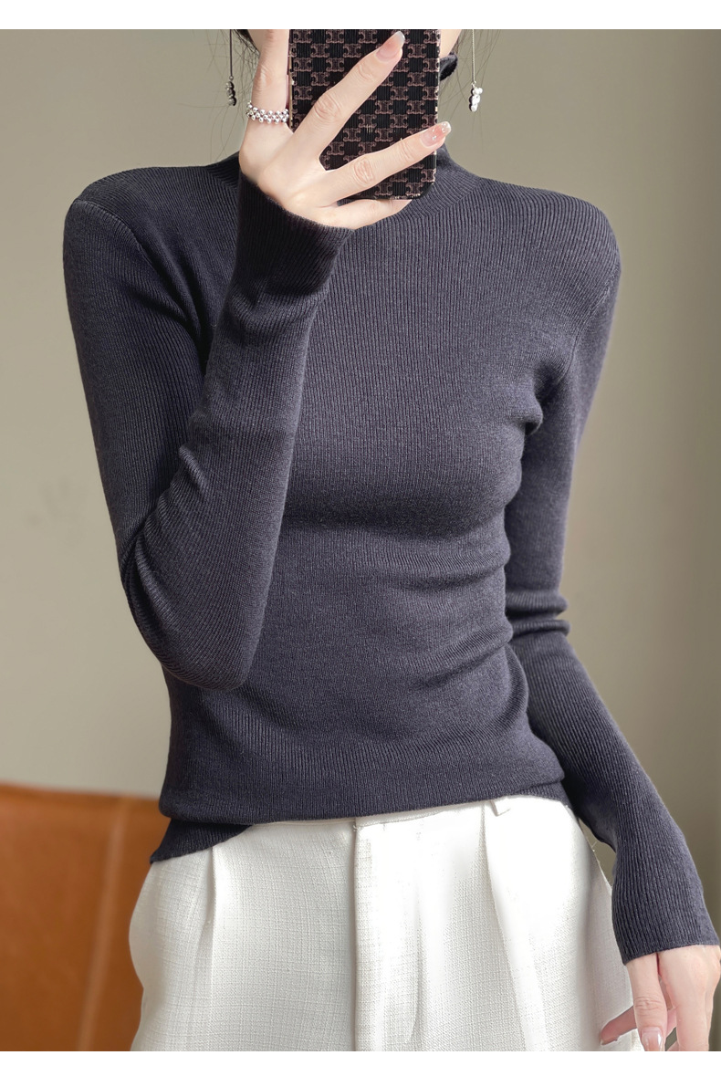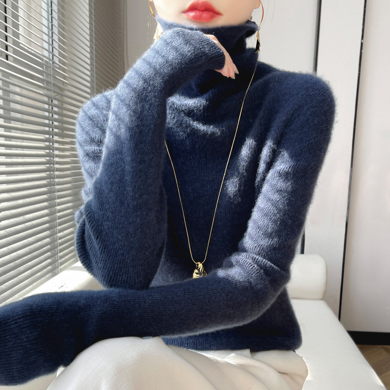 2025 가을 겨울 드롭쉬핑 안디 벨벳 스택 칼라 스웨터, 슬림핏, 여성용 타이트 니트 두꺼운 스웨터스토어 가기