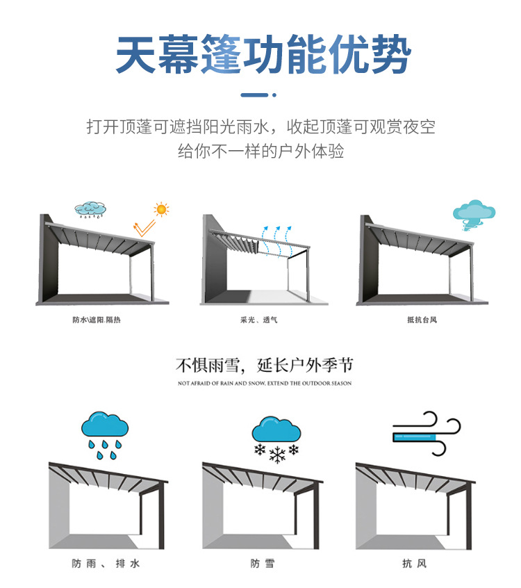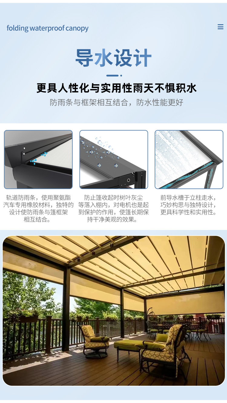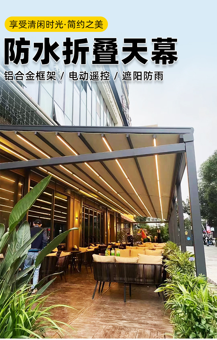 방수 접는 캐노피 야외 안뜰 레스토랑 파빌리온 전기 텔레스코픽 캐노피 음영 방열 캐노피