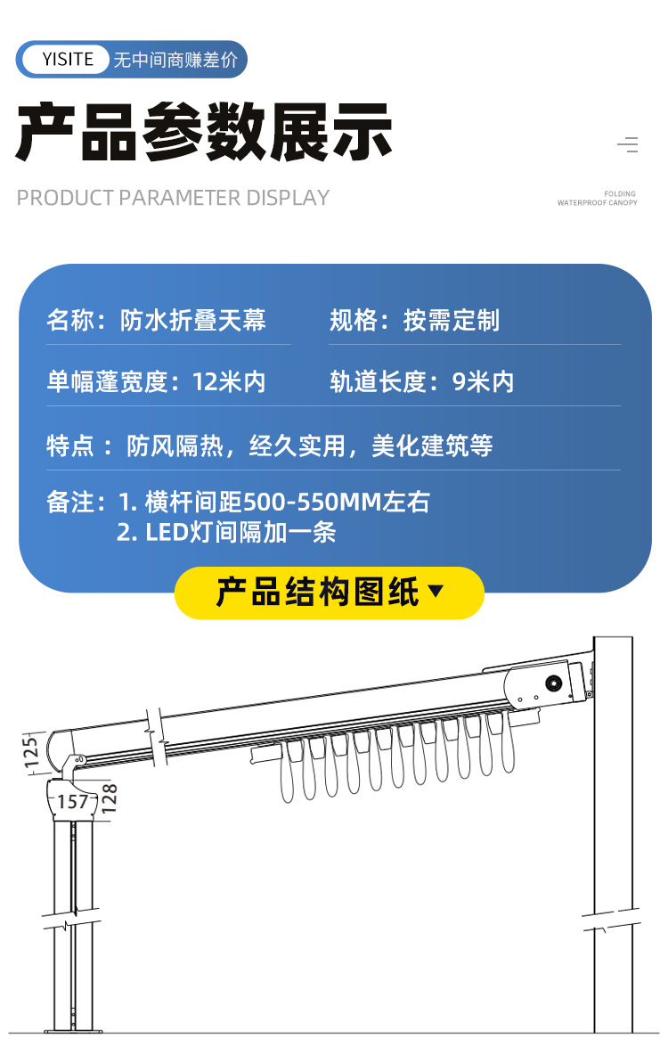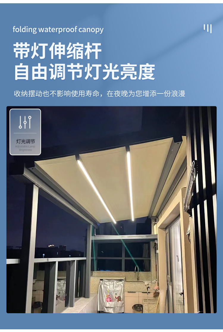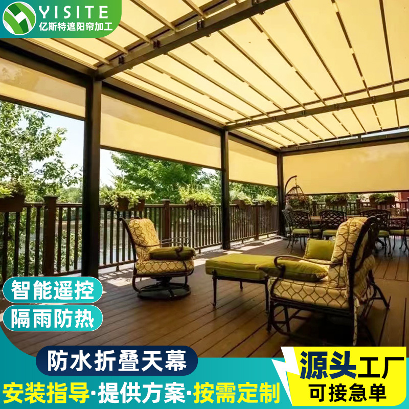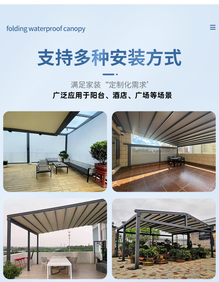 방수 접는 캐노피 야외 안뜰 레스토랑 파빌리온 전기 텔레스코픽 캐노피 음영 방열 캐노피스토어 가기