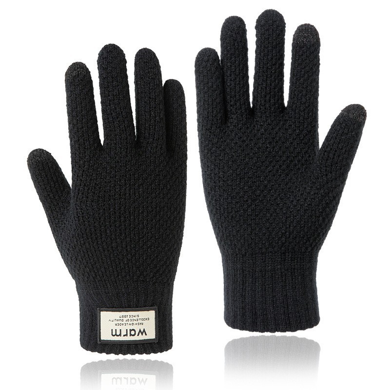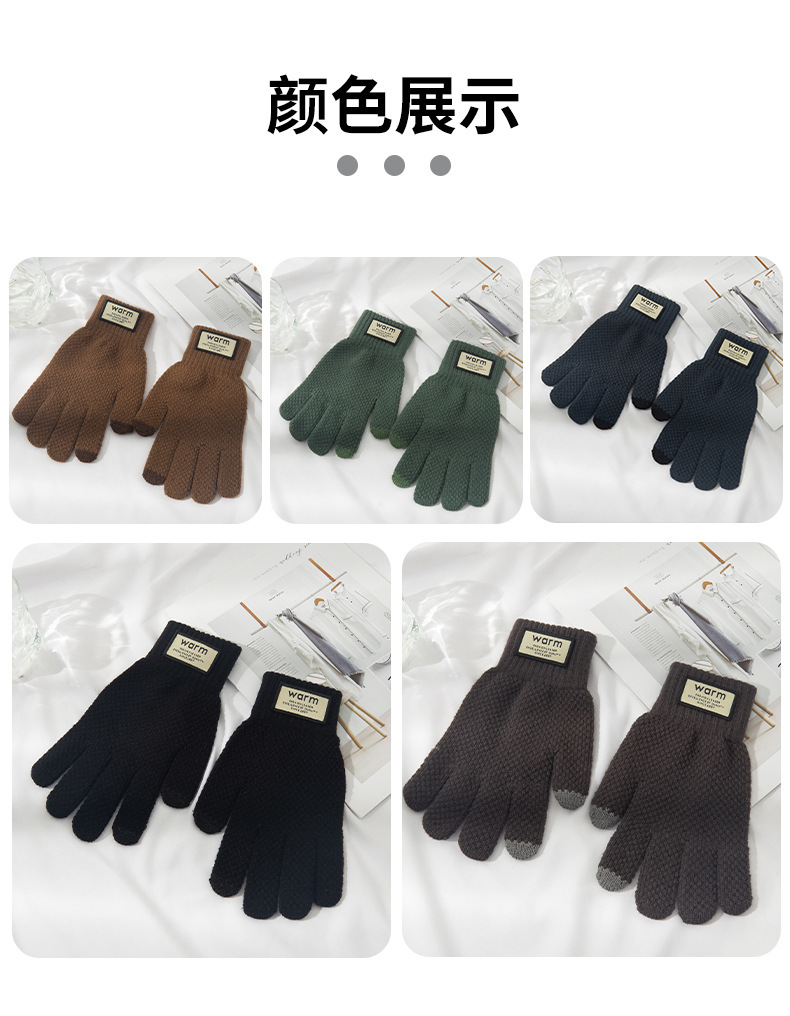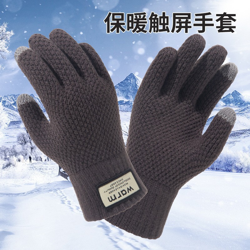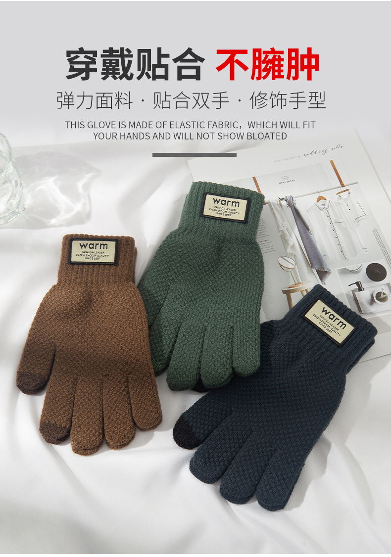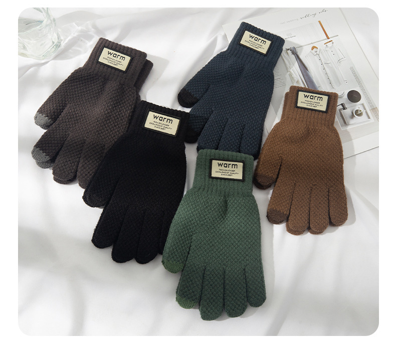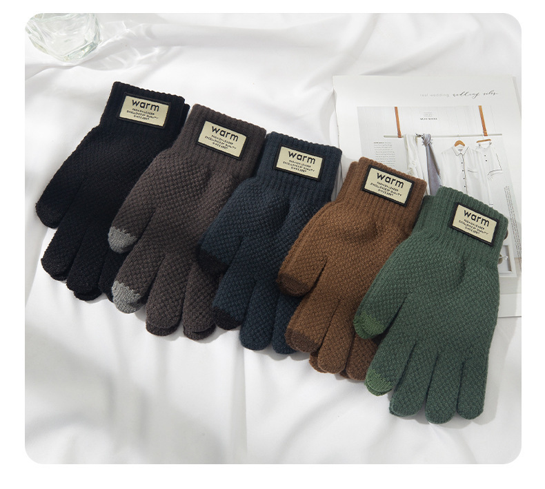 남성용 모직 장갑, 보온 및 방풍, 터치스크린 사용 가능, 겨울용 귀여운 니트 손가락 장갑