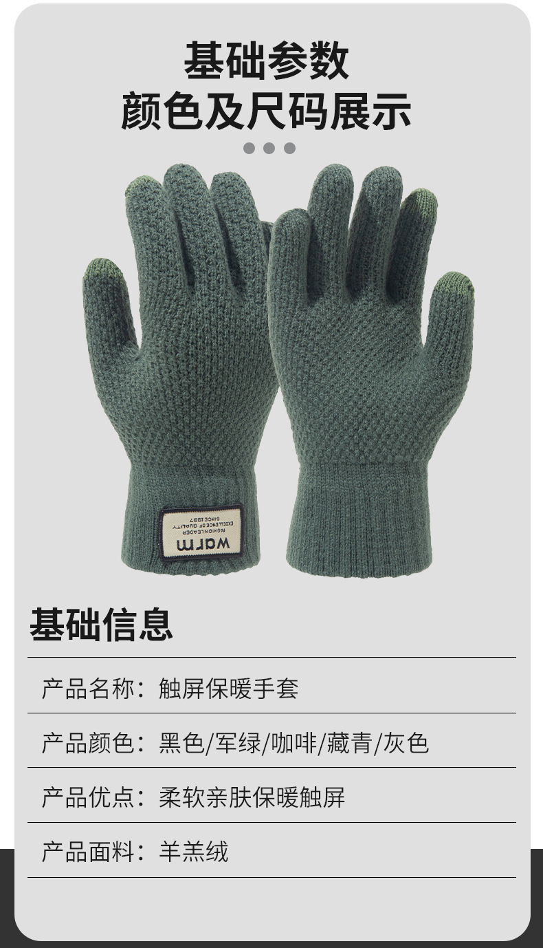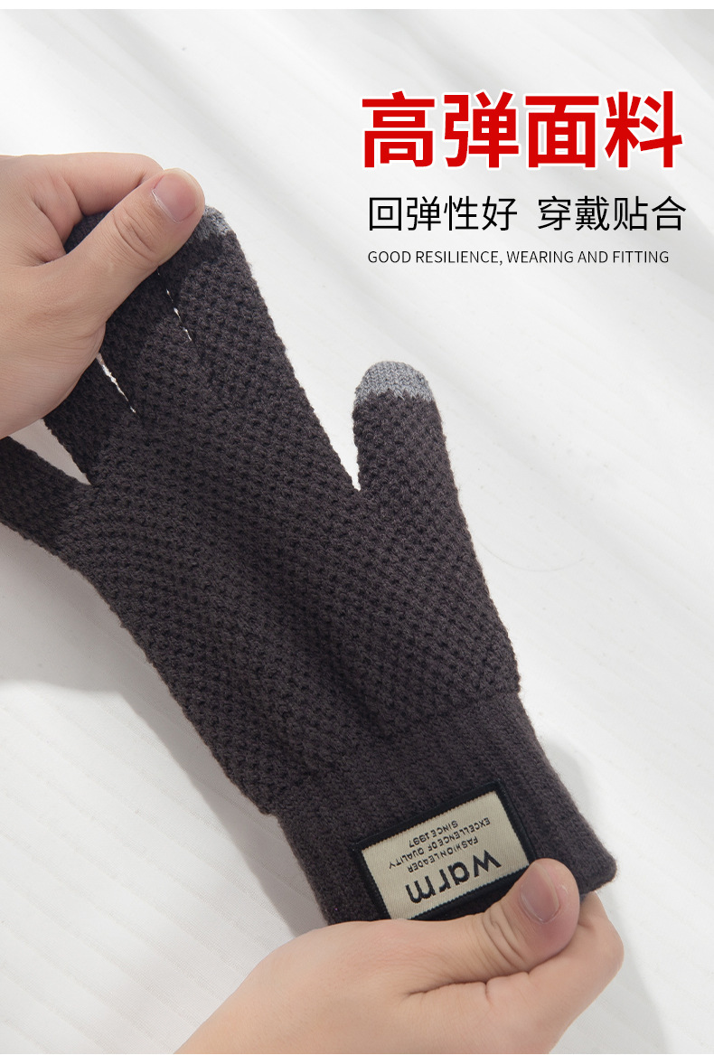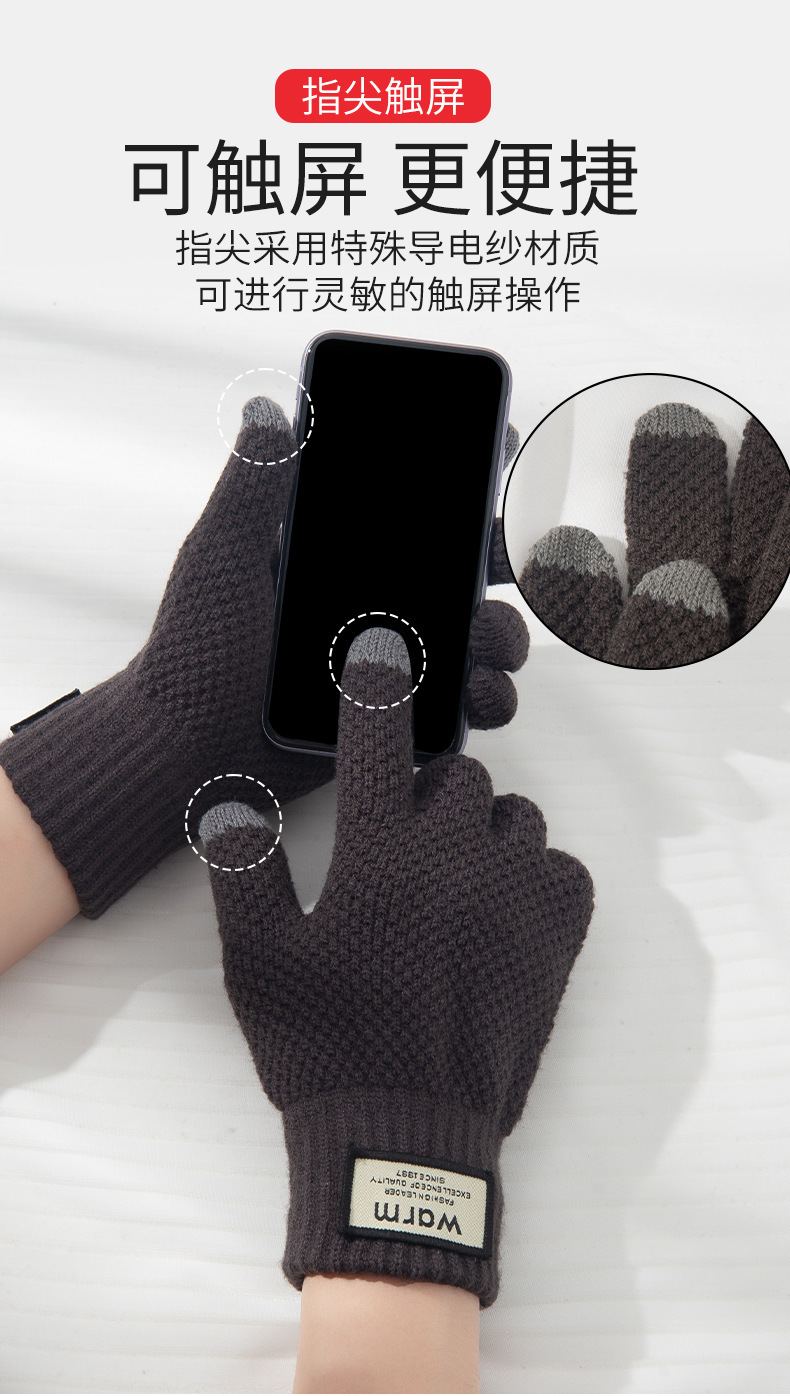 남성용 모직 장갑, 보온 및 방풍, 터치스크린 사용 가능, 겨울용 귀여운 니트 손가락 장갑스토어 가기