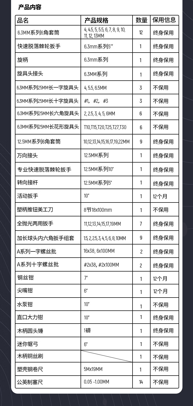 • 09517 76件6.3x12.5MM系列机械设备维修组套