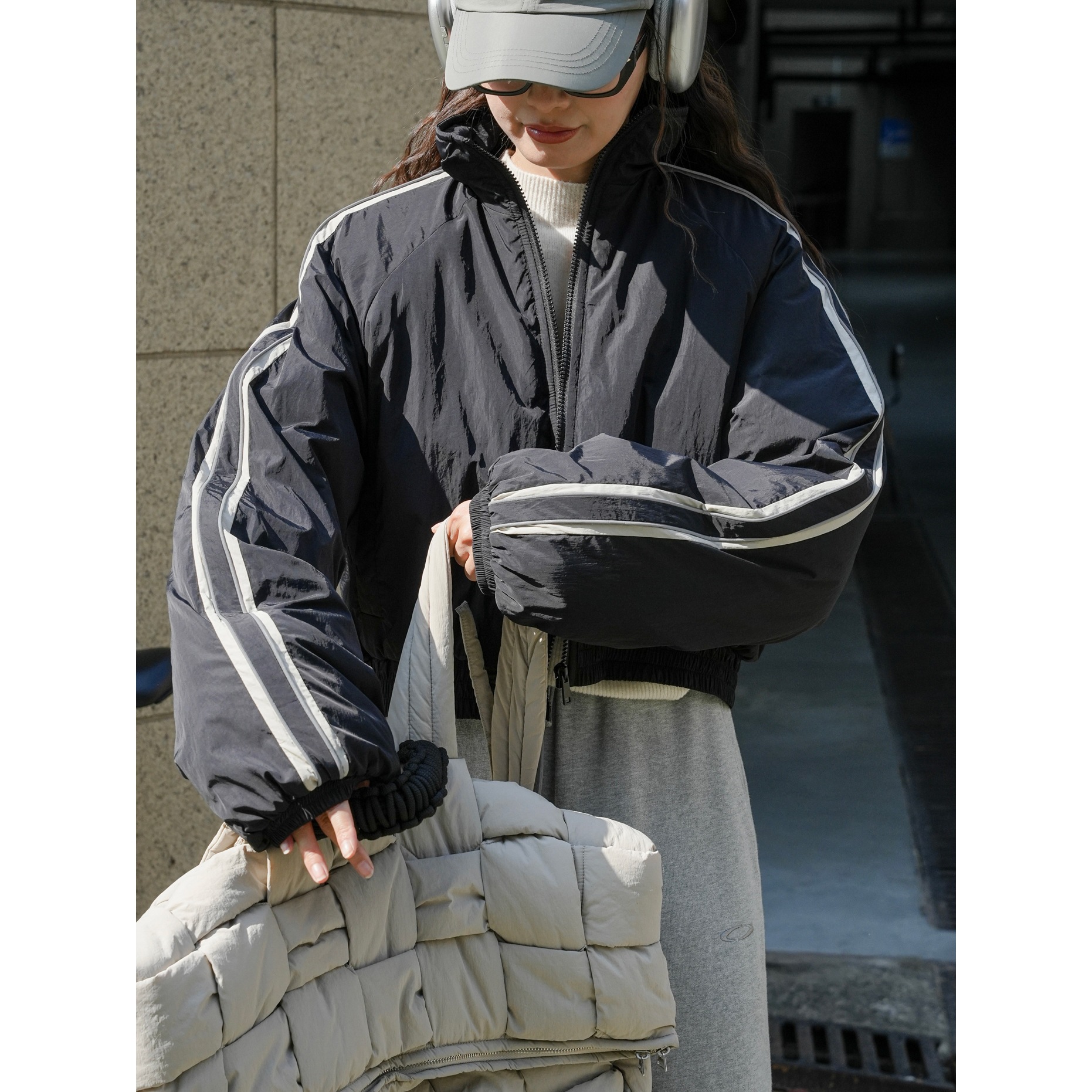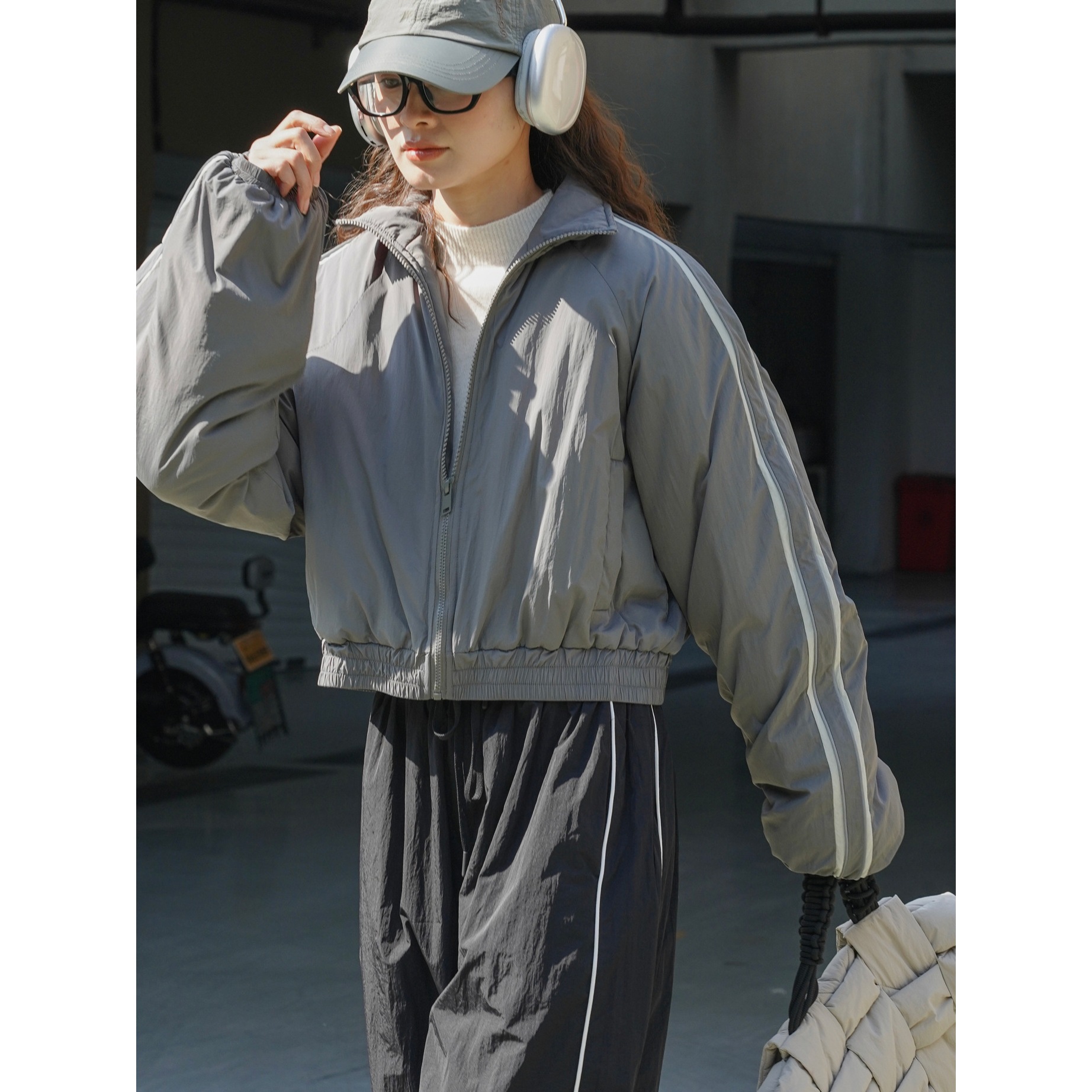 Lvu 겨울 새로운 한국 스타일 캐주얼 스포티 하이 넥 짧은 면 패딩 재킷 느슨한 프로필 여성을위한 편안한 따뜻한 재킷