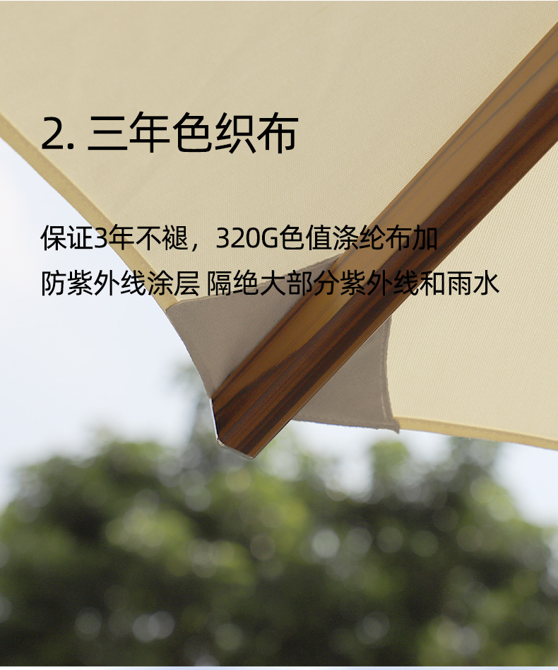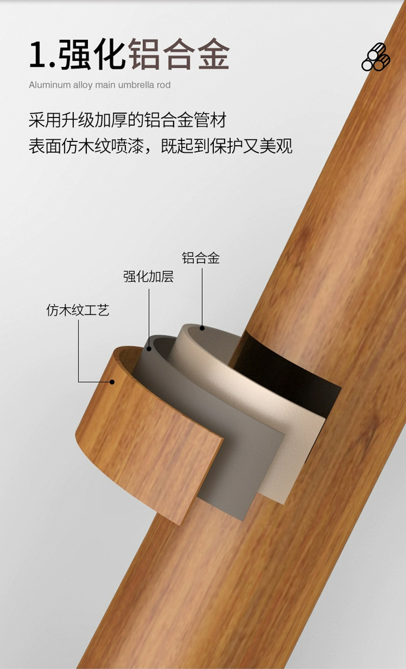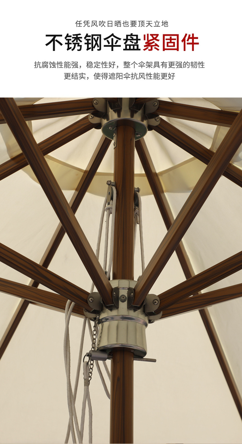 • 더블 탑 48 열 (디럭스 에디션) 라운드 2.7m 우드 그레인 우산 기둥 60kg 베이스