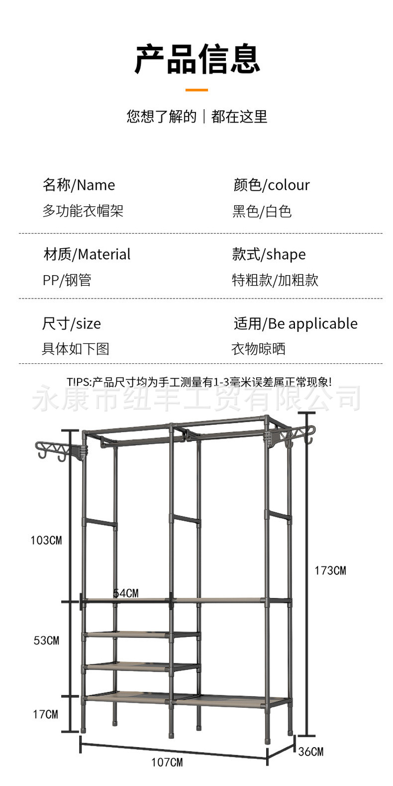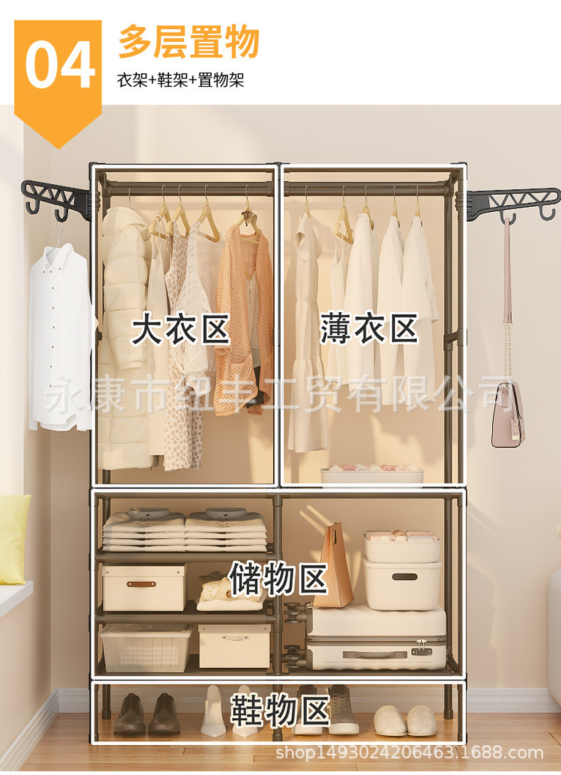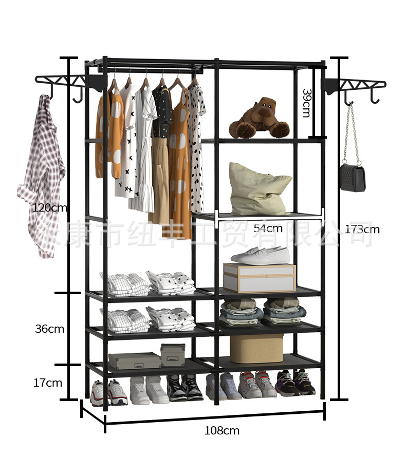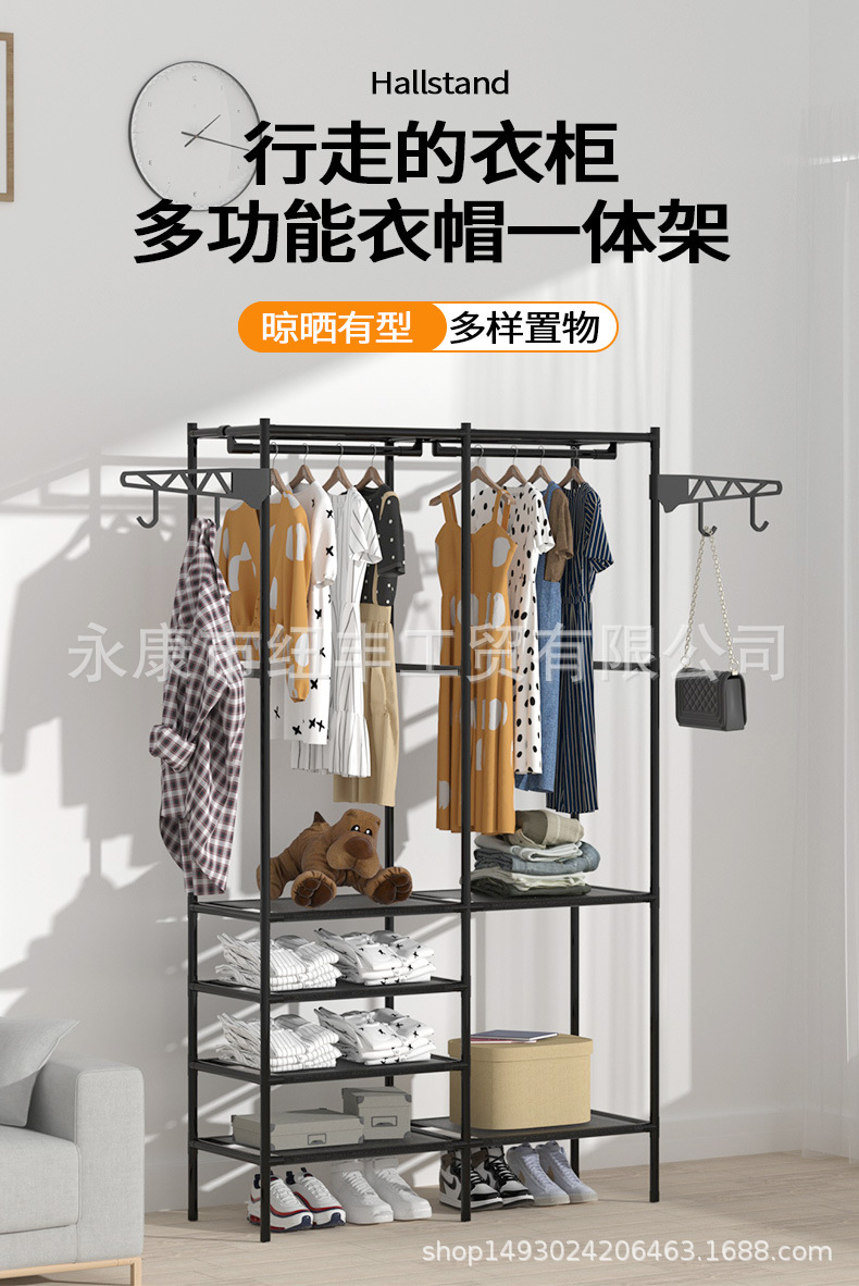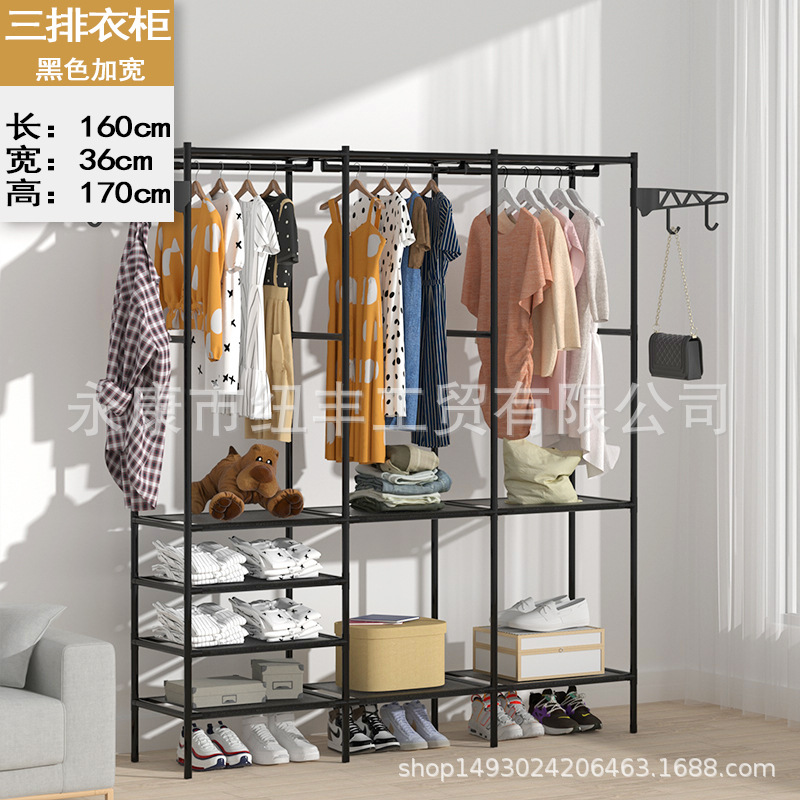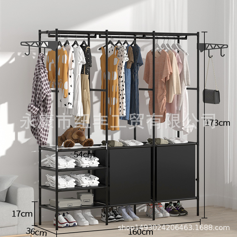 간단한 옷장 코트 랙 침실 걸이 대형 공간 바닥 옷 랙 다기능 스토리지 랙 공장스토어 가기