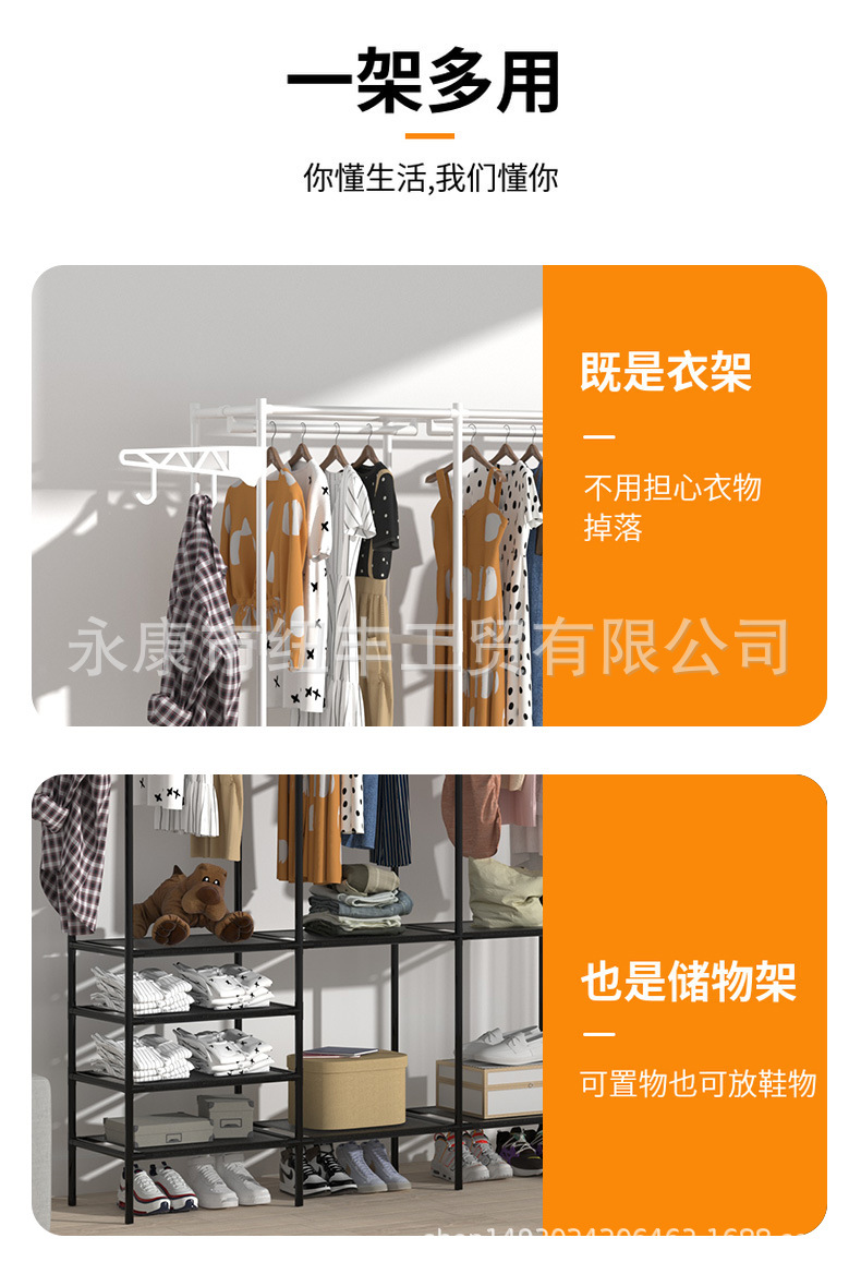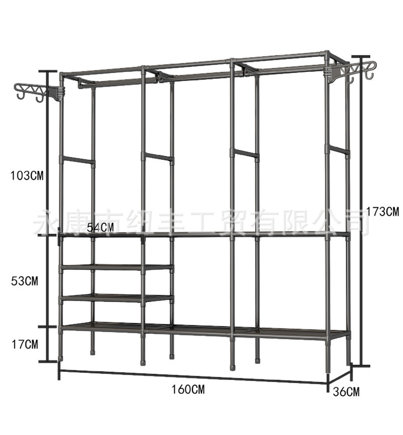 간단한 옷장 코트 랙 침실 걸이 대형 공간 바닥 옷 랙 다기능 스토리지 랙 공장