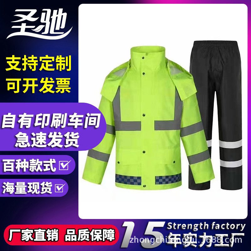 반사 레인코트 레인 팬츠 세트 야외 분할 교통 의무 고속 방수 옥스포드 더블 레이어 순찰 빗길 보호