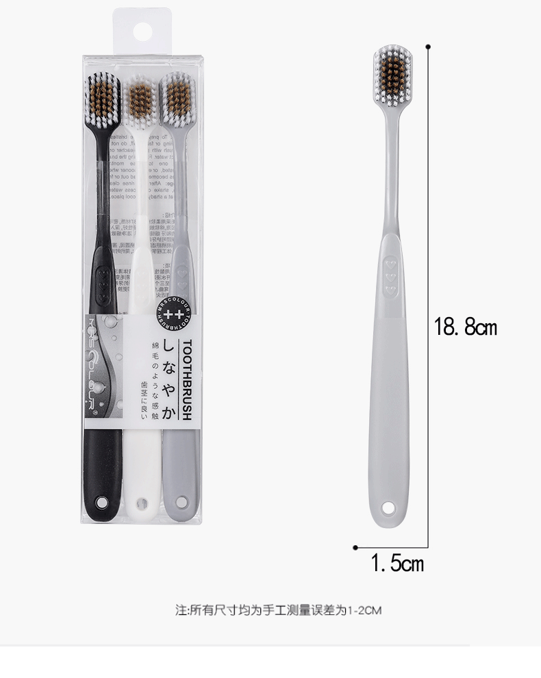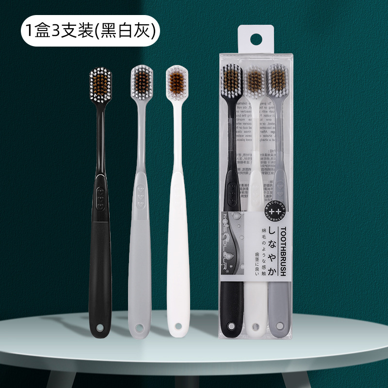 3 팩 일본식 간단한 칫솔 넓은 머리 가는 머리 성인 가정 및 홈 팩 커플 여행 휴대용 부드러운 머리 칫솔