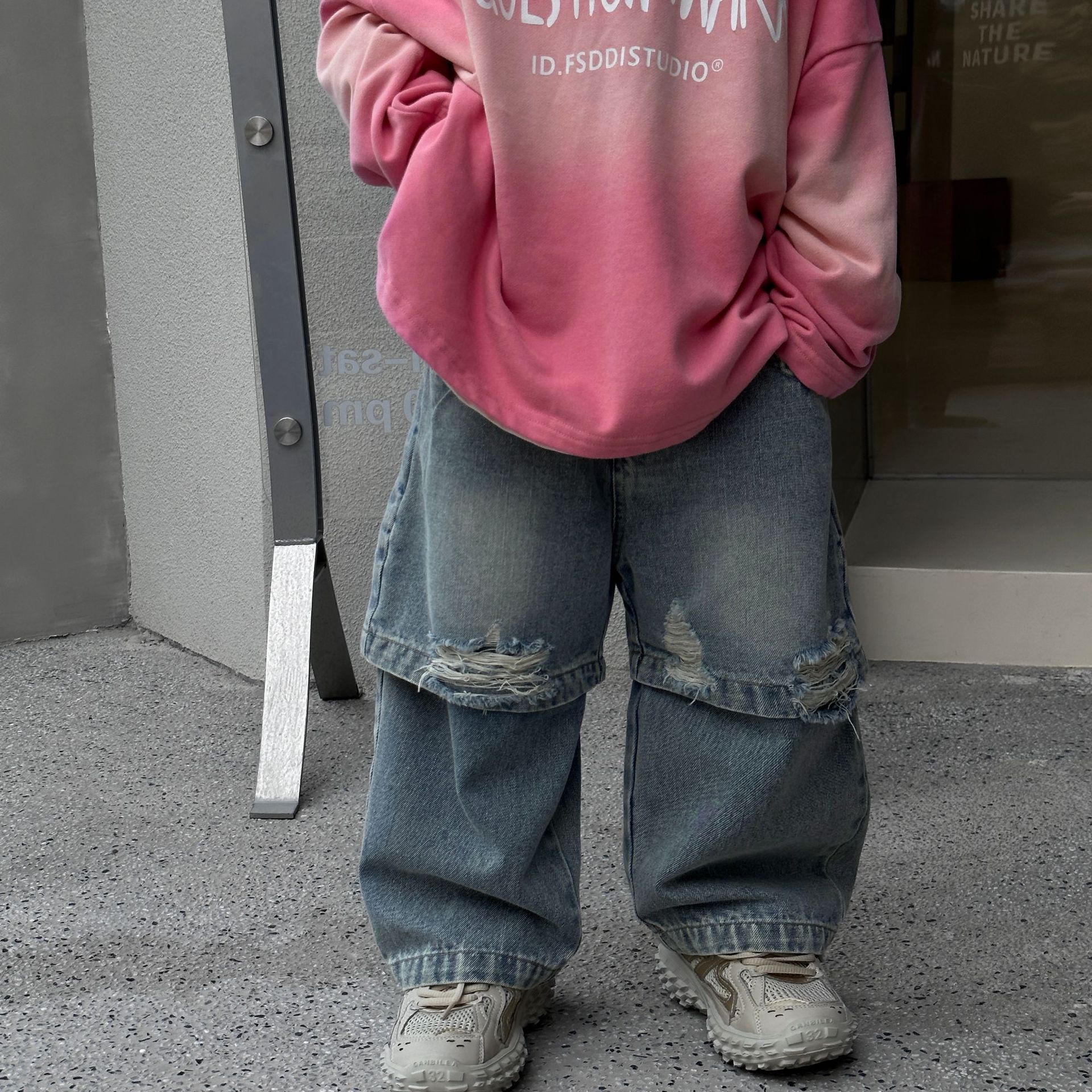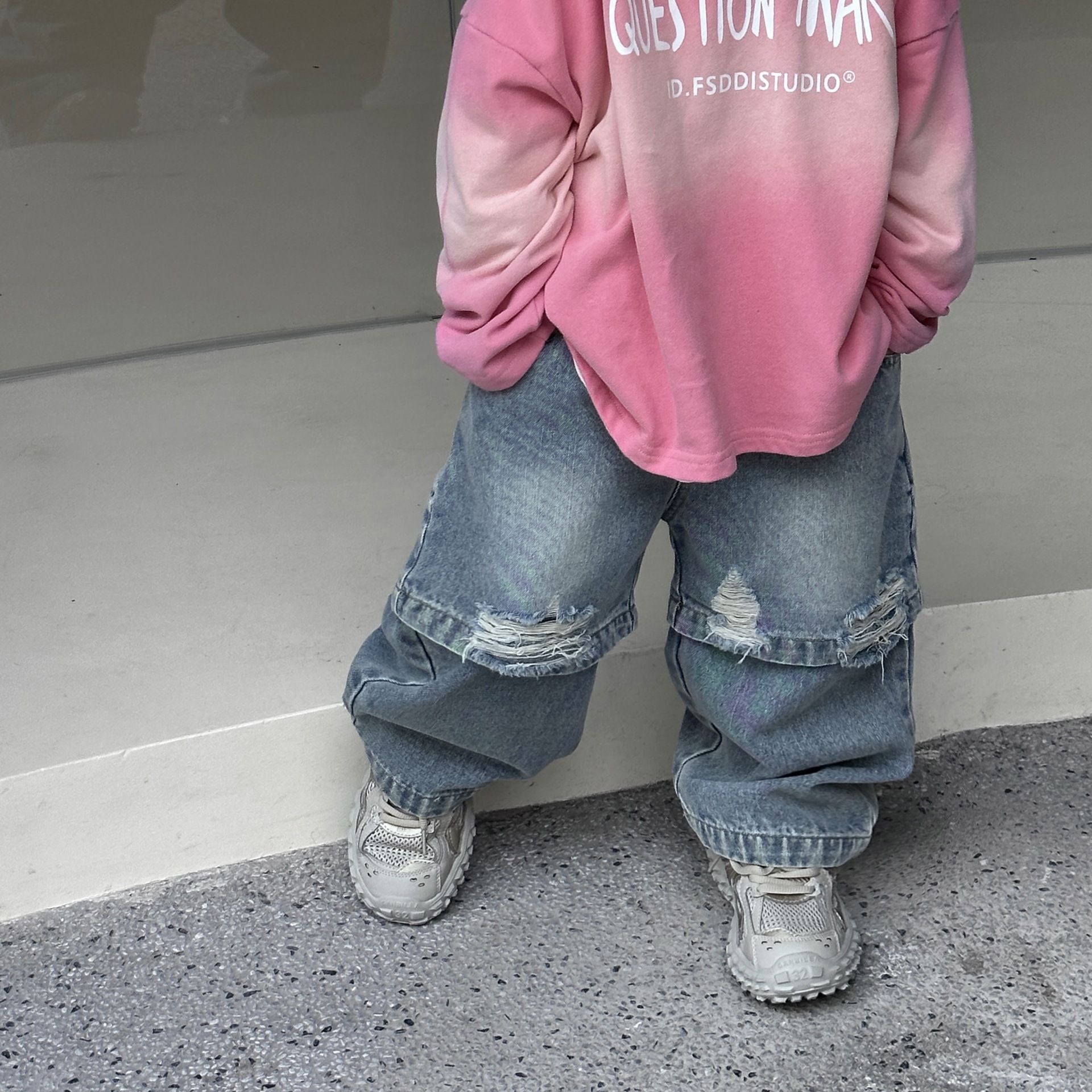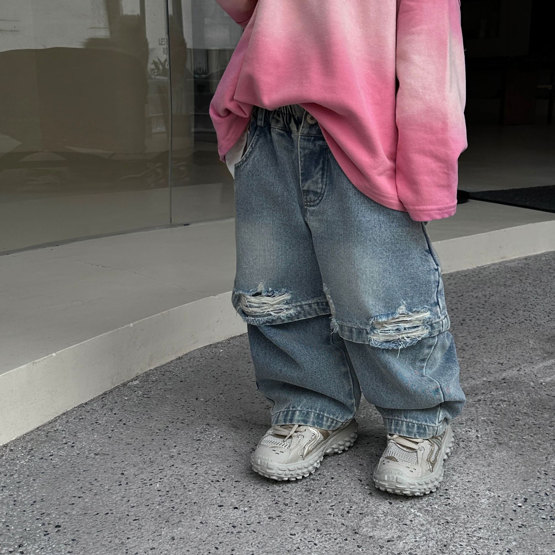 트렌디 한 어린이 2024 봄과 가을 뉴 보이즈의 성격 패션 가짜 투피스 청바지 스트레이트 바지 바지스토어 가기