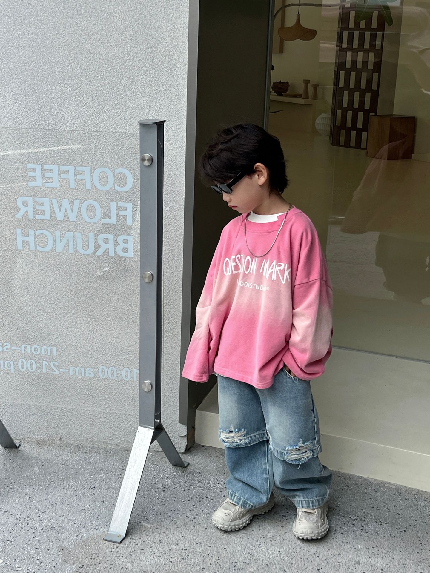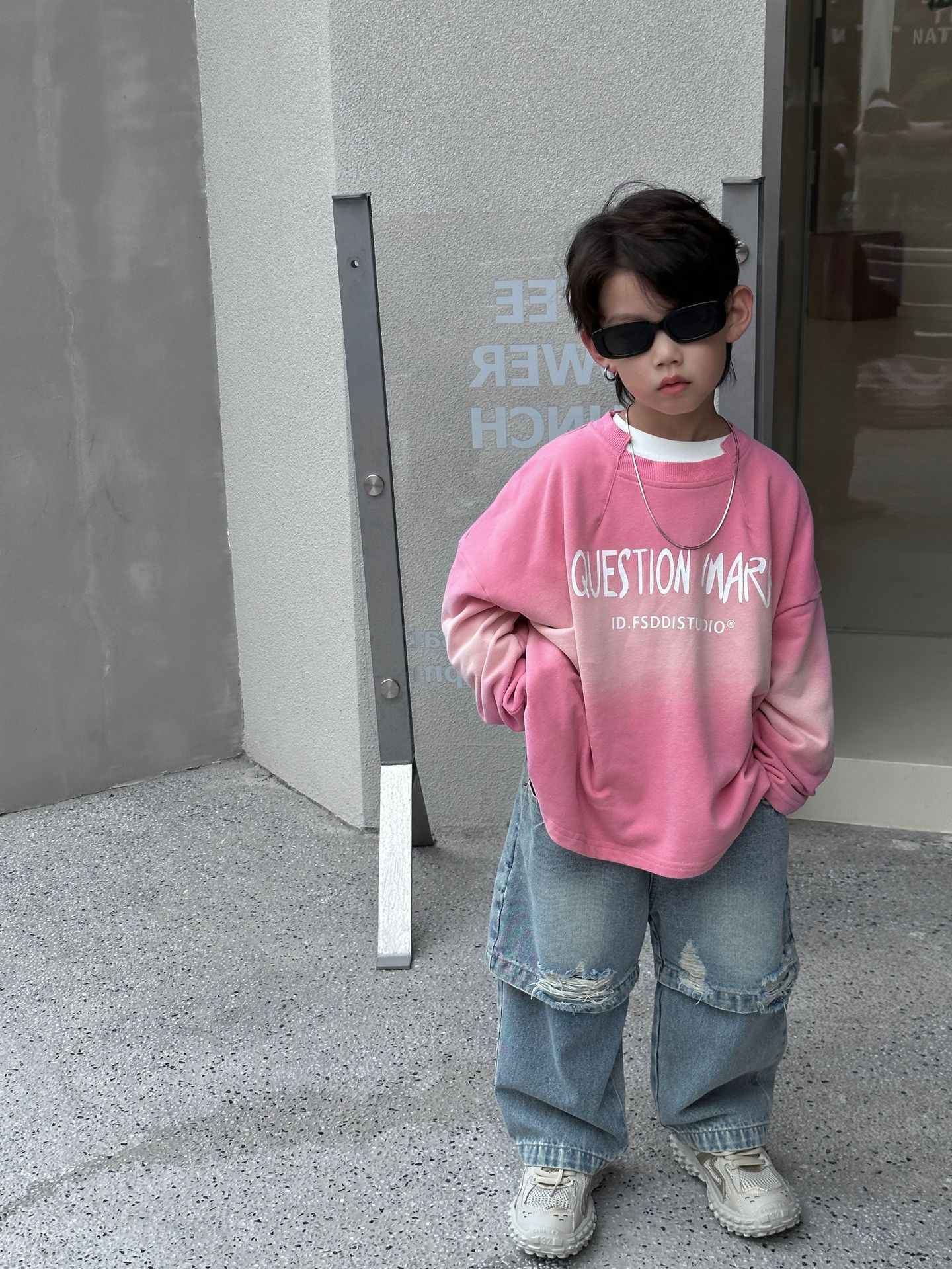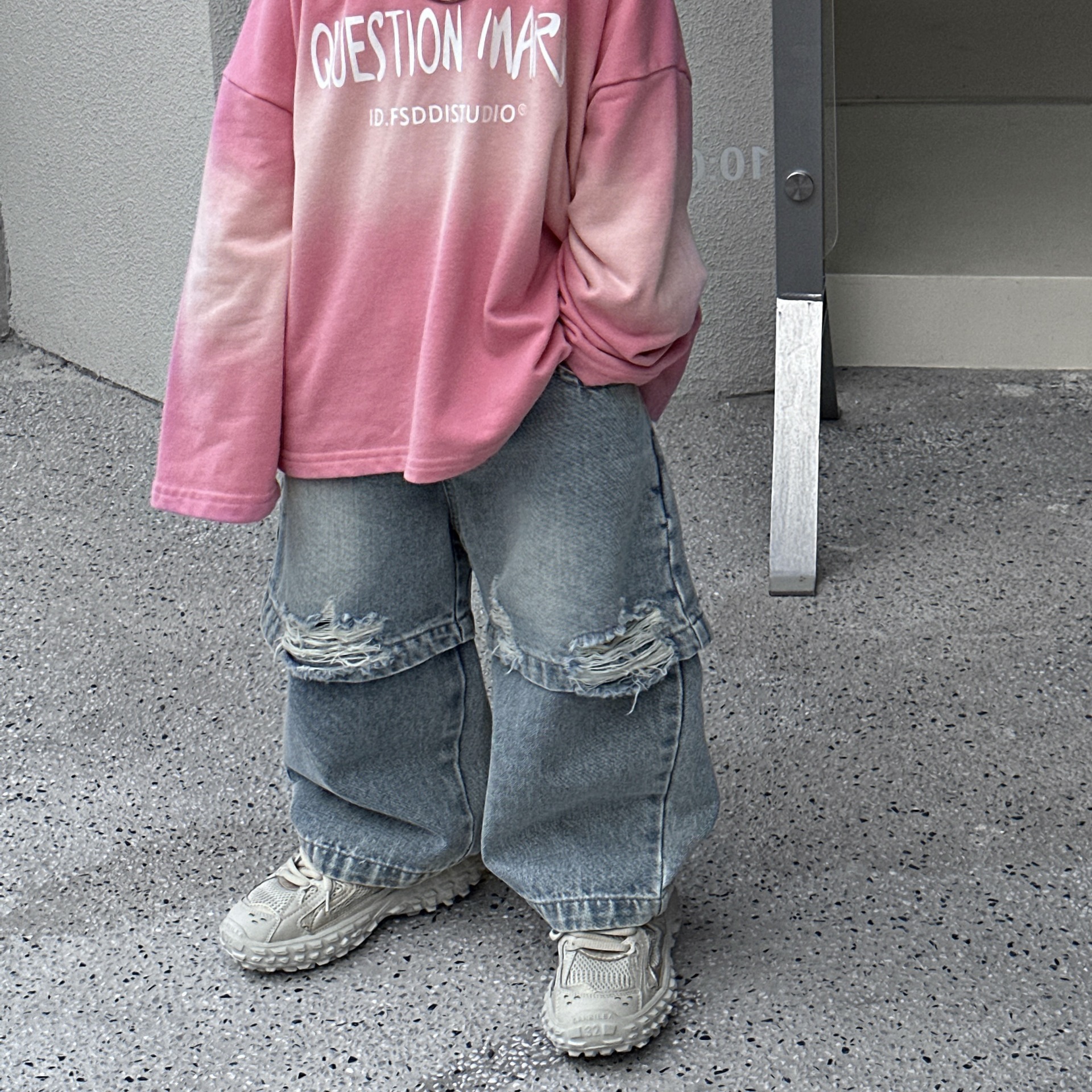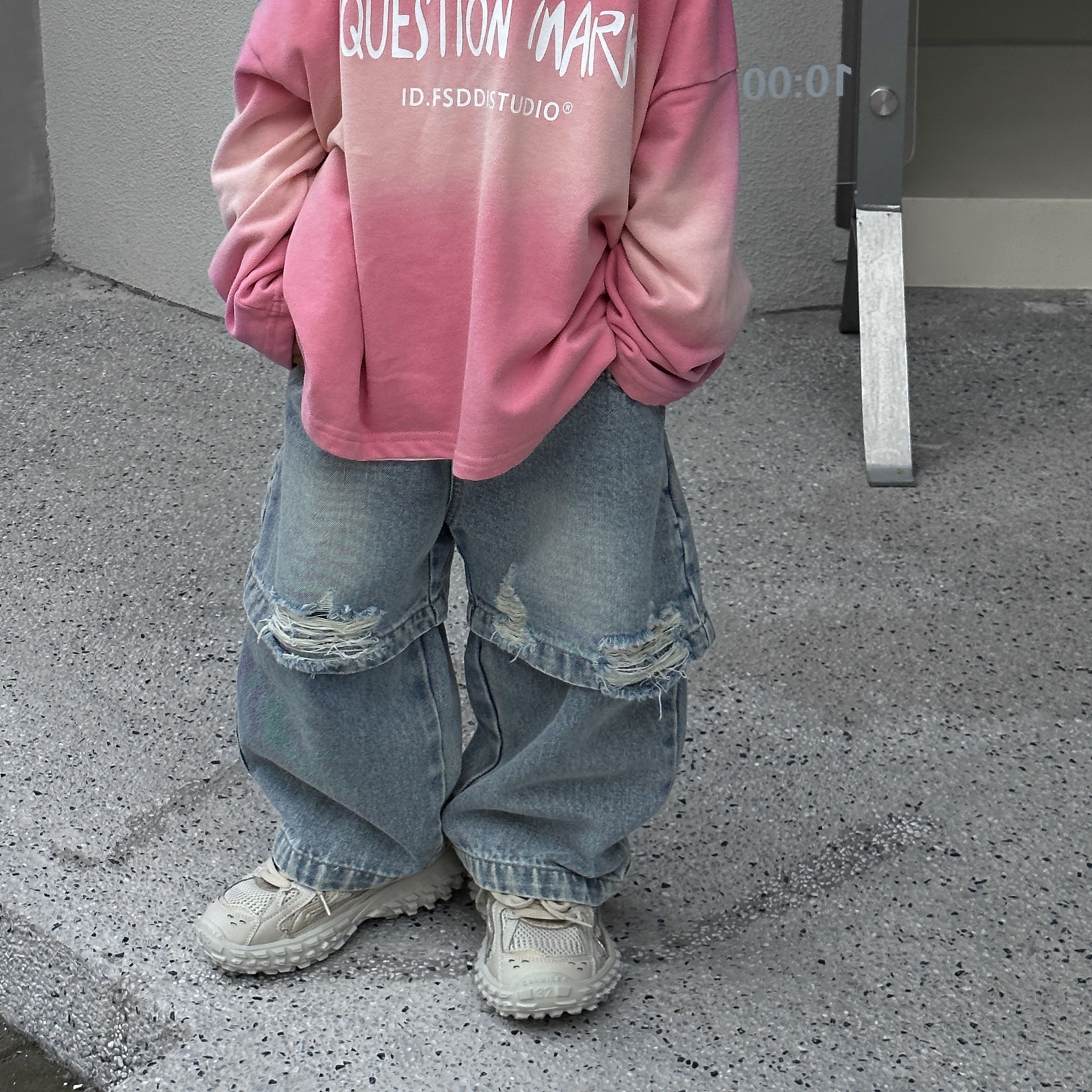 트렌디 한 어린이 2024 봄과 가을 뉴 보이즈의 성격 패션 가짜 투피스 청바지 스트레이트 바지 바지스토어 가기