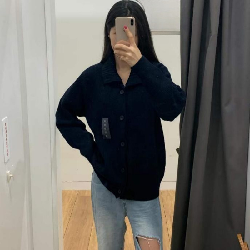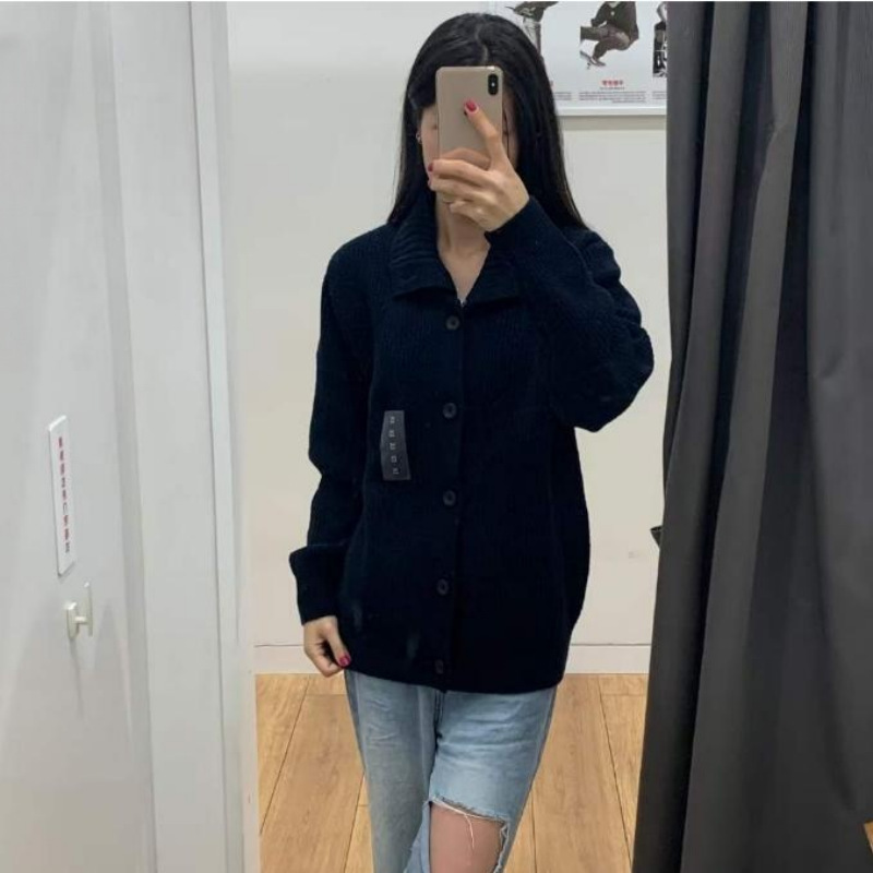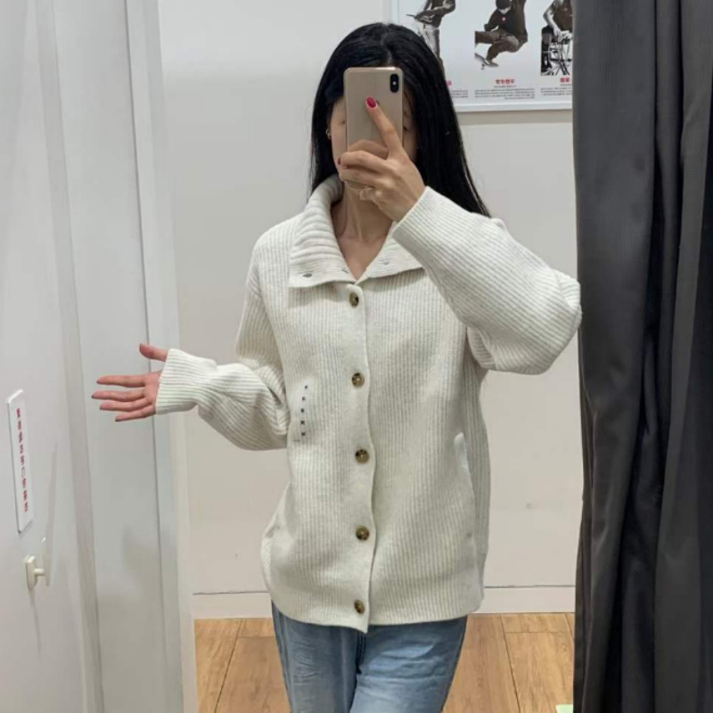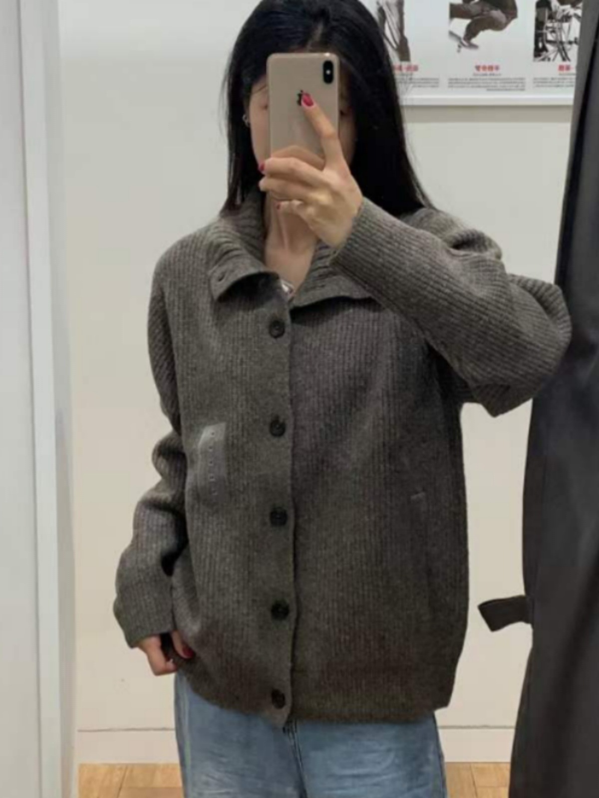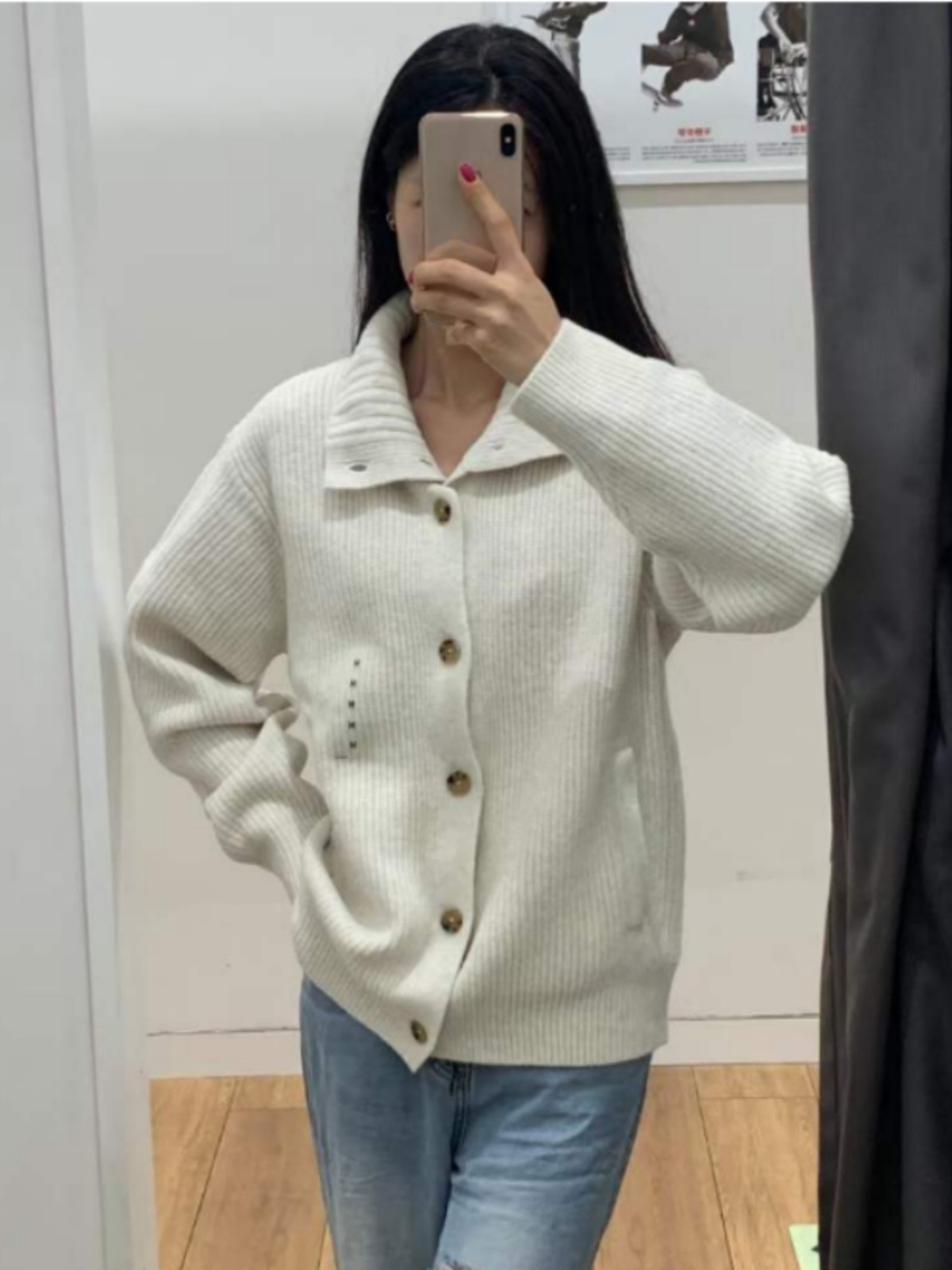 피팅 룸 가을과 겨울 새로운 여성용 니트 가디건 게으른 스타일 느슨한 Shufulei 스웨터 코트 461407스토어 가기