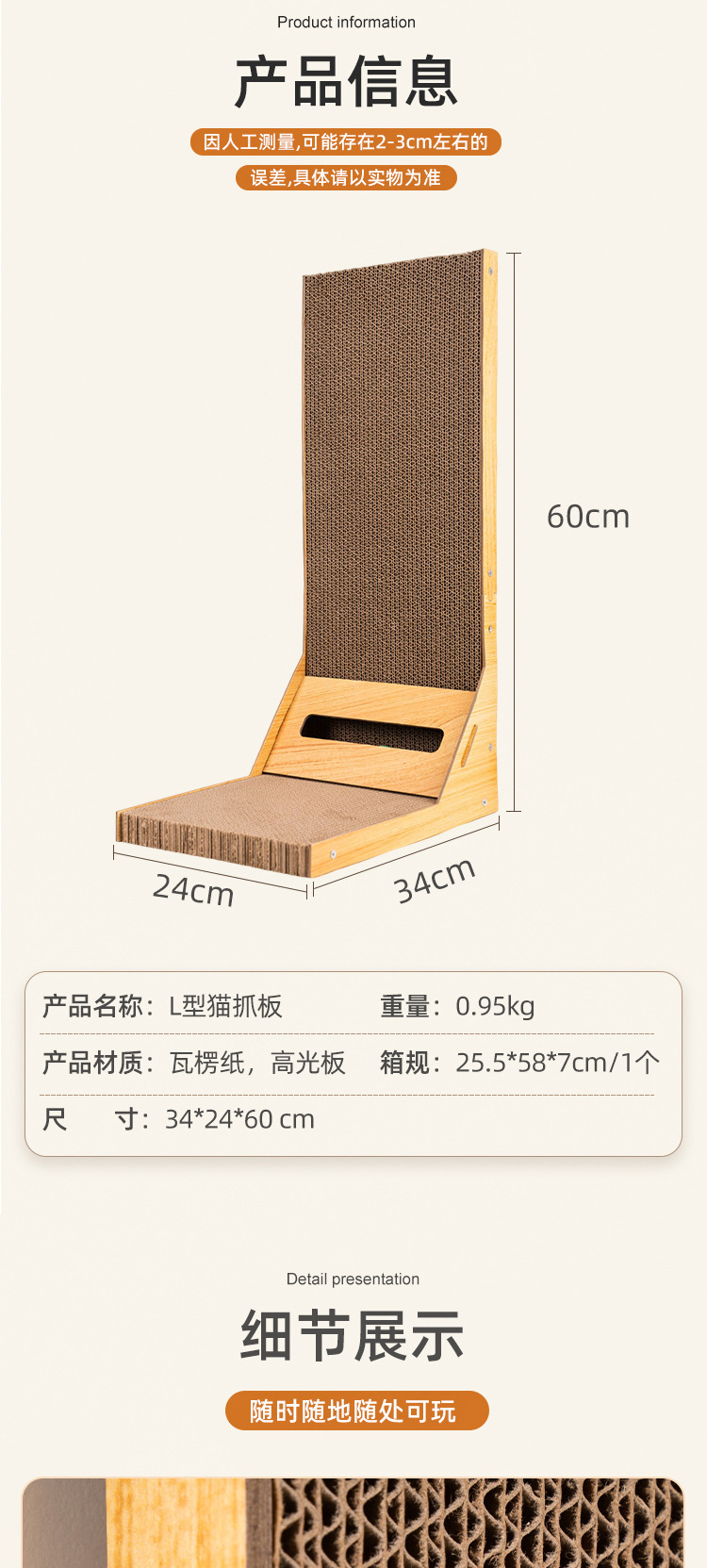 고양이 스크래치 보드 수직 내마모성 공 고양이 공급 잠자는 L 자형 골판지 비 칩 연삭 발톱 장난감스토어 가기