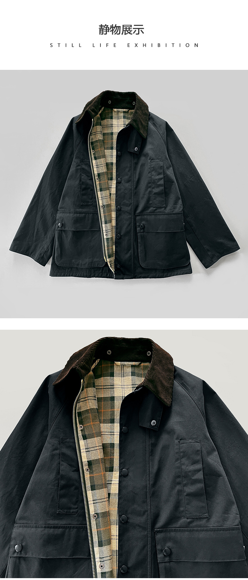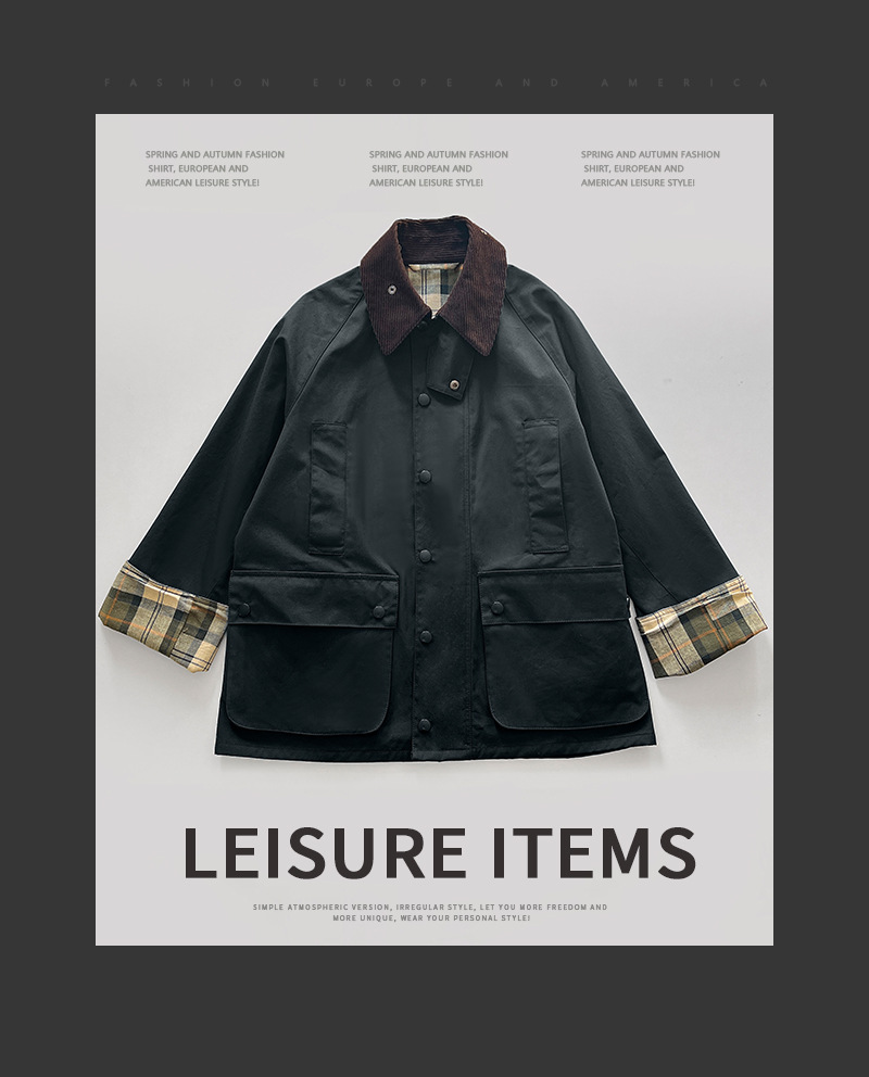 여성용~ 왁스 없는 카라 디자인 다중 포켓 아웃도어 루즈핏 재킷 레트로 빈티지 분위기의 스플라이싱 코트스토어 가기