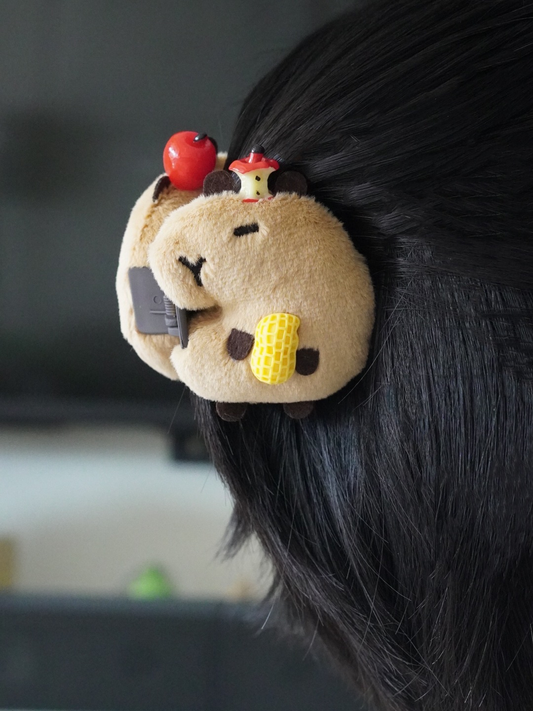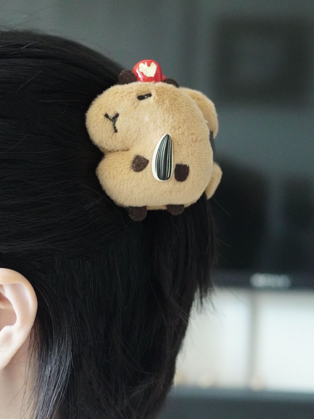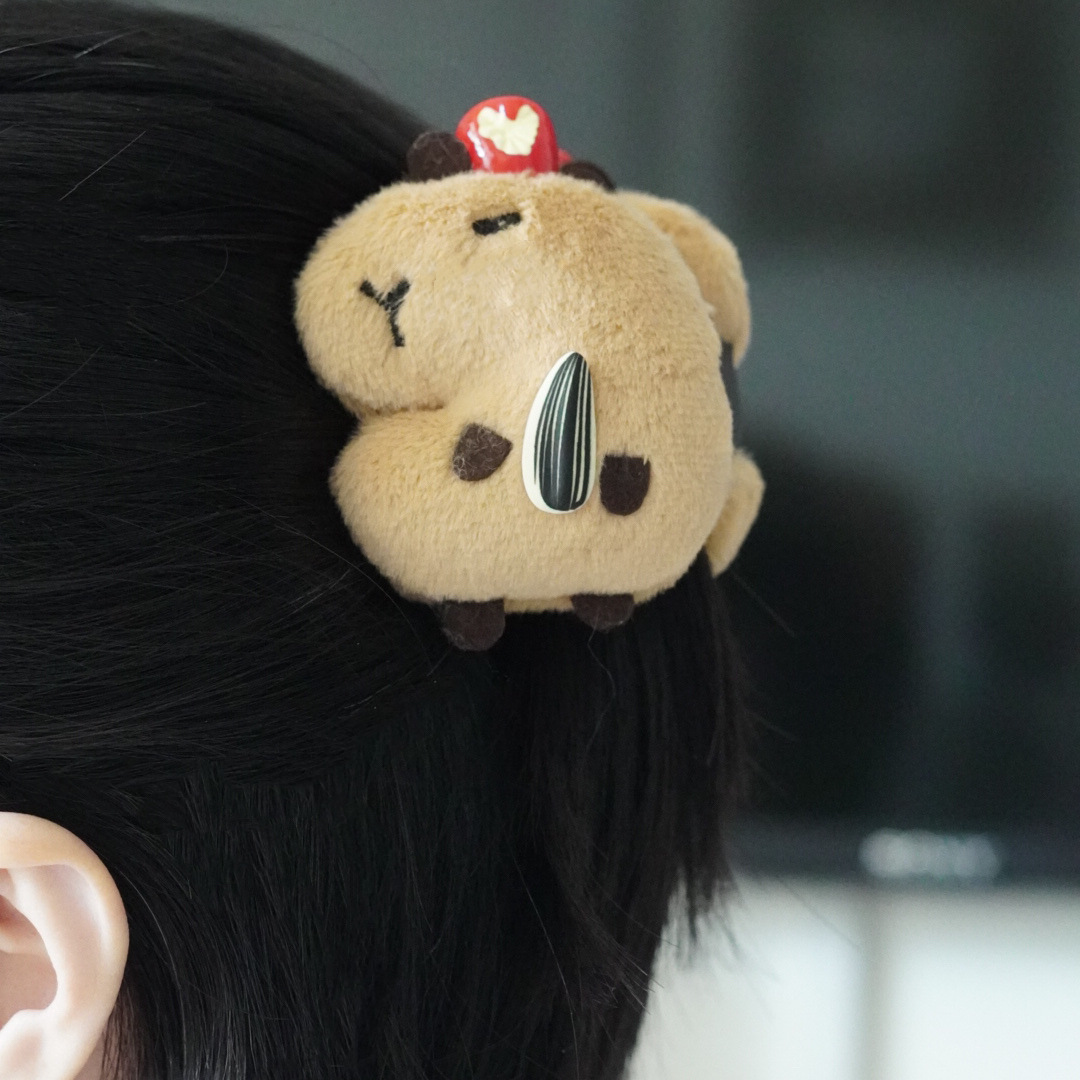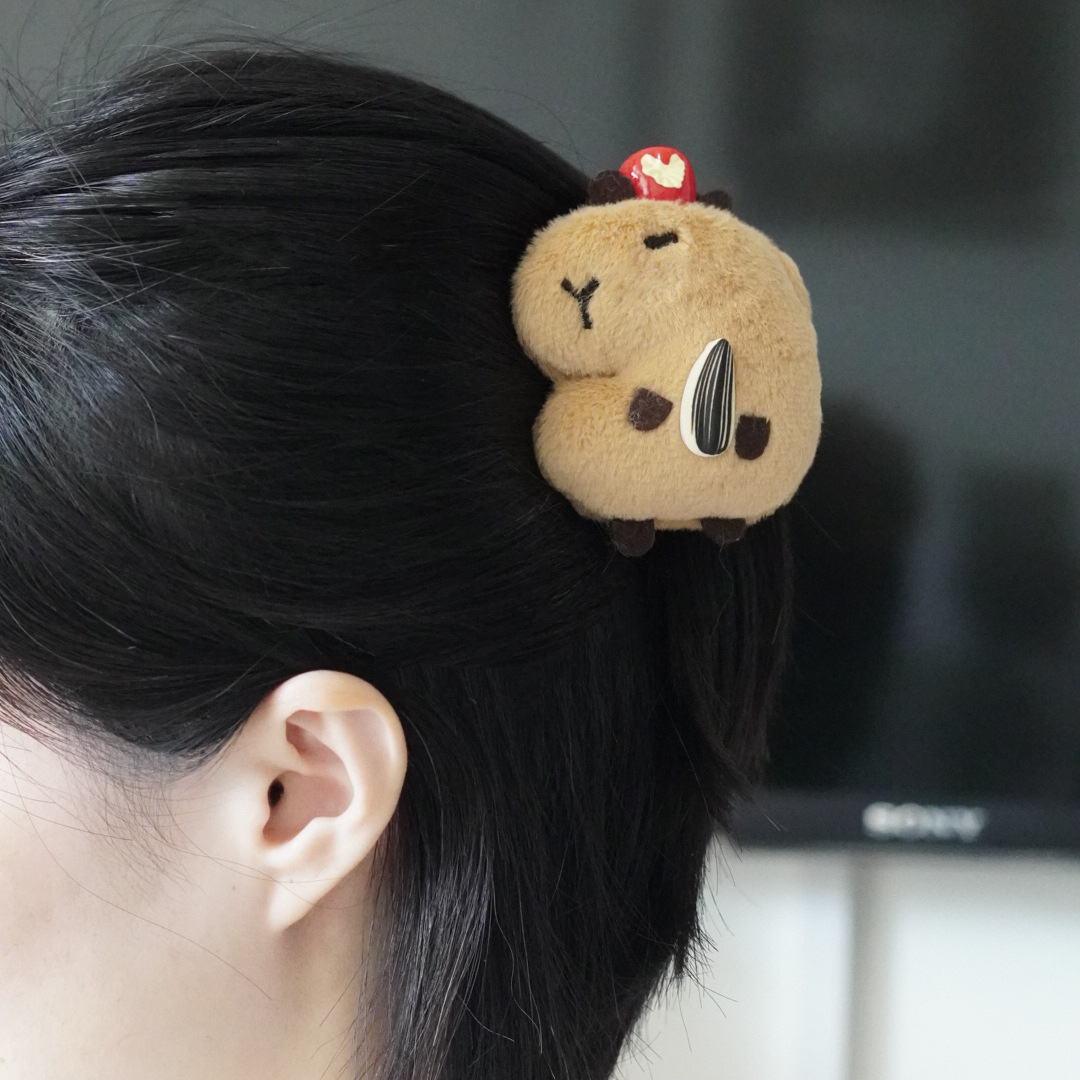 빨간 책 같은 스타일 ~ Capibala 귀여운 만화 봉제 Capybara 하프 그립 헤드 상어 클립 헤어 액세서리 여성스토어 가기
