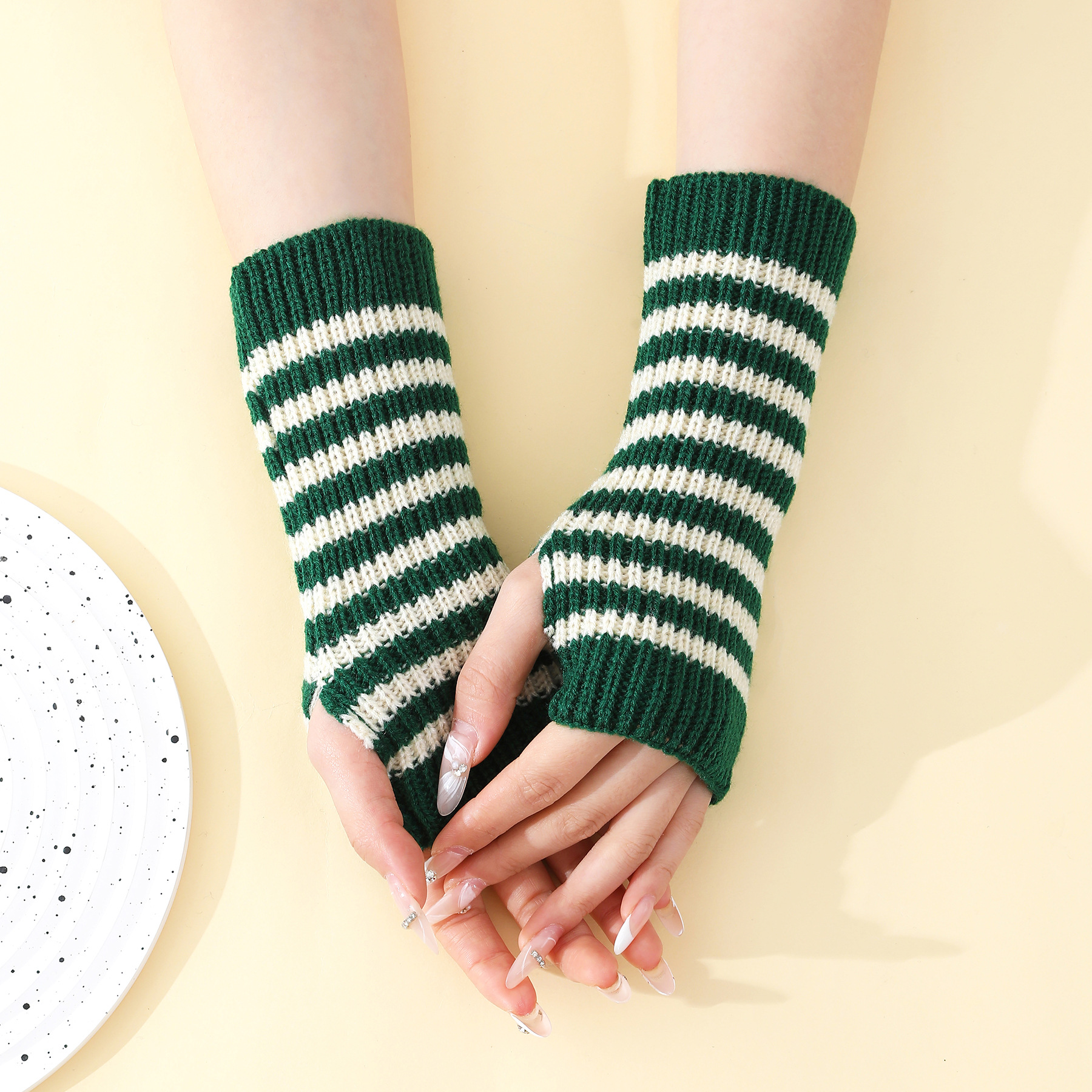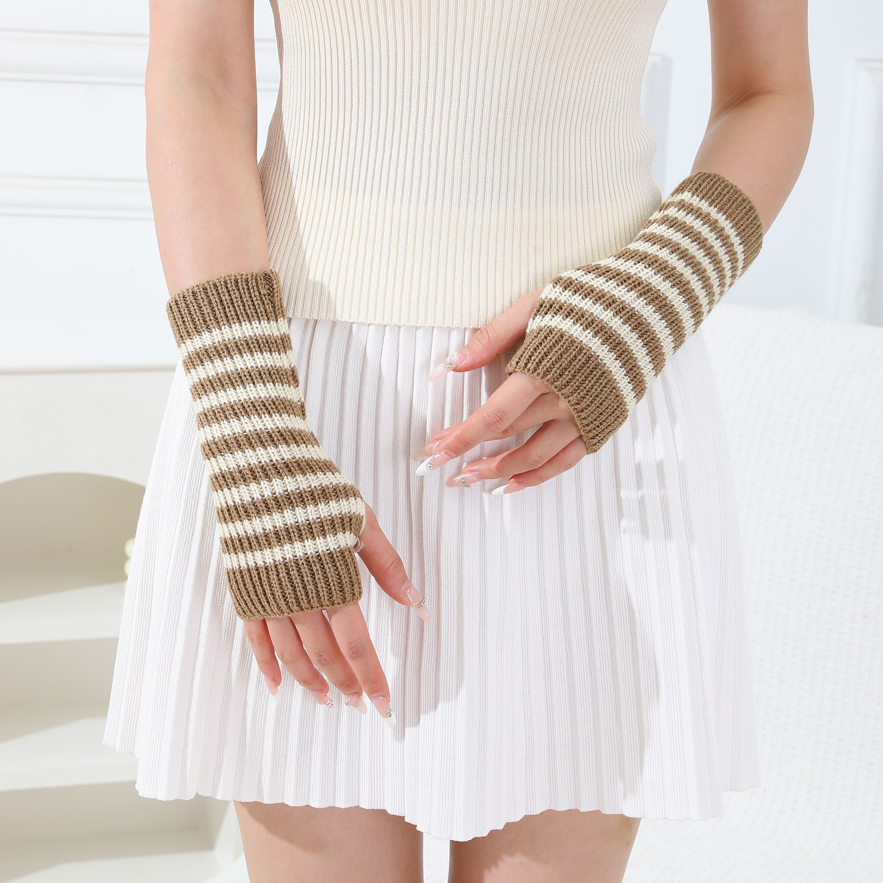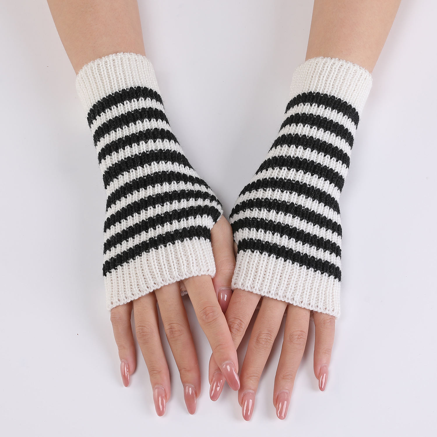 G198 짧은 스타일 배색 얇은 스트립 장갑 여성용 가을 겨울 니트 울 소매 따뜻하고 방한 패션 오픈 핑거 암 슬리브