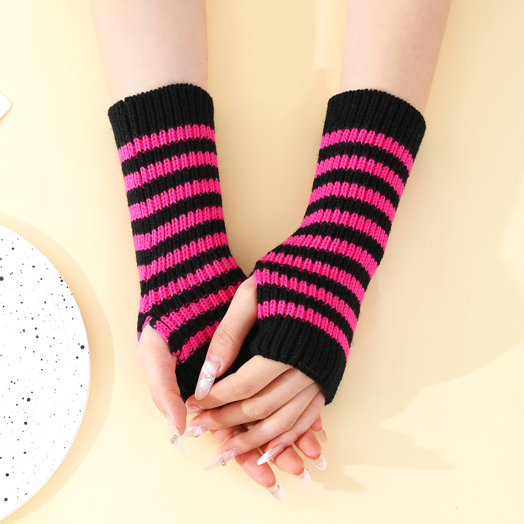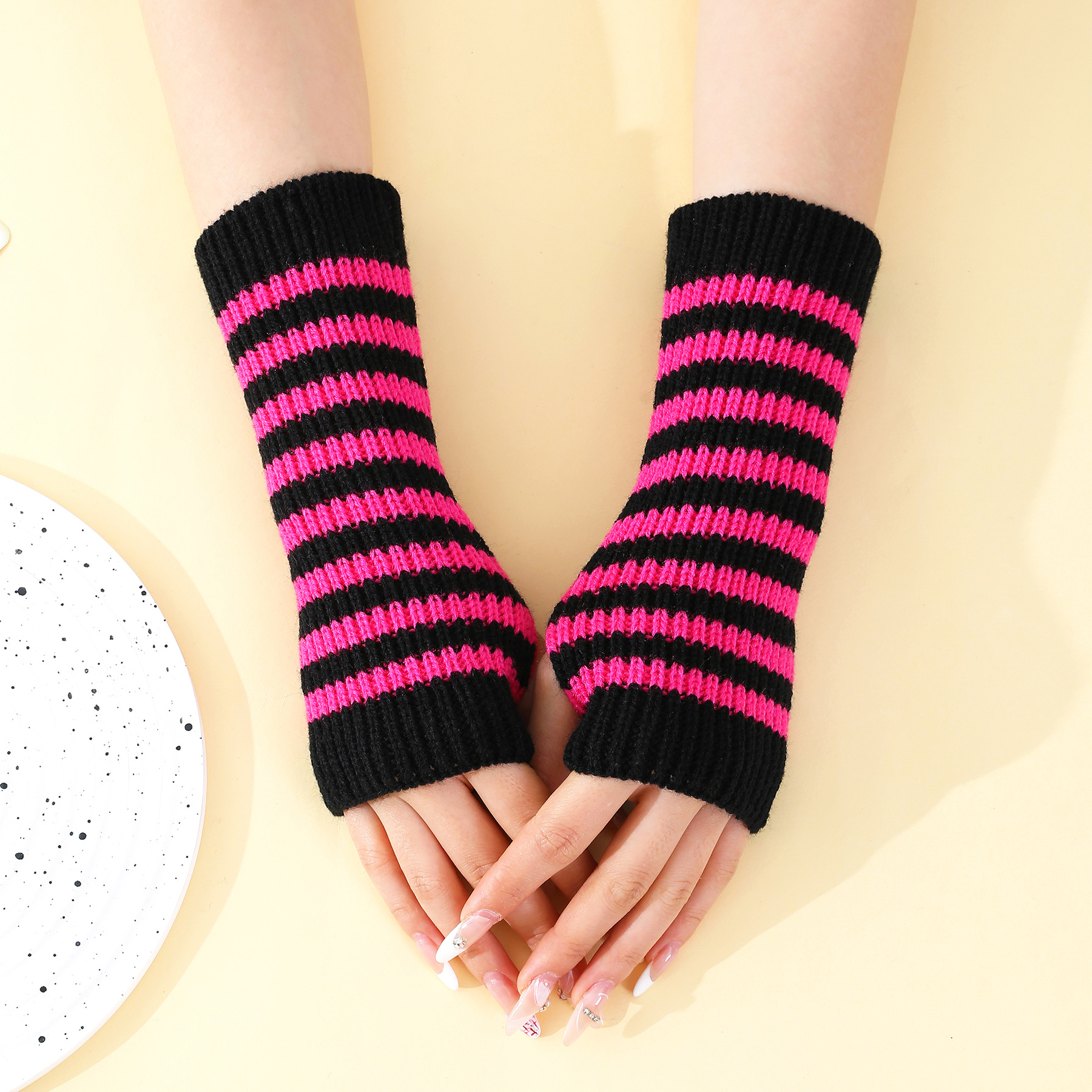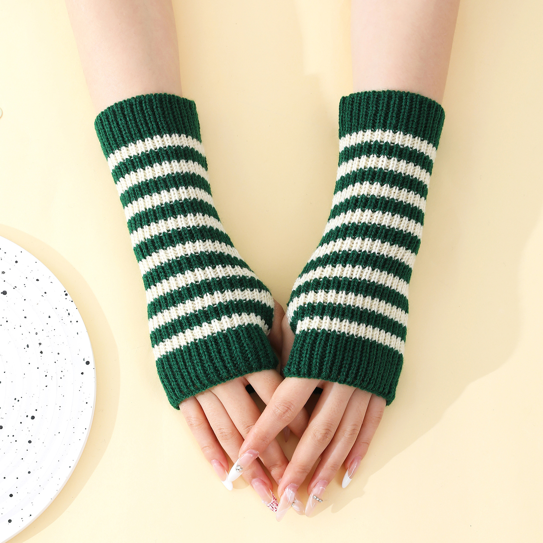 G198 짧은 스타일 배색 얇은 스트립 장갑 여성용 가을 겨울 니트 울 소매 따뜻하고 방한 패션 오픈 핑거 암 슬리브