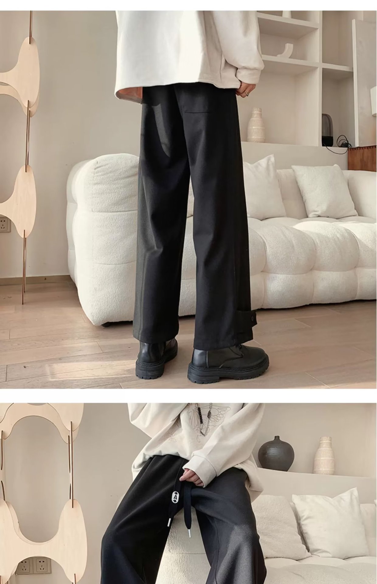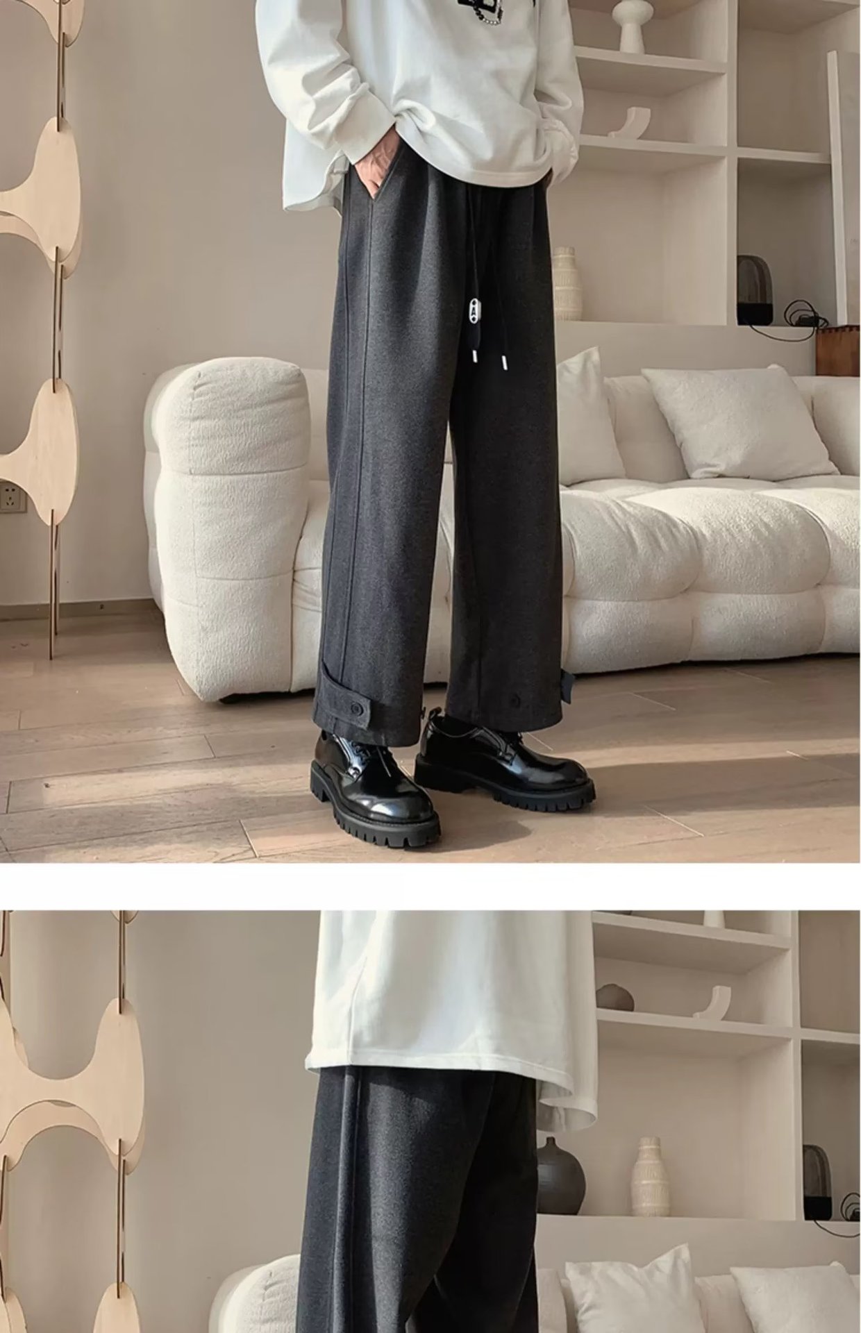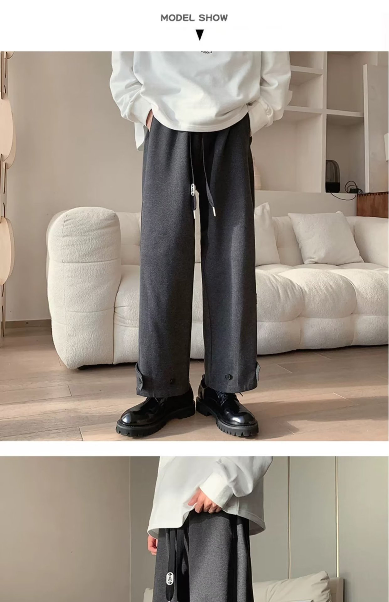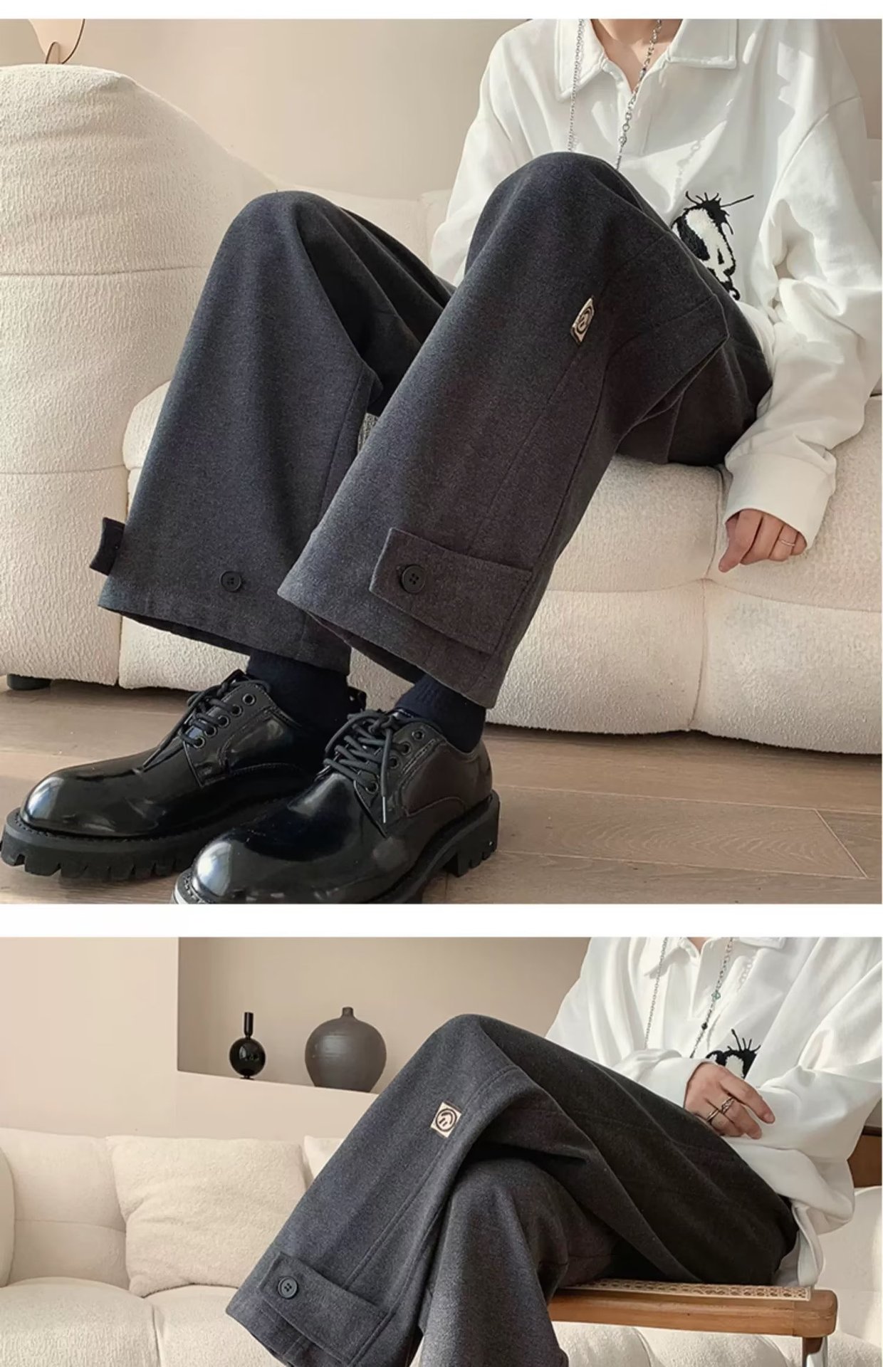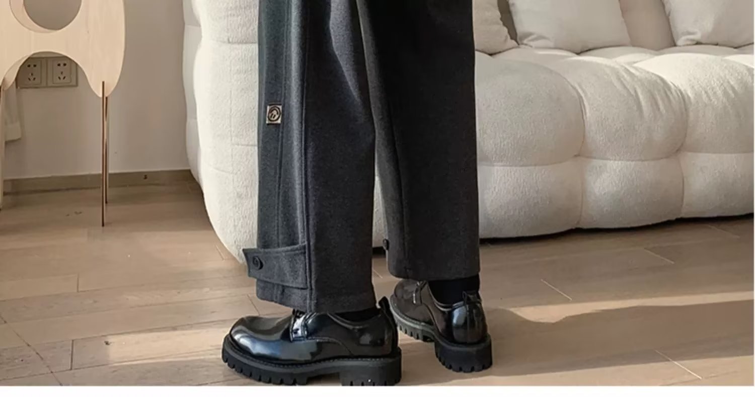 모직 바지 남자의 가을과 겨울 유행 브랜드 스트레이트 느슨한 플러스 사이즈 크롭 캐주얼 바지와 마틴 부츠 바지스토어 가기