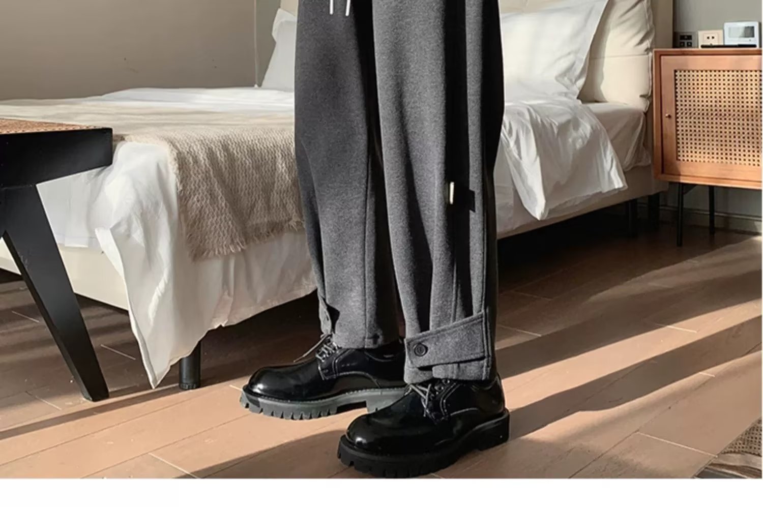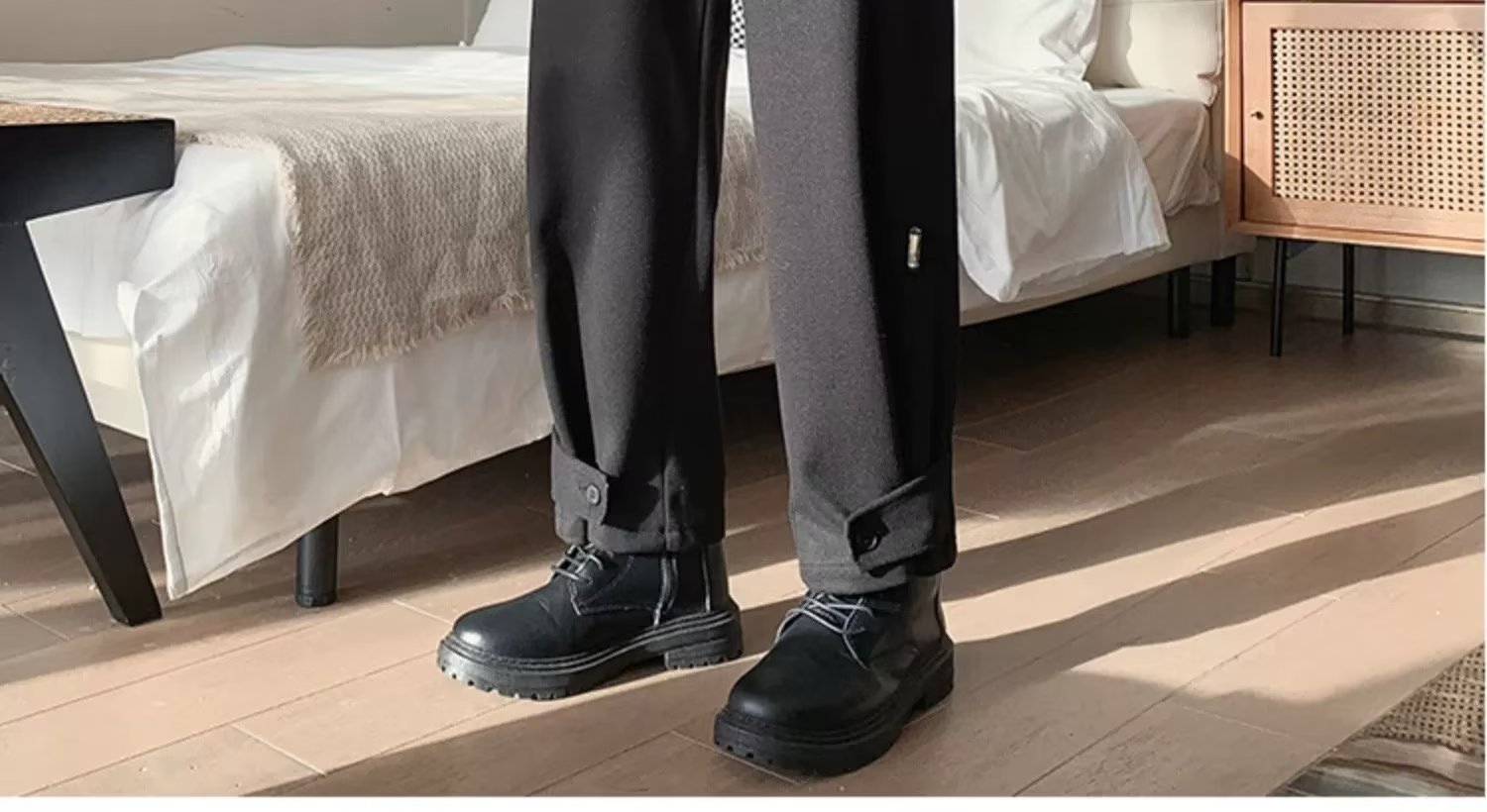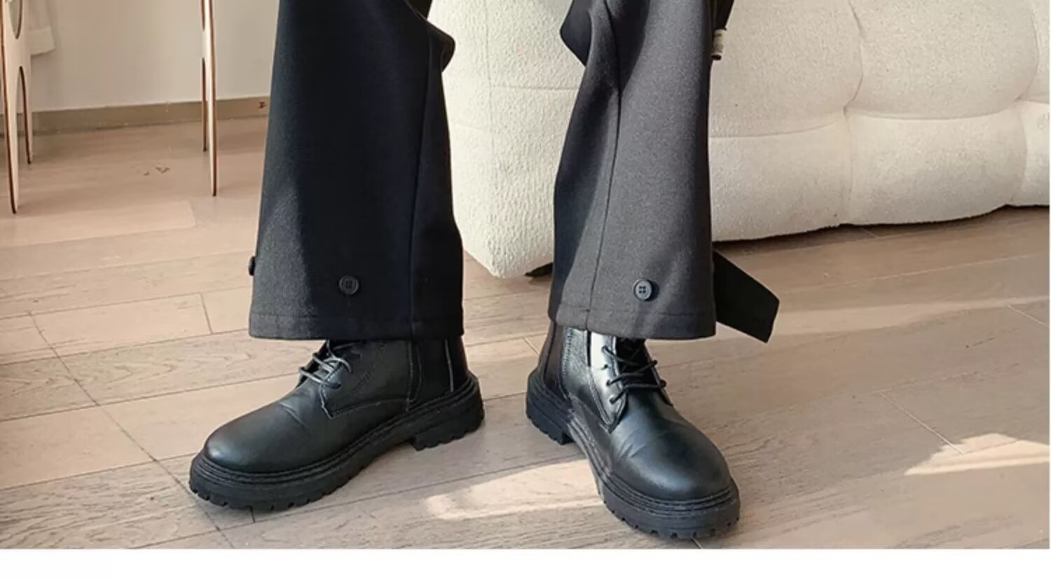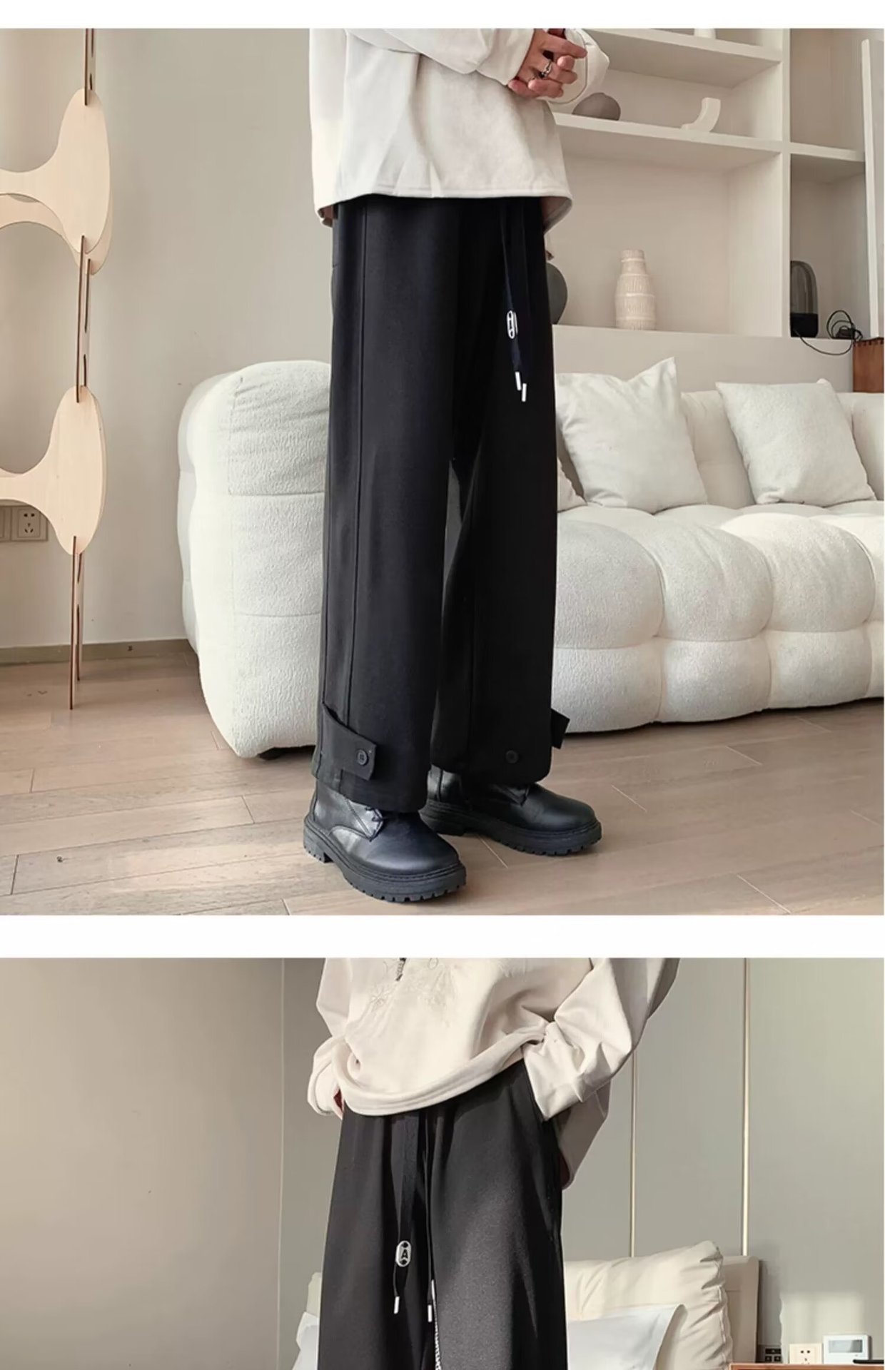 모직 바지 남자의 가을과 겨울 유행 브랜드 스트레이트 느슨한 플러스 사이즈 크롭 캐주얼 바지와 마틴 부츠 바지스토어 가기