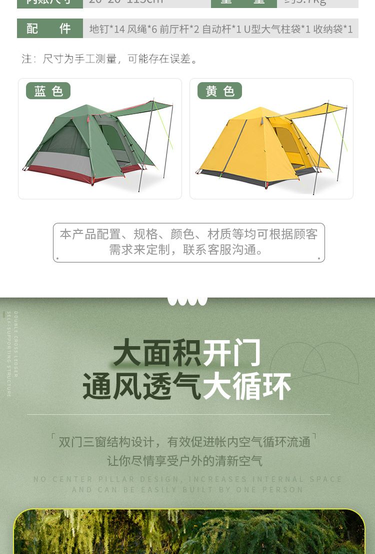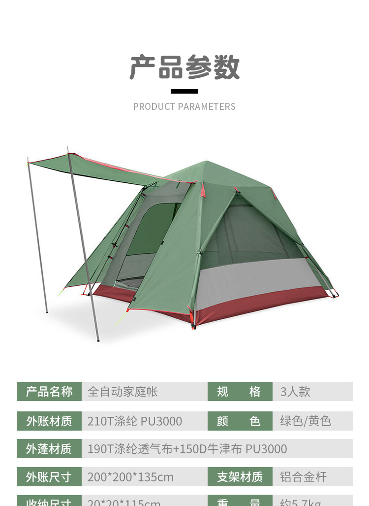 [재고] 자동 텐트 알루미늄 폴 텐트 3 인 캐빈 야외 캠핑 양산 방수 캐노피 라이트 텐트스토어 가기