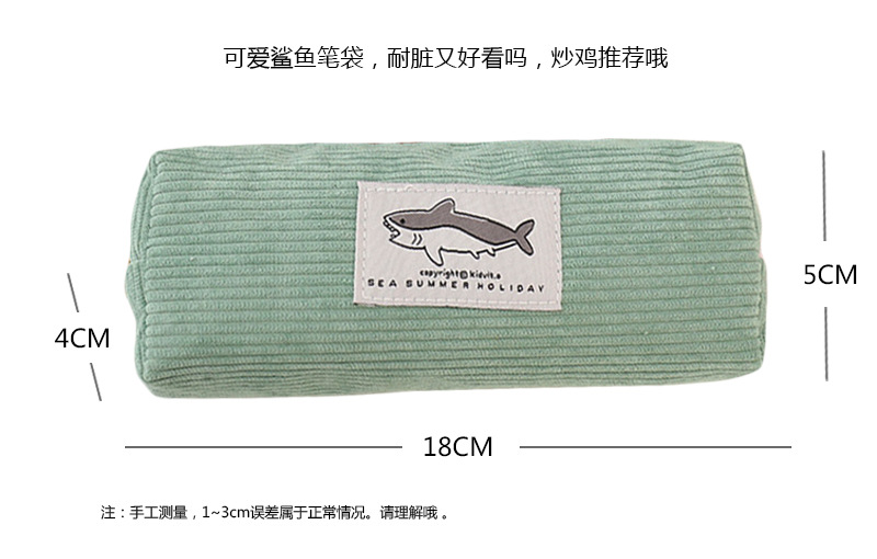 작은 빨간 책 같은 상어 자수 코듀로이 연필 가방 한국 스타일 더러운 저항하는 학생 대용량 문구 가방 연필 가방
