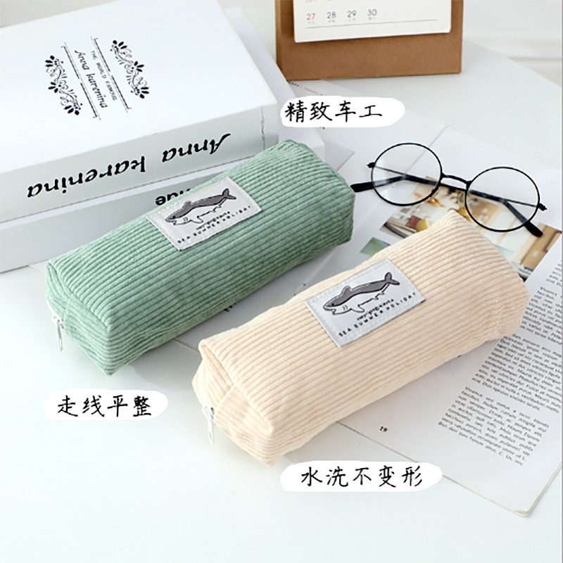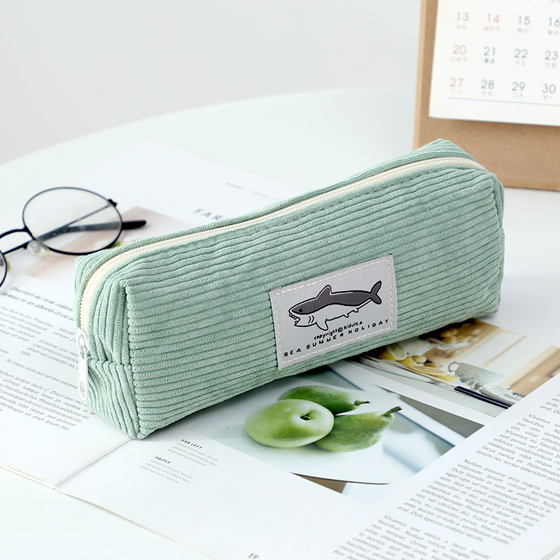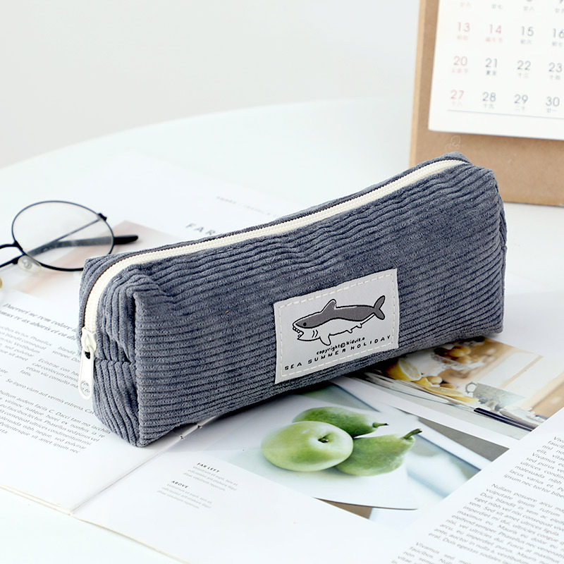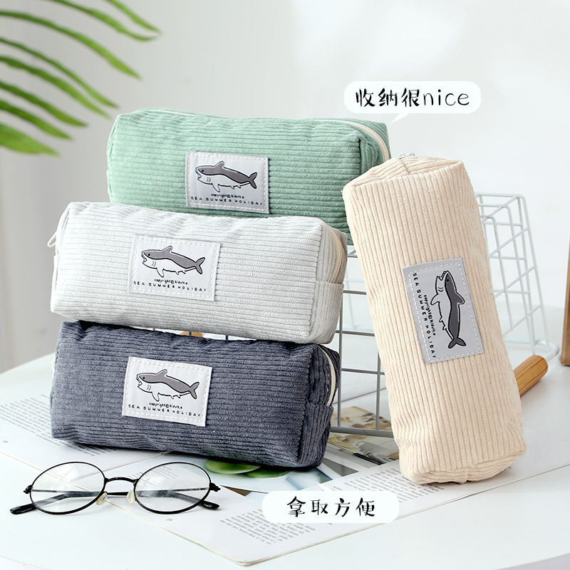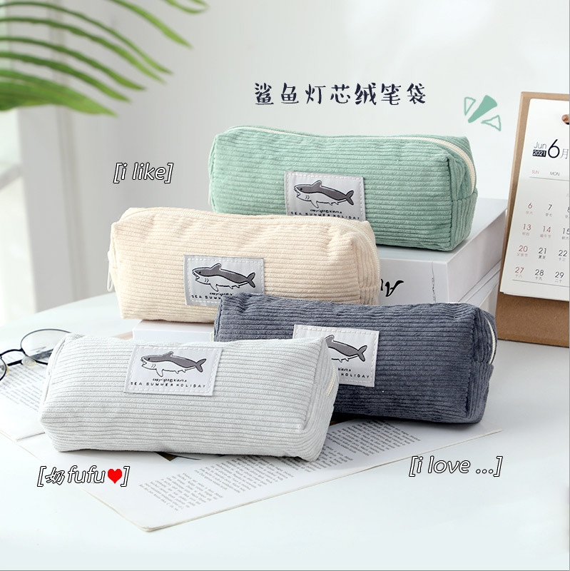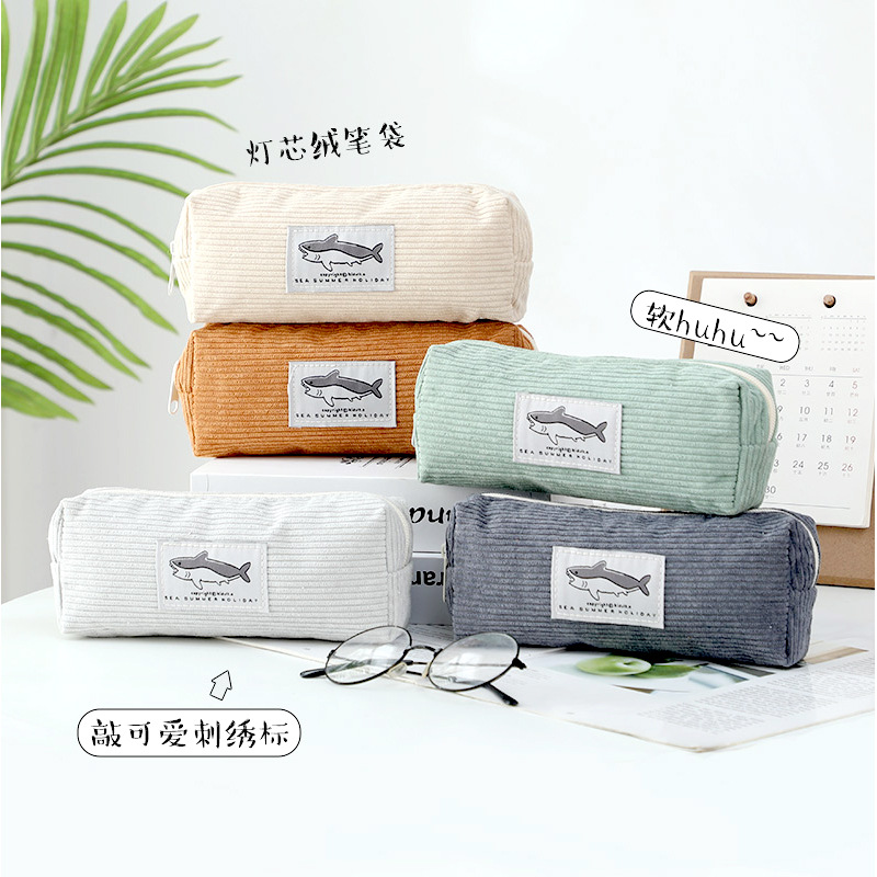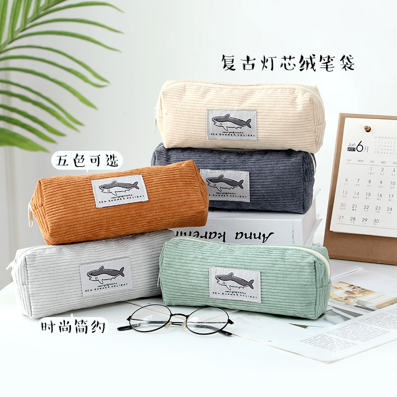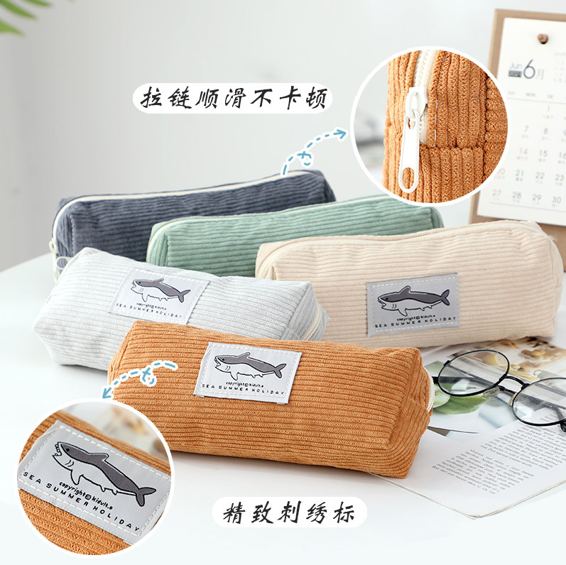작은 빨간 책 같은 상어 자수 코듀로이 연필 가방 한국 스타일 더러운 저항하는 학생 대용량 문구 가방 연필 가방스토어 가기
