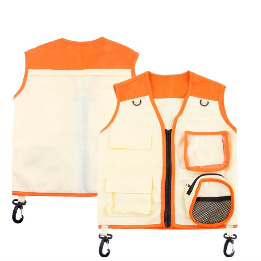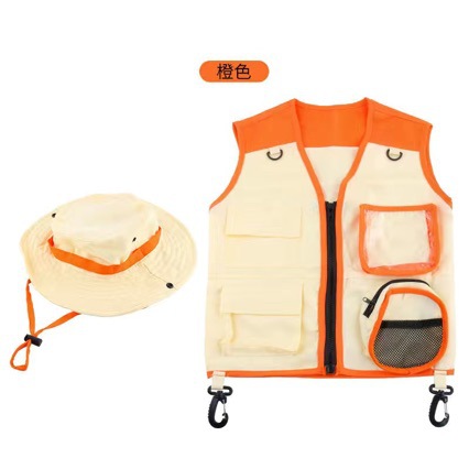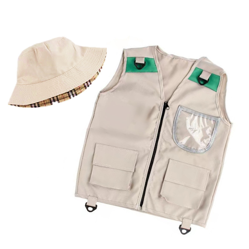 아마존 뜨거운 판매 어린이 야외 탐험가 의류 조끼 모자 캠핑 장비 역할극 인쇄 로고스토어 가기