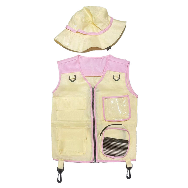 아마존 뜨거운 판매 어린이 야외 탐험가 의류 조끼 모자 캠핑 장비 역할극 인쇄 로고