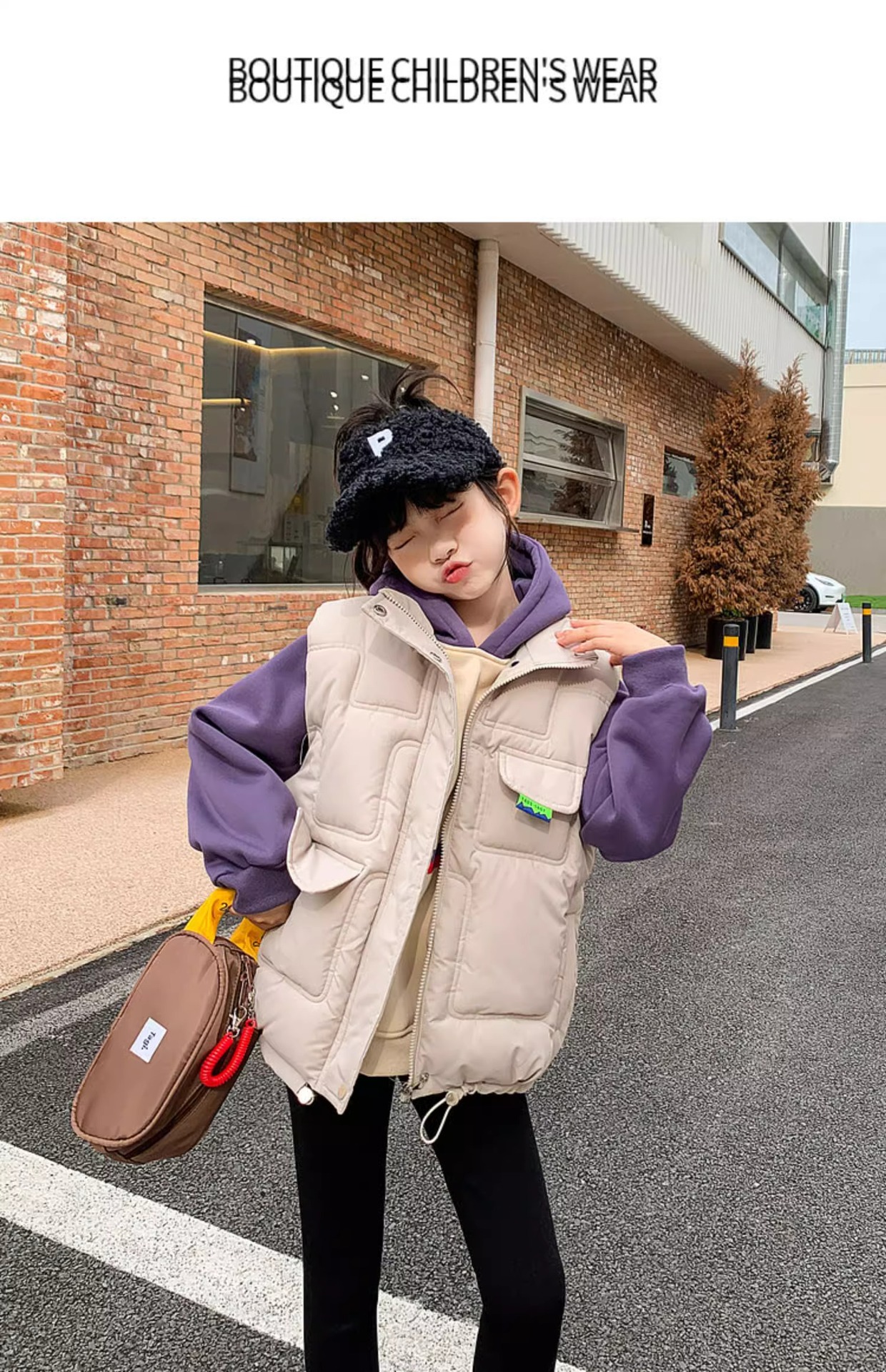 Girls Down 코튼 조끼 코트 가을과 겨울 2023 새로운 스타일 웨스턴 스타일 남성과 여성의 중간 및 큰 어린이 두꺼운 조끼 겉옷
