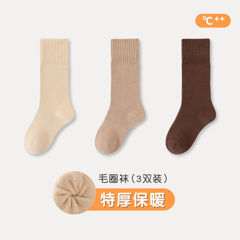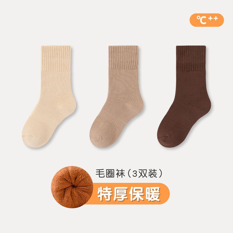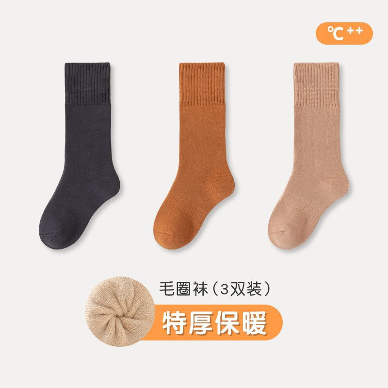 [3 쌍] 아동용 아기 양말 겨울 소년 소녀 테리 기모 두꺼운 따뜻한 모든 경기 튜브 양말
