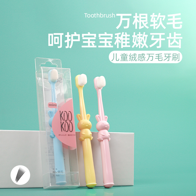 어린이 만 머리 칫솔 단일 팩 2-10 세 아기 만화 토끼 미세 부드러운 머리 칫솔 공장 도매