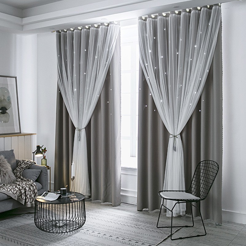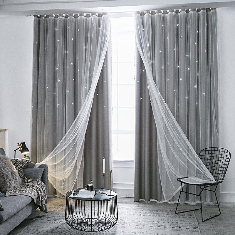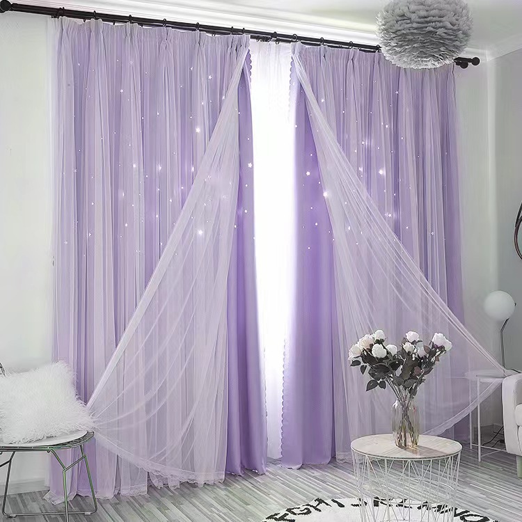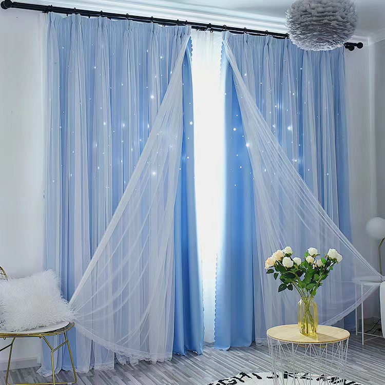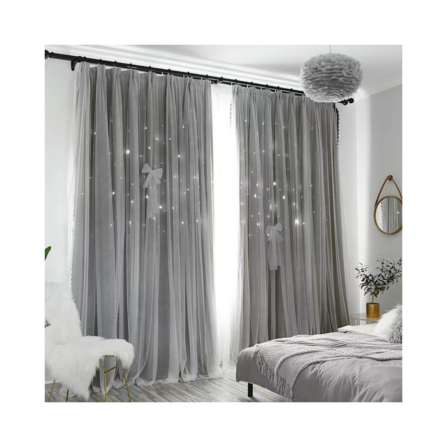 국경 간 아마존 판타지 패션 트렌드 중공 스타 천 원사 통합 완성 된 더블 레이어 커튼