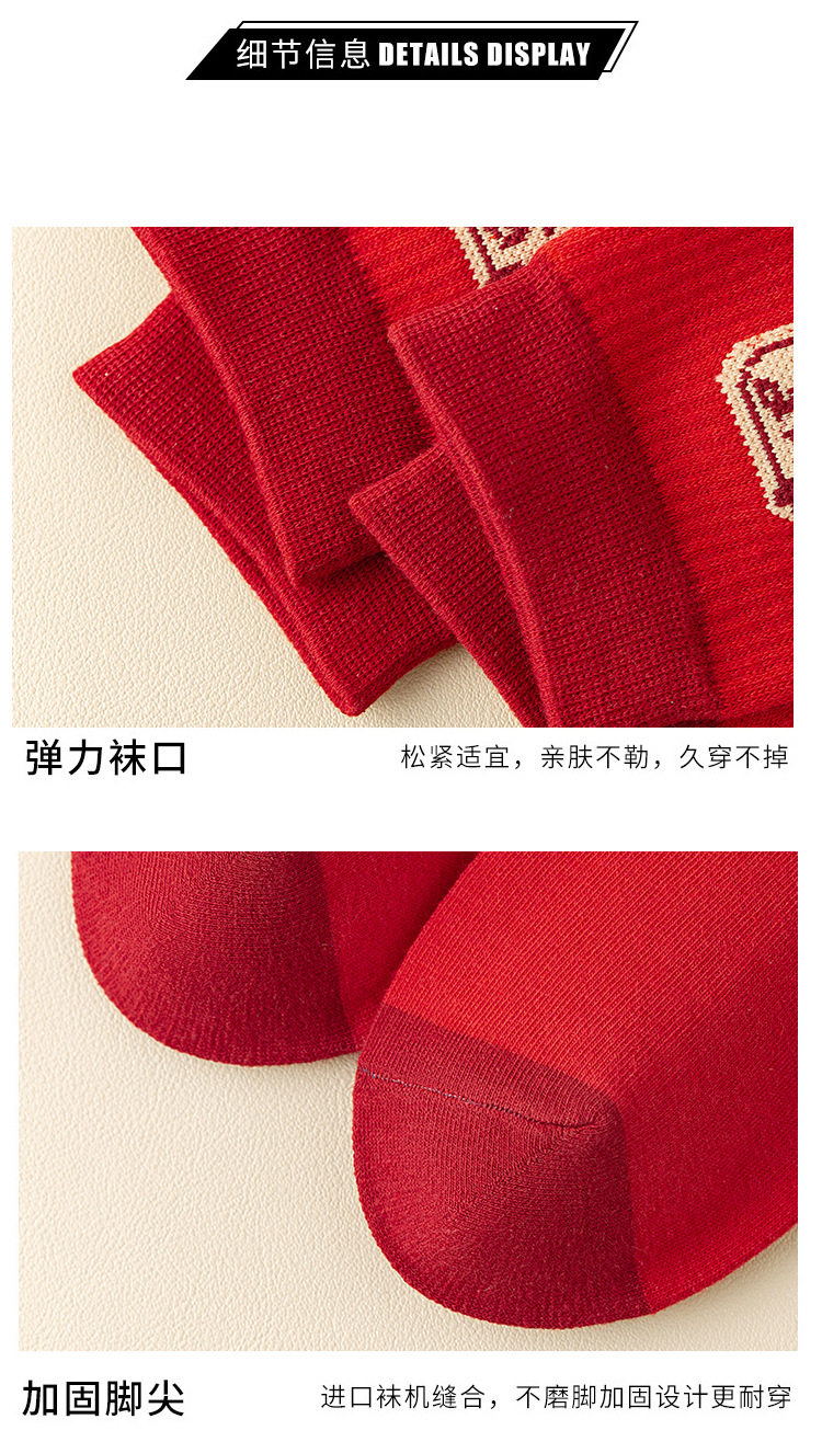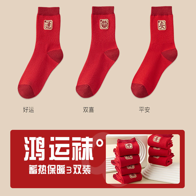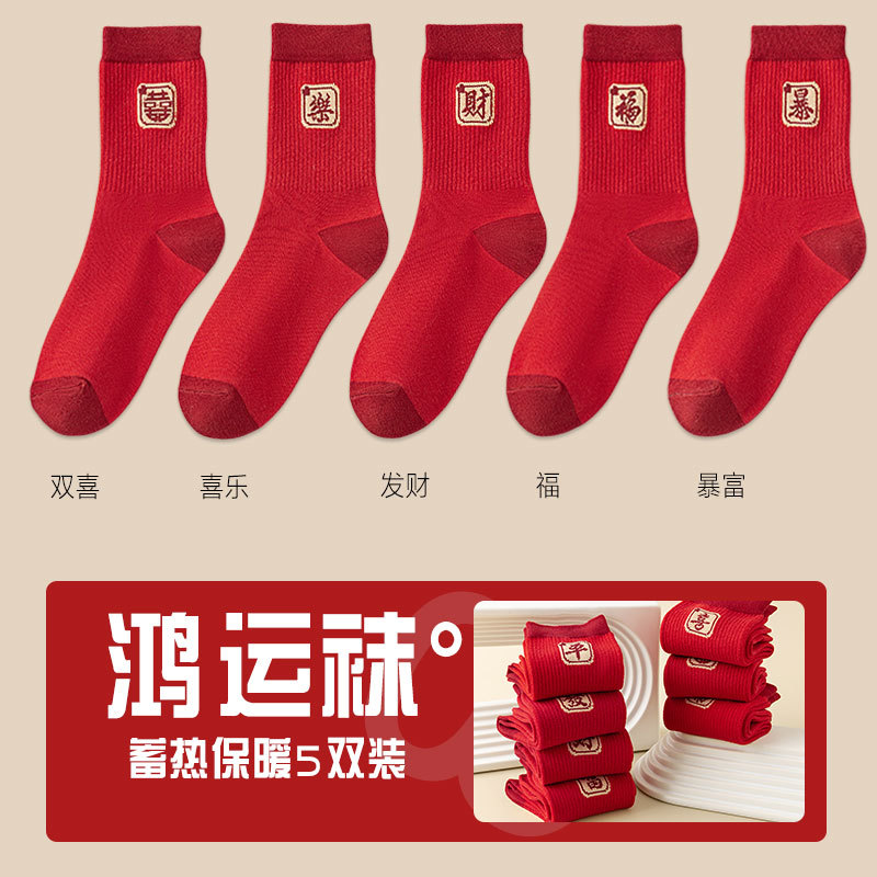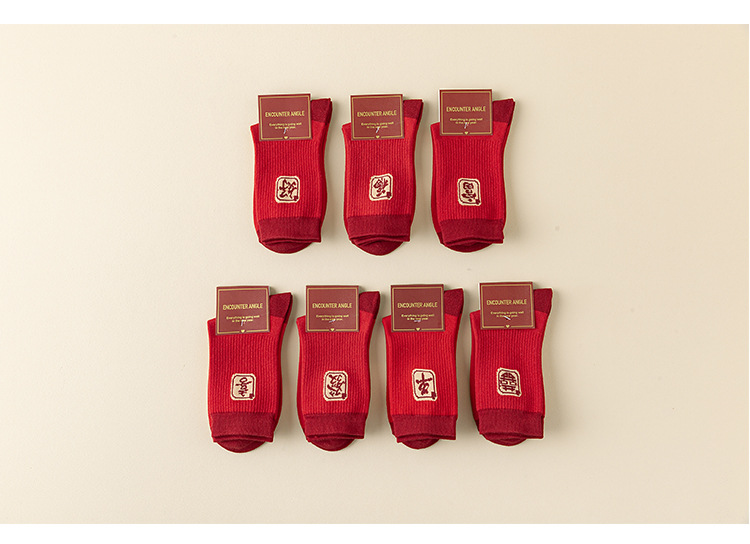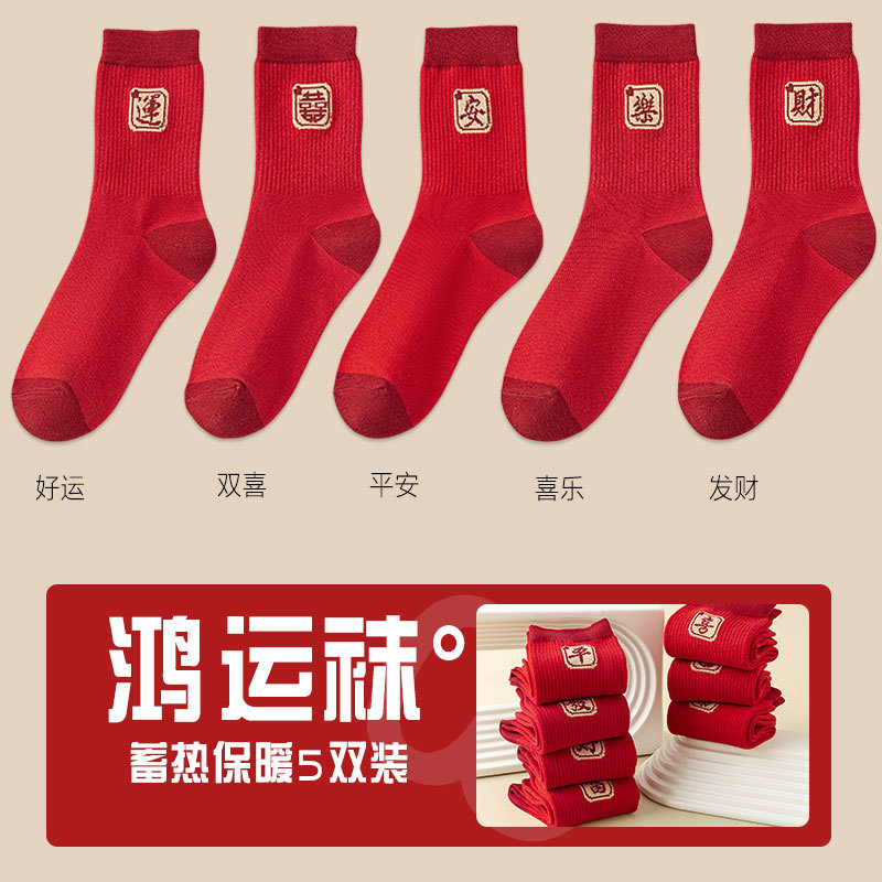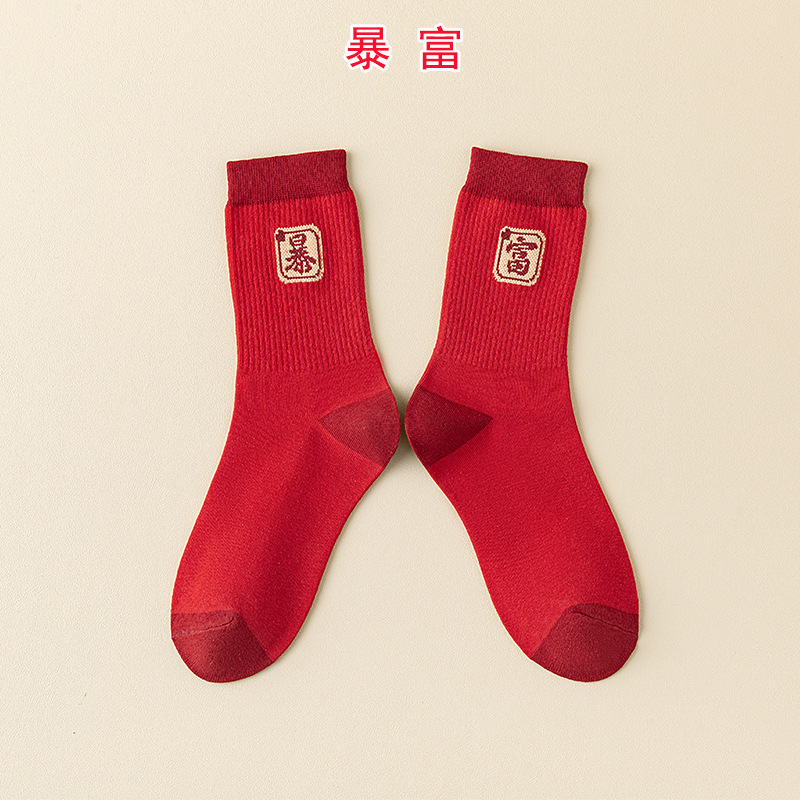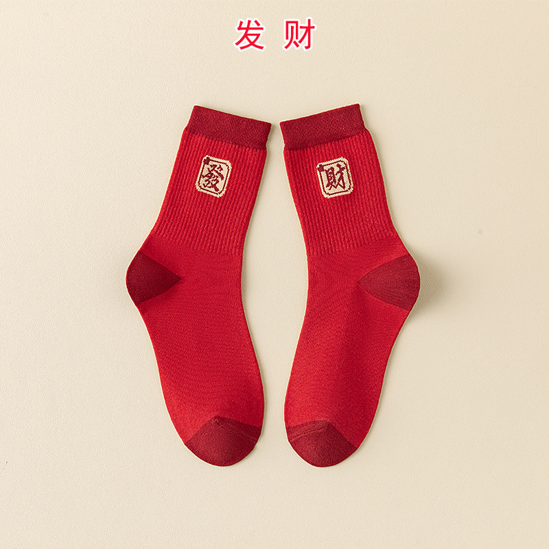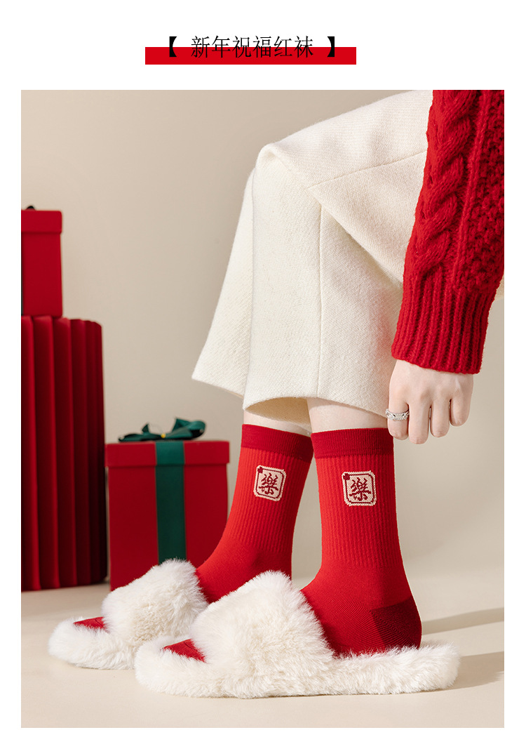 남성과 여성을위한 양말 새해 행운의 양말 올해 레드 중간 길이 양말 빗질 코튼 기쁨 양말 컬러 매칭 커플 스타킹스토어 가기