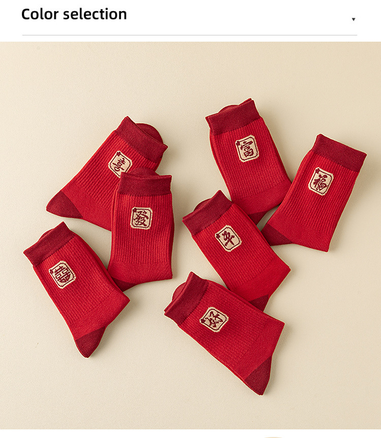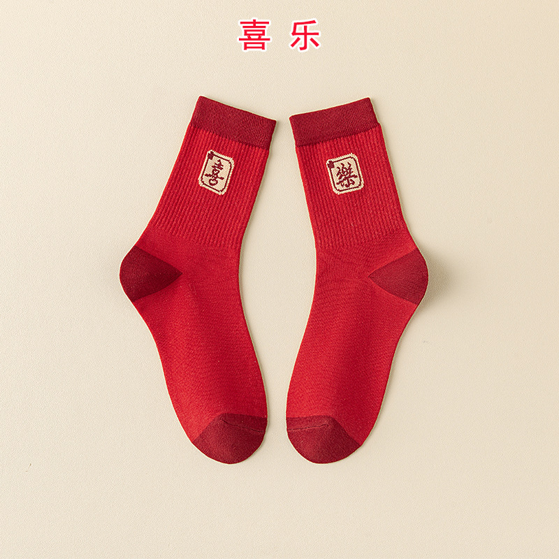 남성과 여성을위한 양말 새해 행운의 양말 올해 레드 중간 길이 양말 빗질 코튼 기쁨 양말 컬러 매칭 커플 스타킹